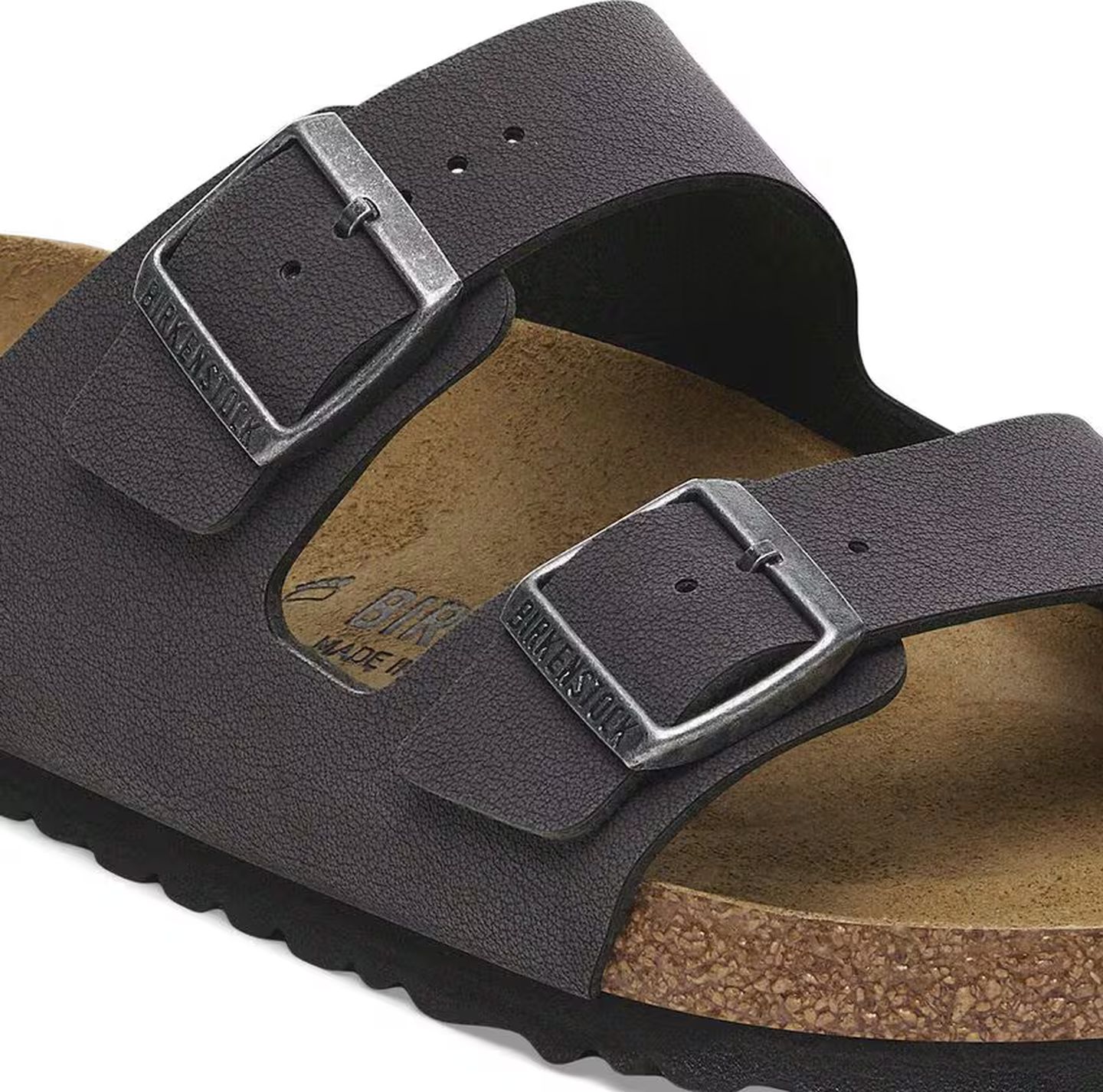 Like many materials found in footwear and apparel, cork footbeds and EVA soles can be damaged by exposure to concentrated heat or extreme temperatures. Do not leave your shoes in direct sunlight for extended periods or in closed cars on hot days. Keep Birkenstock footwear away from campfires, fireplaces, and indoor radiators.