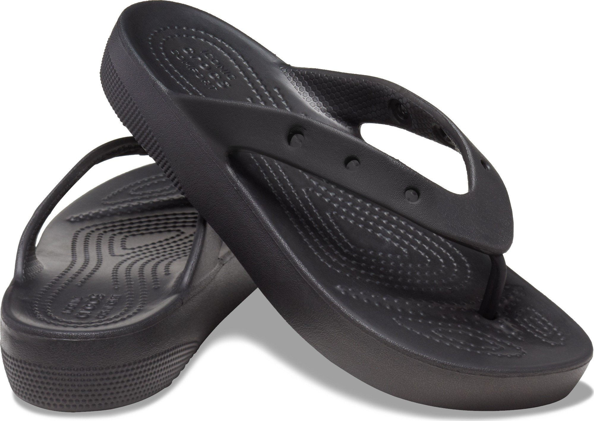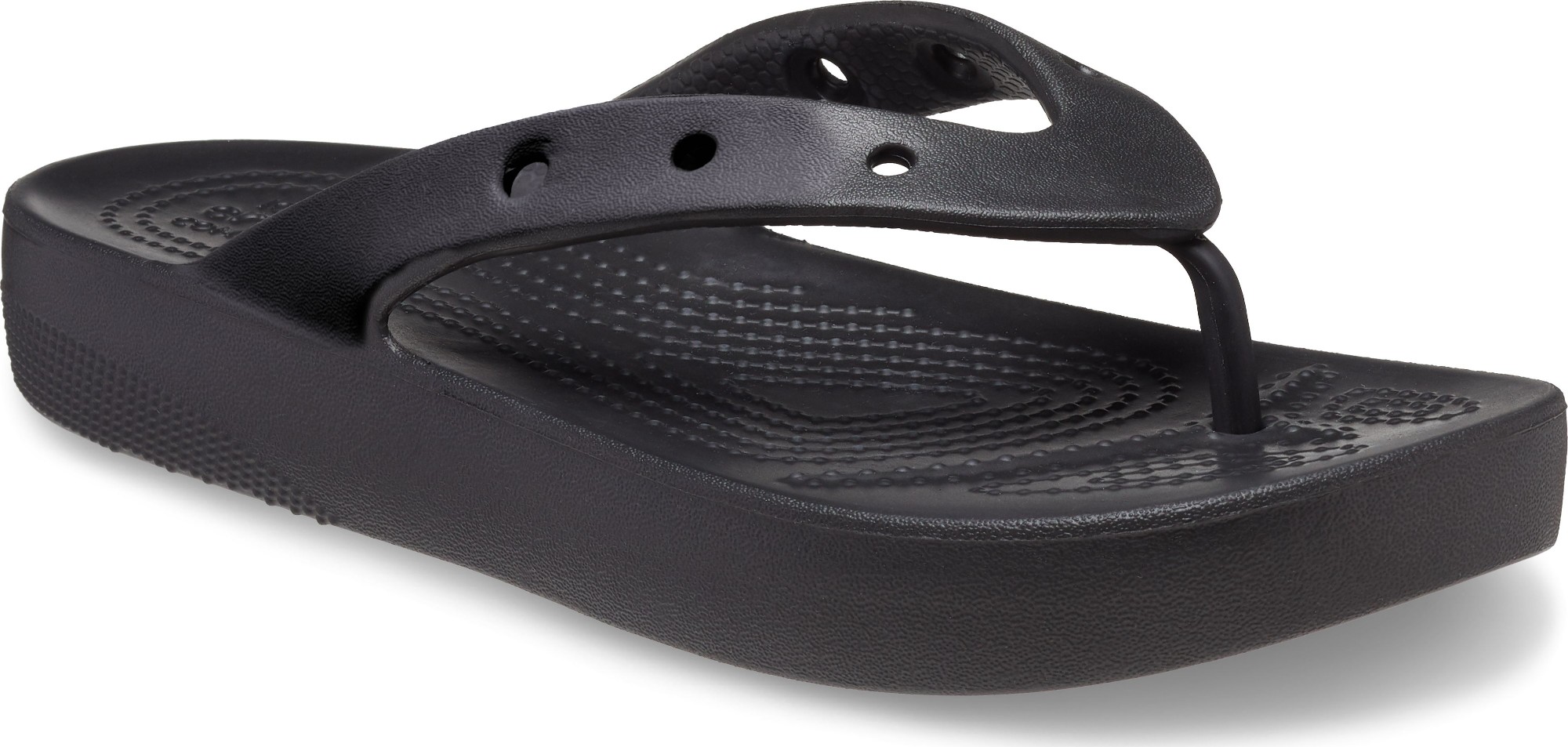 Introducing the Classic Platform Flip — a stylish revamp of our Classic Crocs Flip that features an elevated, textured heel and six holes in each sandal to allow for personalization with Jibbitz charms. Classic Croslite foam cushions each step and keeps them light and easy to wear — that's how to be comfortable in your own shoes.