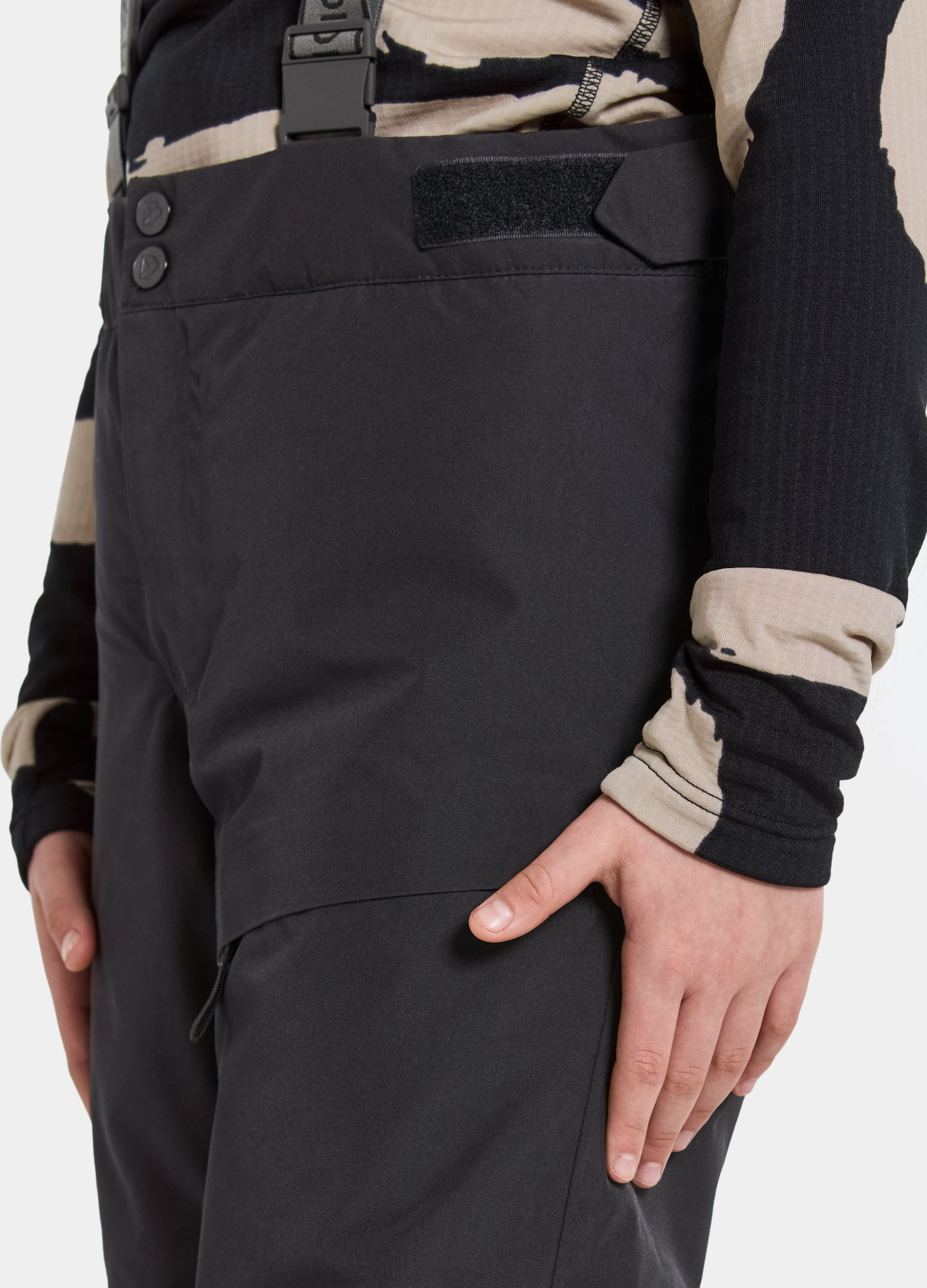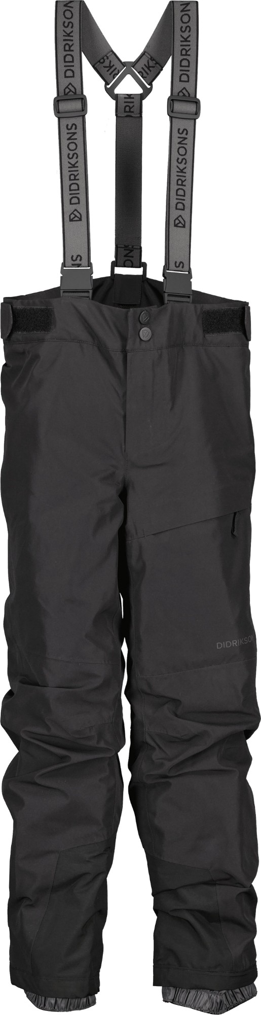 Didriksons Dacit Kid’s Pants are durable and functional trousers designed to withstand all kinds of outdoor activities. They are waterproof and windproof with taped seams and made from a breathable material, ensuring comfort in all weather conditions. The trousers feature adjustable and detachable braces for a flexible fit and an elastic waist with Velcro adjustment. The leg ends are reinforced for extra durability and equipped with snow locks with anti-slip elastic to keep out snow and moisture. Adjustable Velcro cuffs ensure a snug fit, while a front zip pocket provides practical storage.