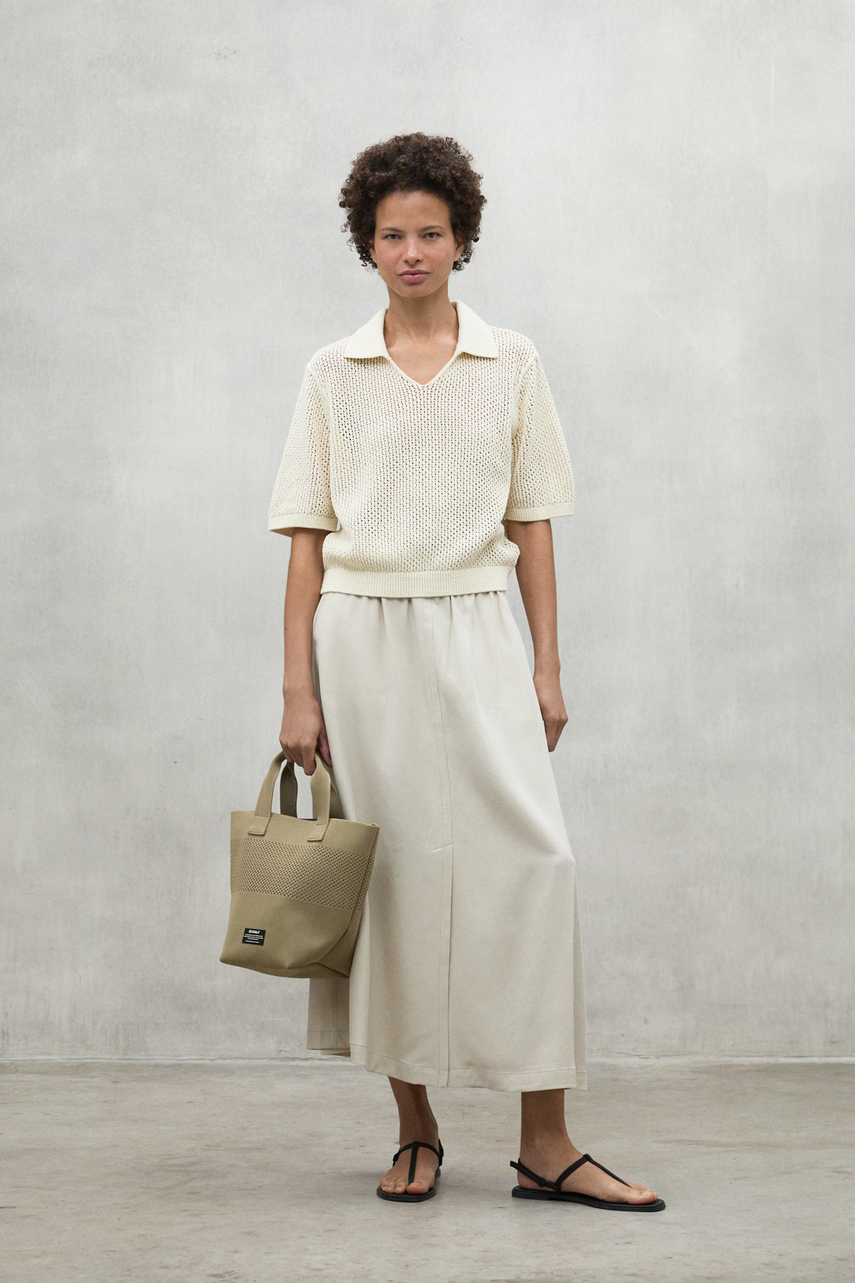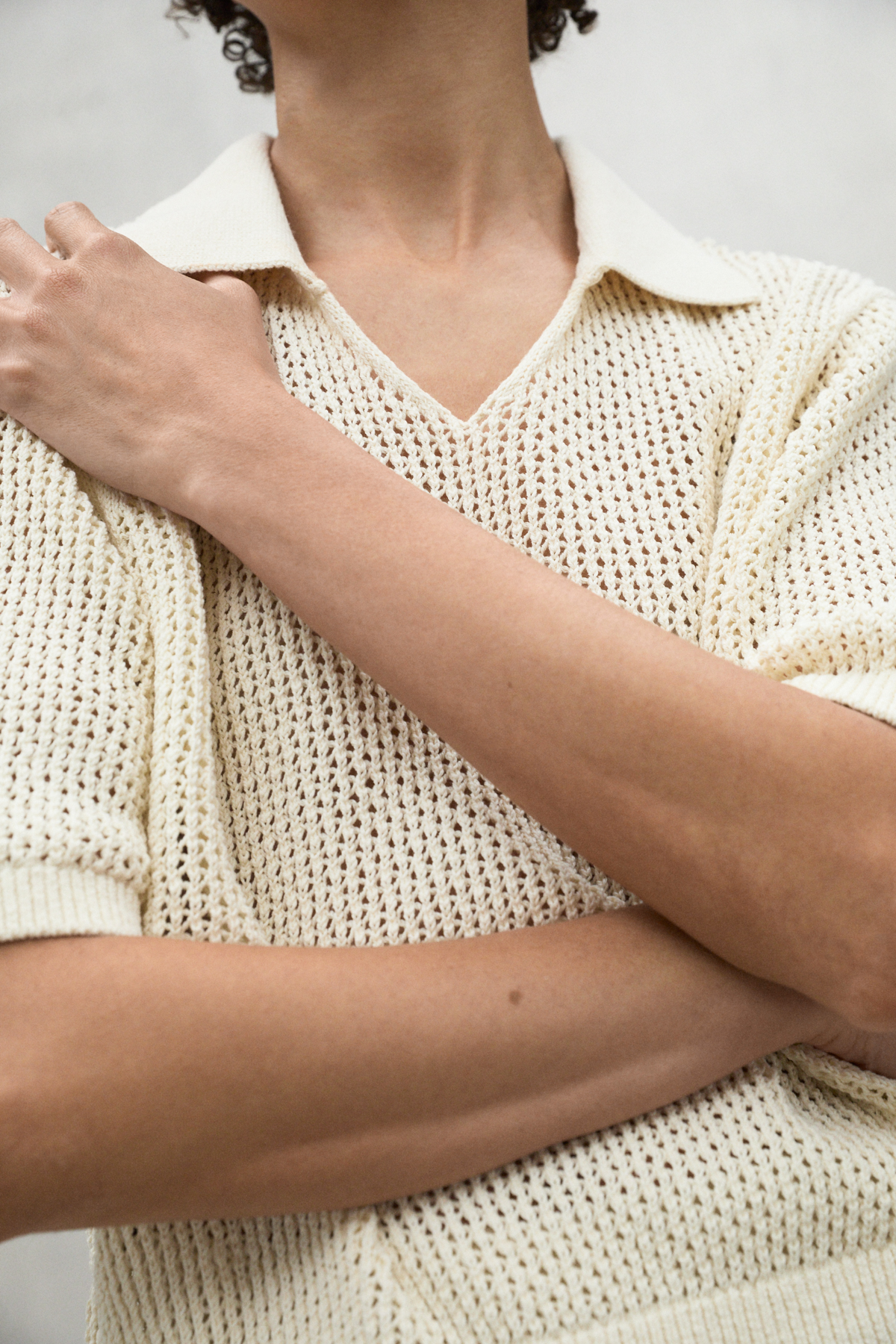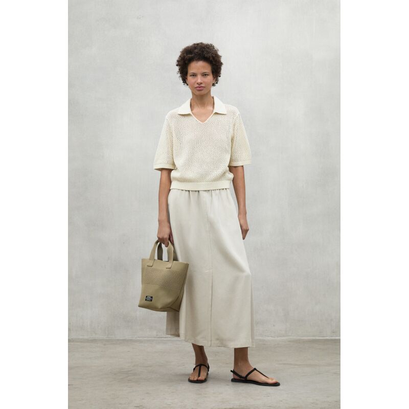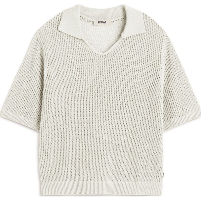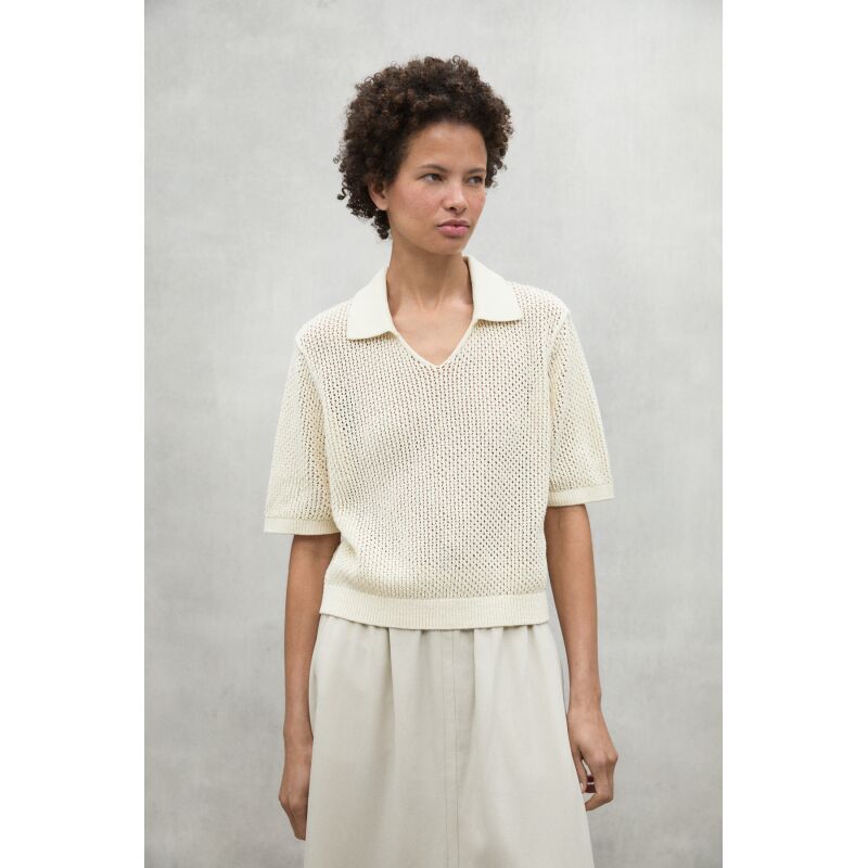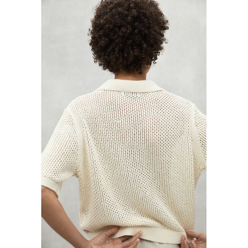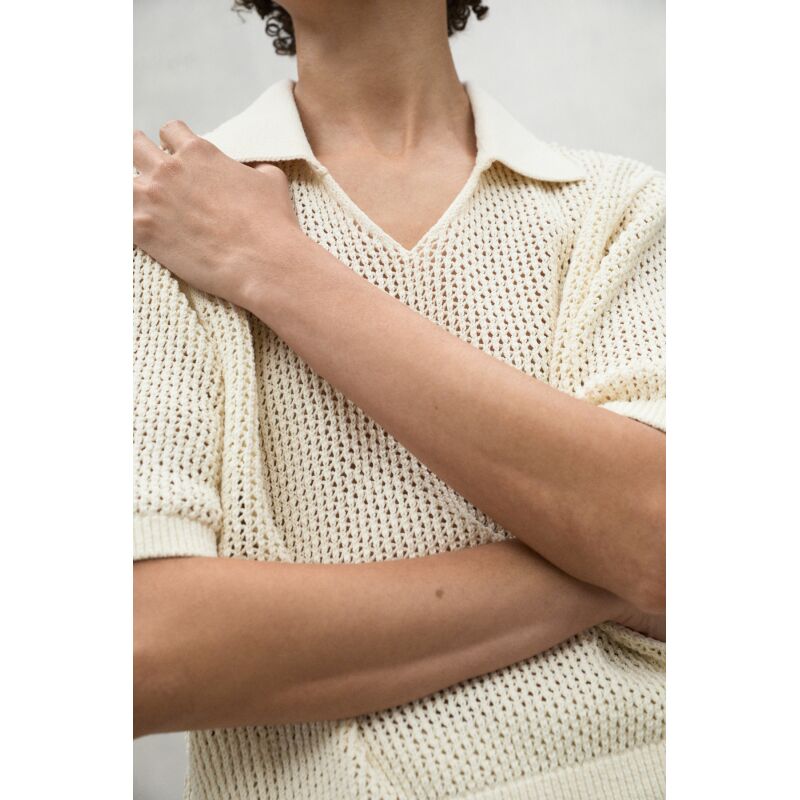 The Argan sweater, made of 45% recycled cotton, has a loose fit and a polo-style collar. Organic cotton cultivation is free of pesticides and fertilizers that are potentially harmful to health and the environment. With dropped shoulders and openwork knit, it is a versatile garment that adds a unique touch to your wardrobe.