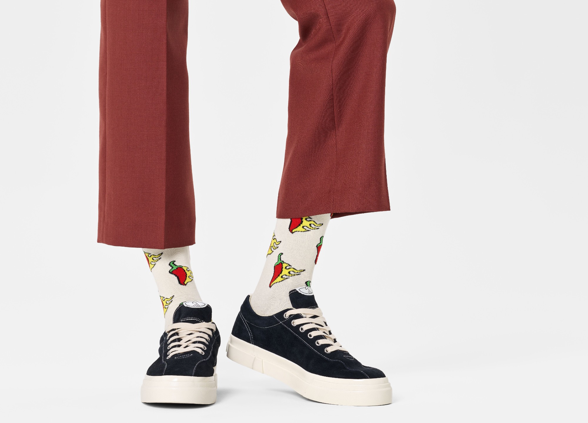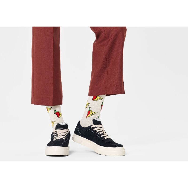 Here's something for those who like a little heat! This extra spicy sock will have your feet aflame in no time. Made from soft and breathable combed cotton and with reinforced heel and toe. The Hot Chili Sock brings a sizzling kick to your footwear collection. Featuring a bold, eye-catching design that's sure to ignite conversations, these funny socks showcase a vibrant chilli pepper pattern that adds a dash of personality to any outfit. With a playful twist on traditional footwear, the Hot Chili Sock is perfect for those who dare to be different. At Happy Socks, we believe in color, creativity, and fun! Whether you're looking to add some excitement to your daily routine or make a statement at a special occasion, these crazy socks are sure to turn up the heat. Perfect gift for: spice lovers and bold fashionistas.