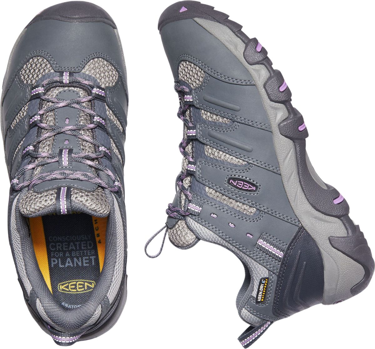 KEEN follows its Consciously Created principle: footwear made from recycled materials, without harmful chemicals, and produced with reduced environmental impact. Through the KEEN Effect program, 1% of profits go to global environmental projects.