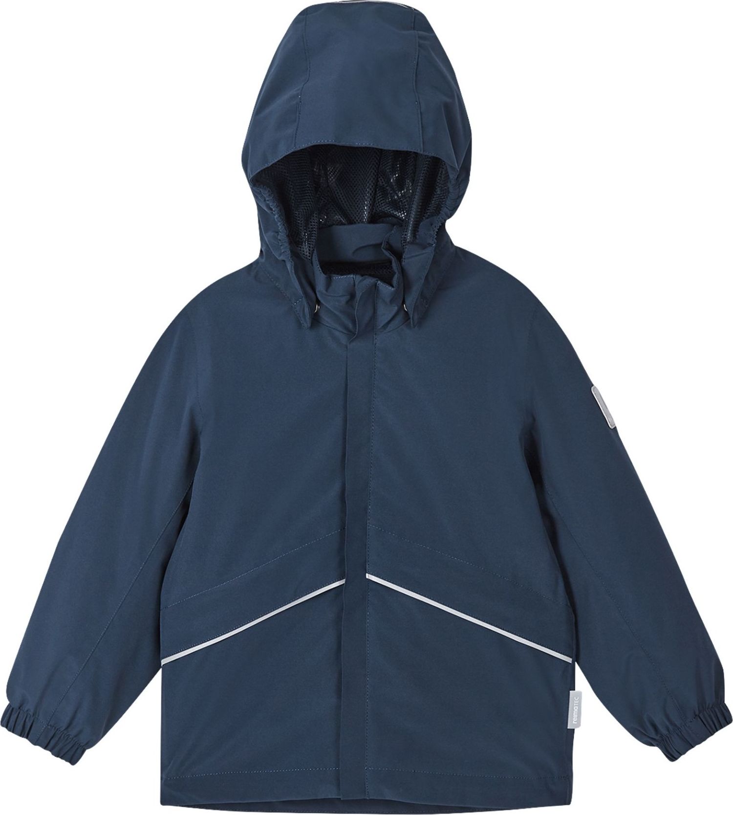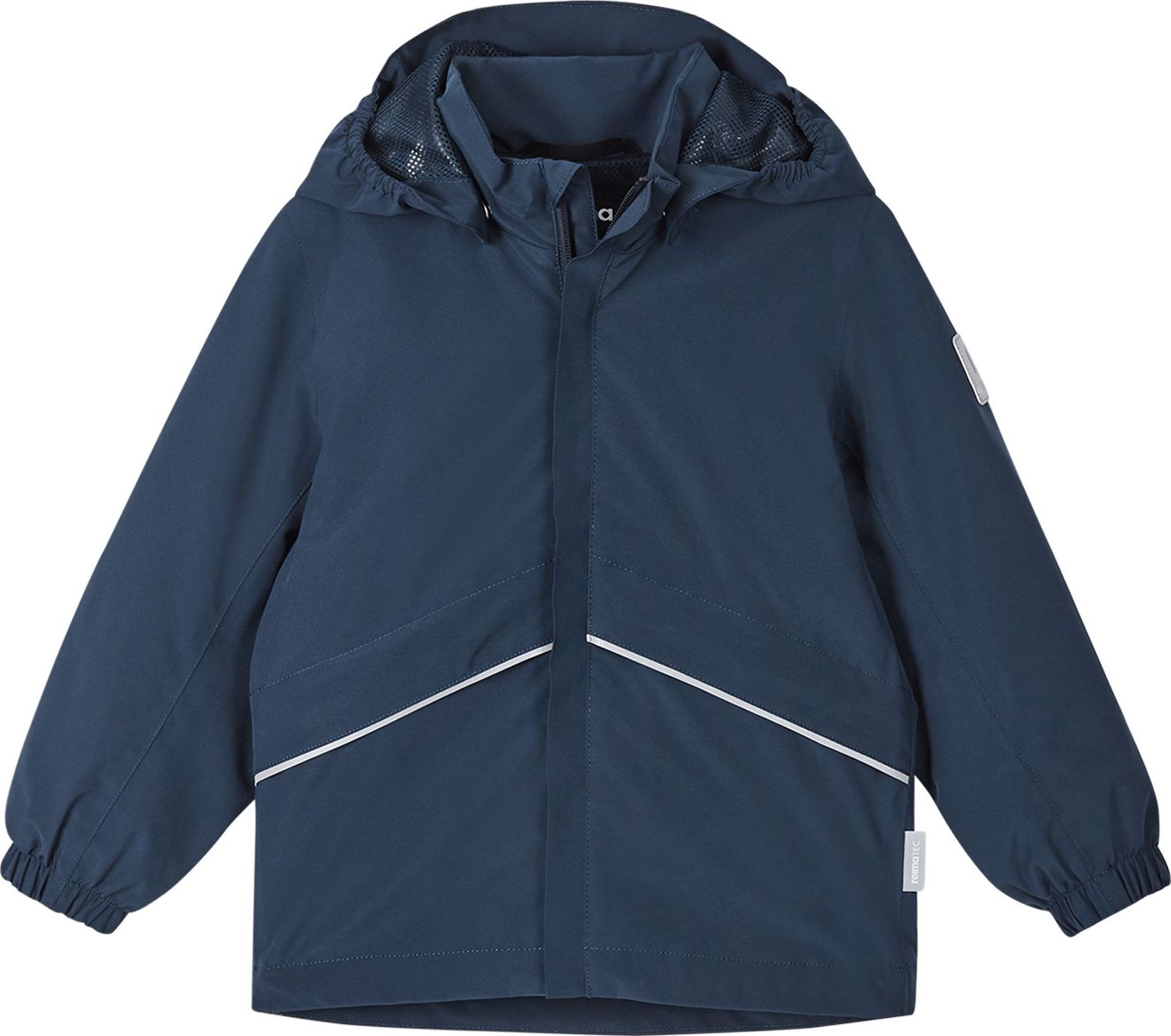 Reimatec breathable, water- and windproof kids' midseason jacket, made with partly plant-based polyester.