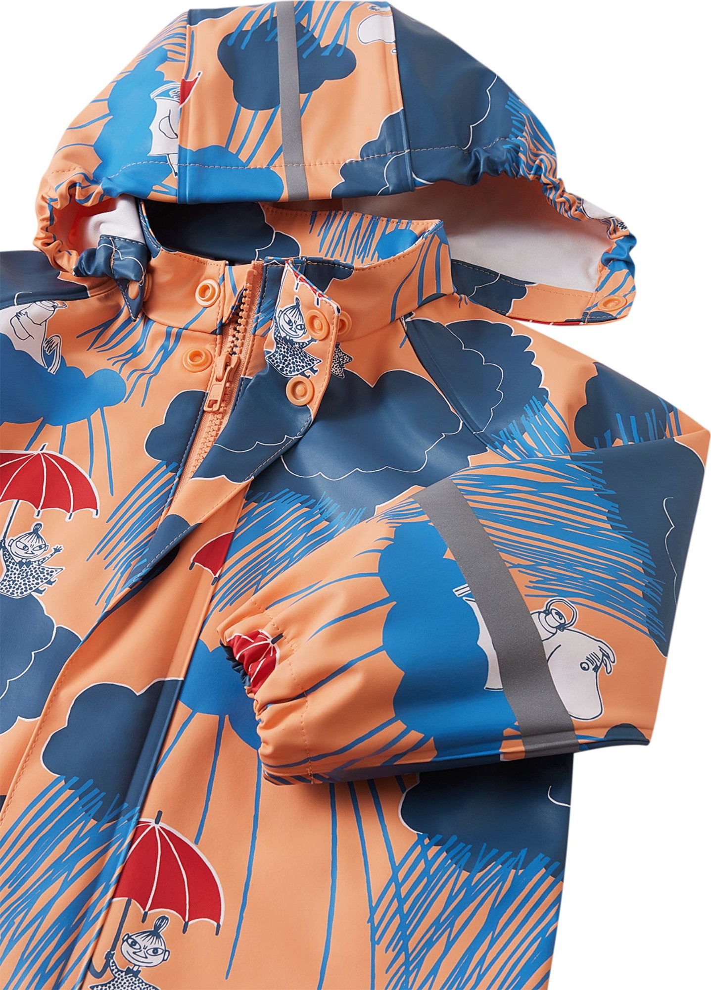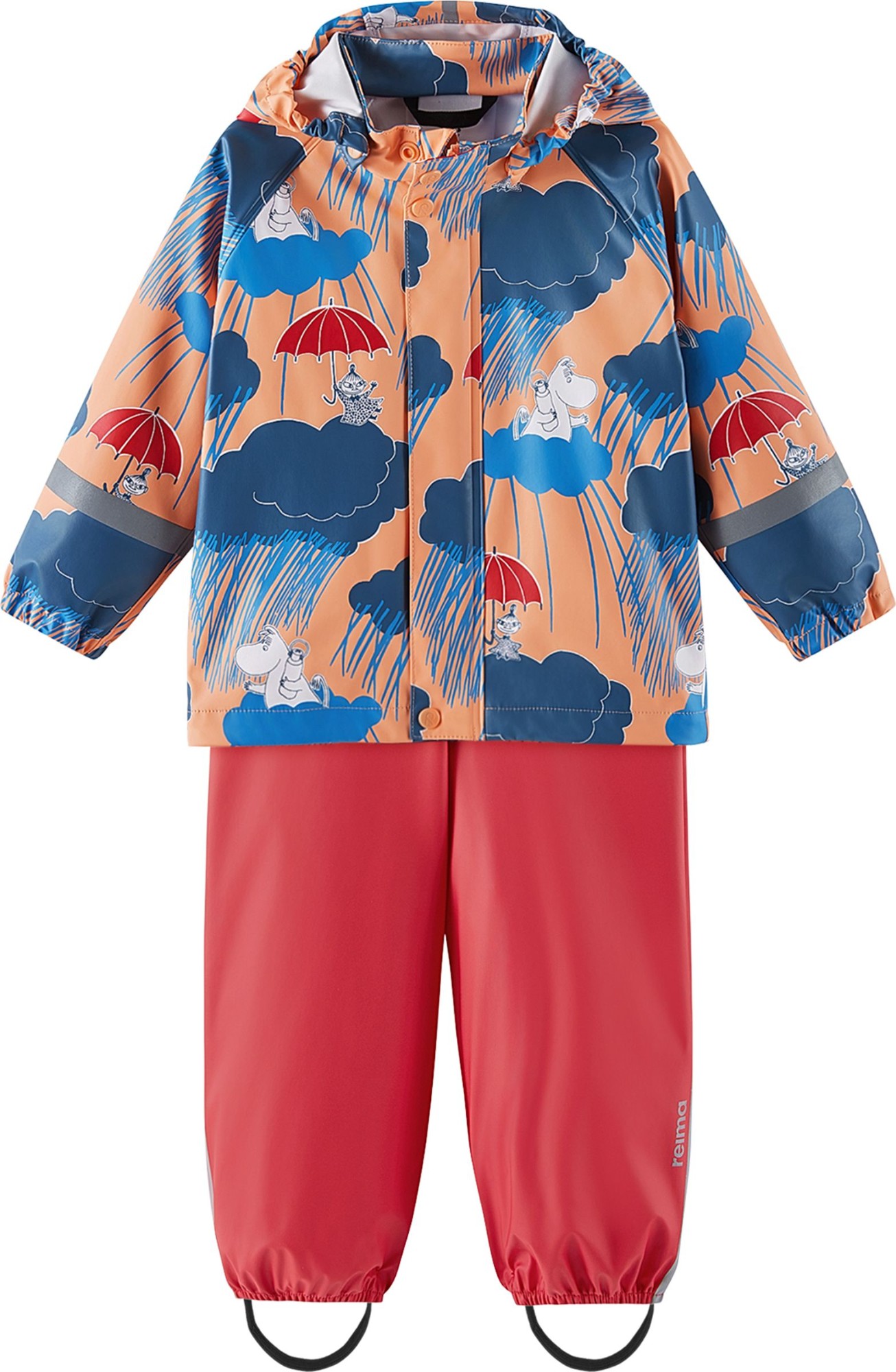 This unlined toddlers' rain outfit is great for wet days in spring and autumn. When you add warm layers underneath, it'll protect little ones even during the chilliest weather. Welded, waterproof seams guarantee that no rain comes through to your little one's skin under this kids' waterproof suit. The detachable hood not only protects from drizzle but also safely comes off if it gets caught on something when children are playing outdoors. The pants stay up thanks to the elasticated, adjustable suspenders and the removable foot loops are easy to pop under rubber boots or waterproof trainers to keep hems in place. All Reima children's rain gear is made from a flexible, PVC-free material.