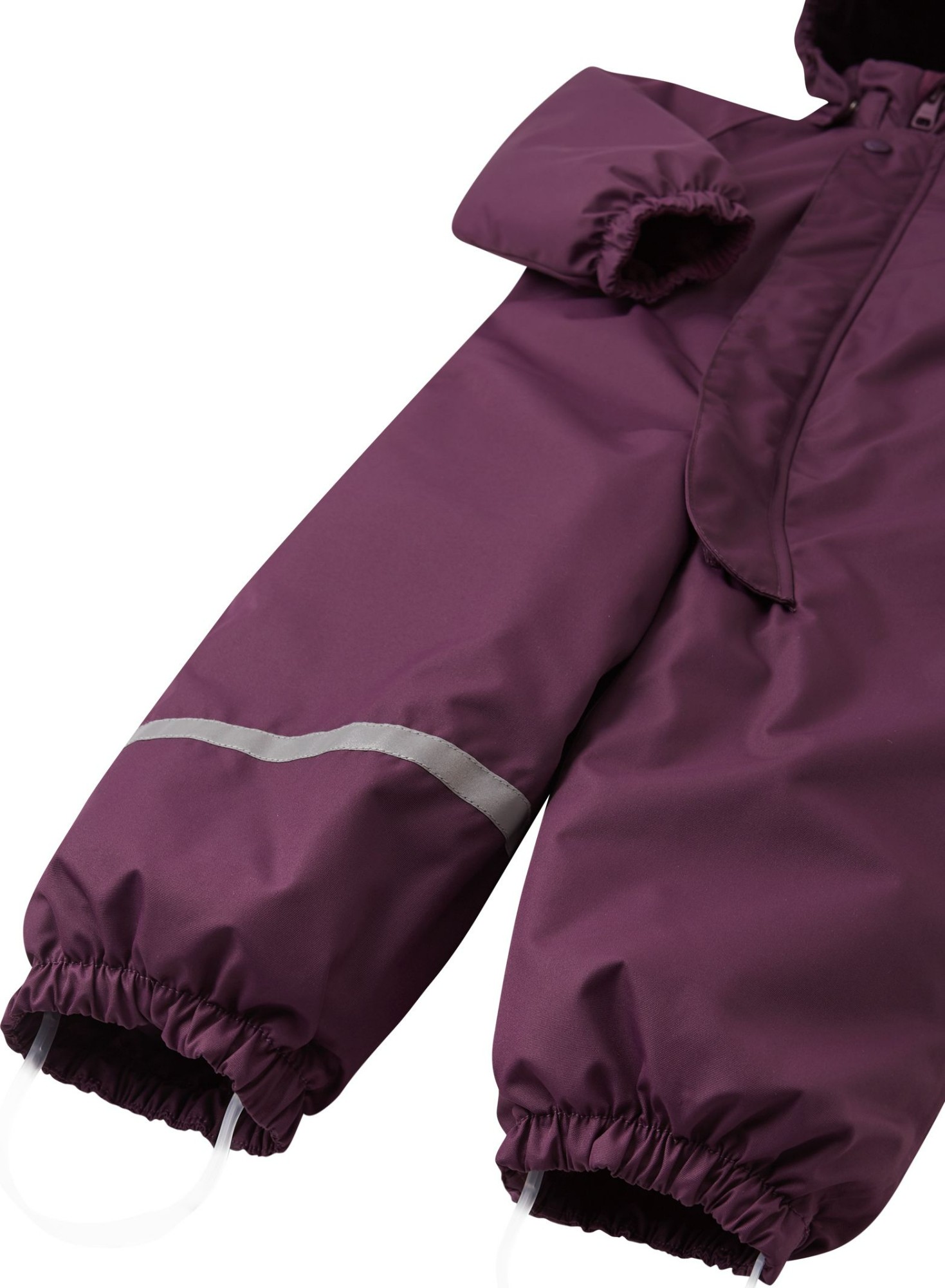 This classic toddlers' snowsuit is ideal for all kinds of outdoor fun. It's made from a breathable and windproof material that also repels dirt and water. The main seams are sealed to amp up the waterproof coating, and the smooth lining makes dressing easier. This Reima one-piece is also great for layering. The detachable hood is safe when playing outdoors: attached with snap buttons, it comes off easily if it gets caught on something. The removable foot loops keep the hems in place, protecting little ankles from moisture and the cold.