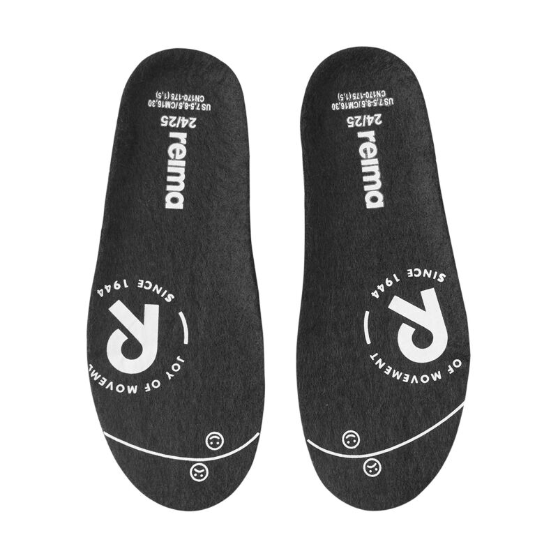 Removable felt insoles with Happy Fit print help to find the correct size;