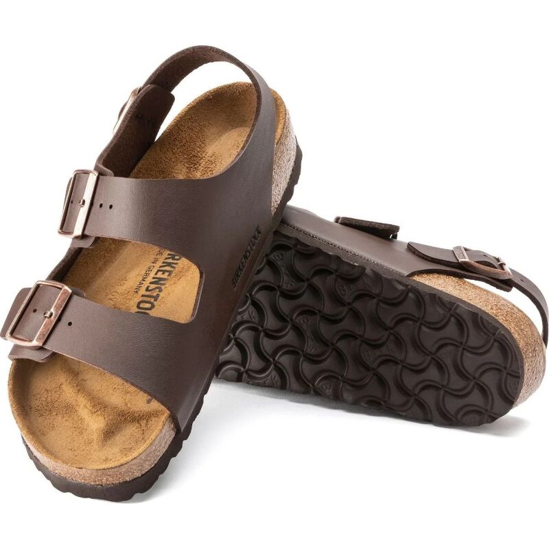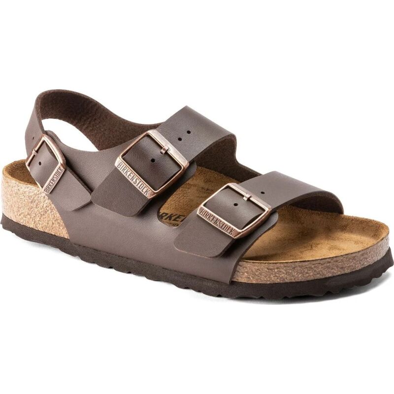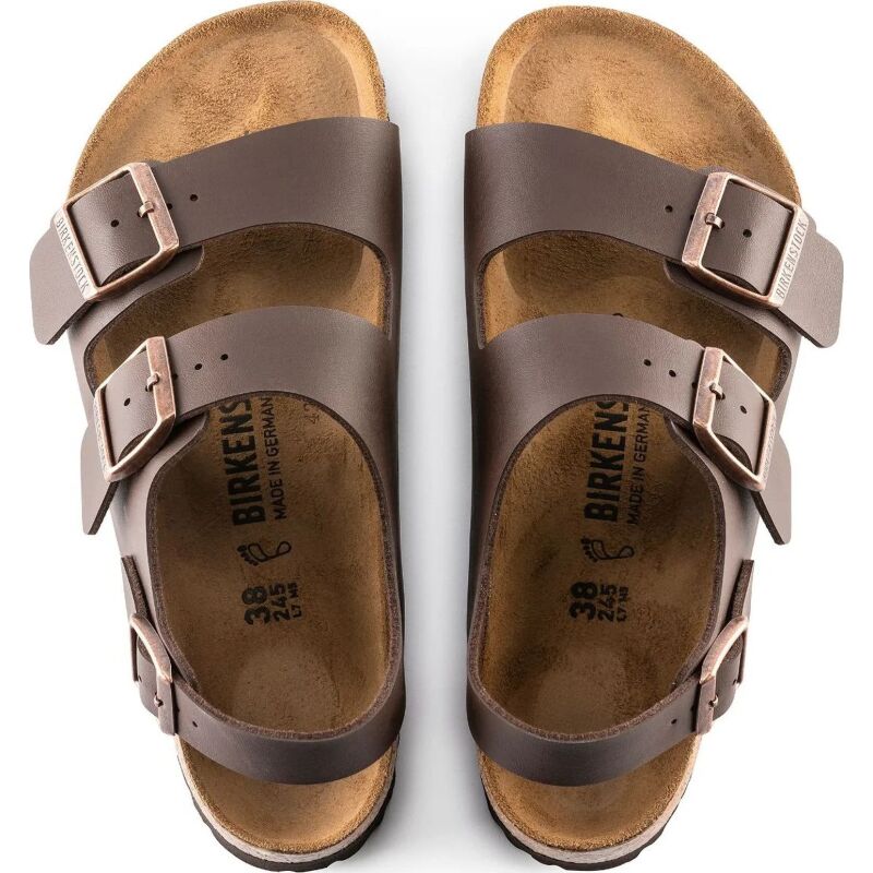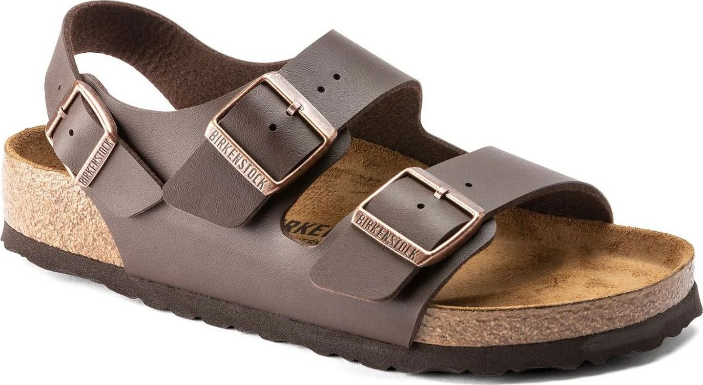 The Milano is our classic back-strap model. The two straps on the upper and the wide back-strap give the feet a firm grip and stability, while the cork-latex footbed offers comfort and support for all-day wear. The upper is made from the skin-friendly, hard-wearing synthetic material Birko-Flor.