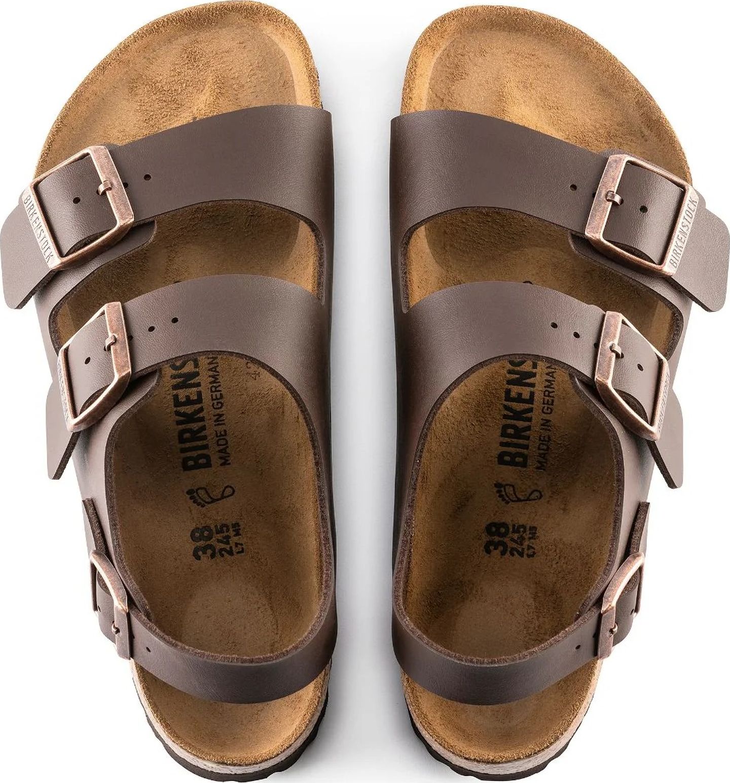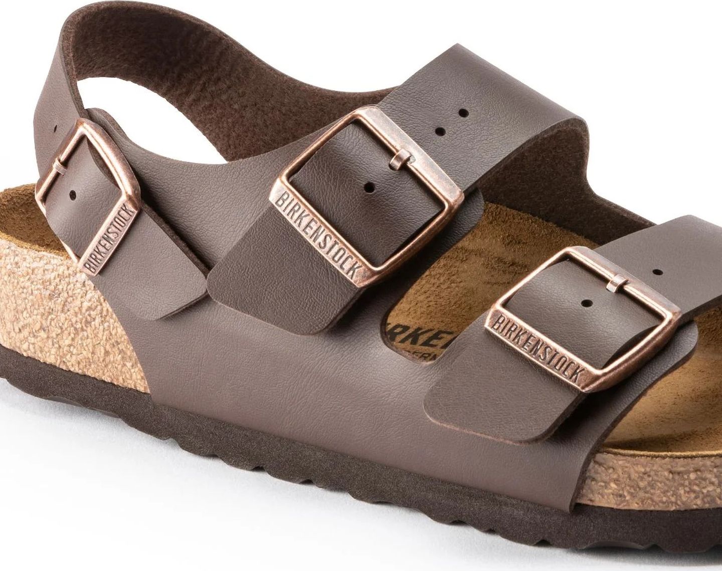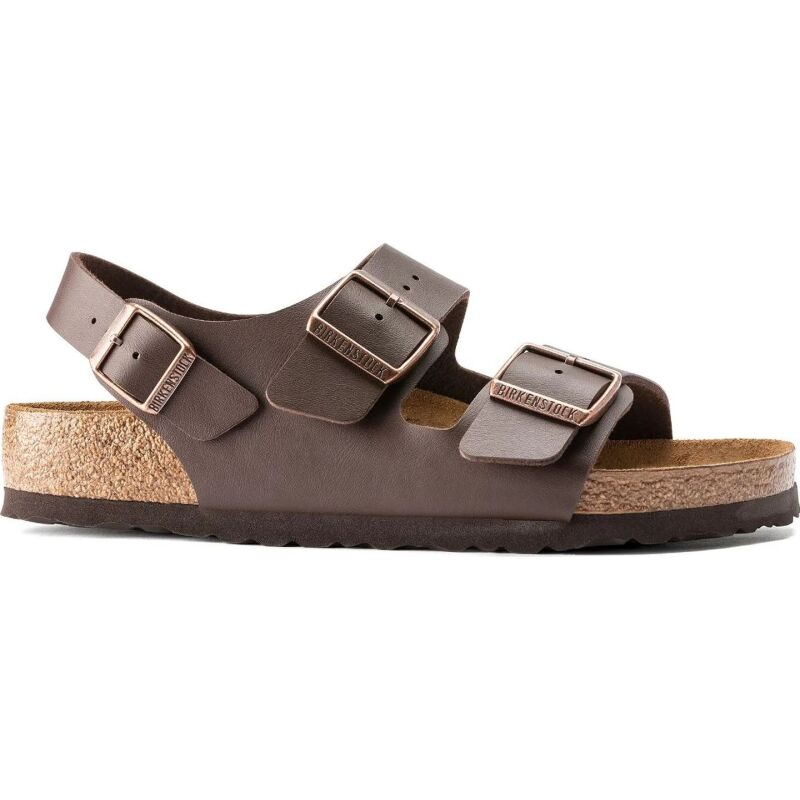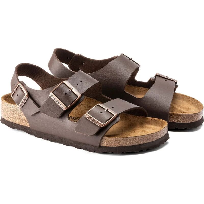 The Milano is our classic back-strap model. The two straps on the upper and the wide back-strap give the feet a firm grip and stability, while the cork-latex footbed offers comfort and support for all-day wear. The upper is made from the skin-friendly, hard-wearing synthetic material Birko-Flor.