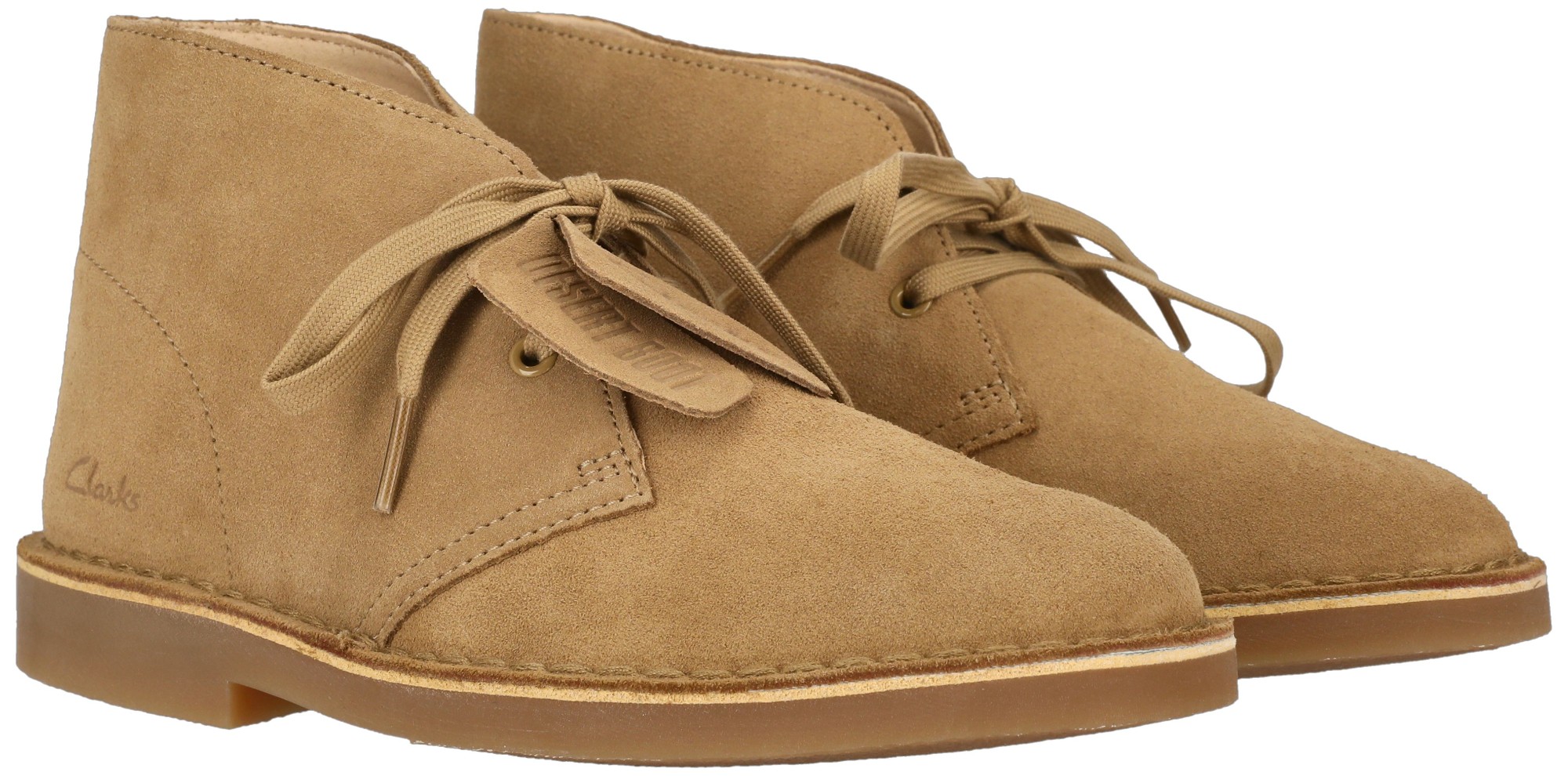 Finished with a Clarks Desert Boot™ suede logo fob as a guarantee of authenticity.