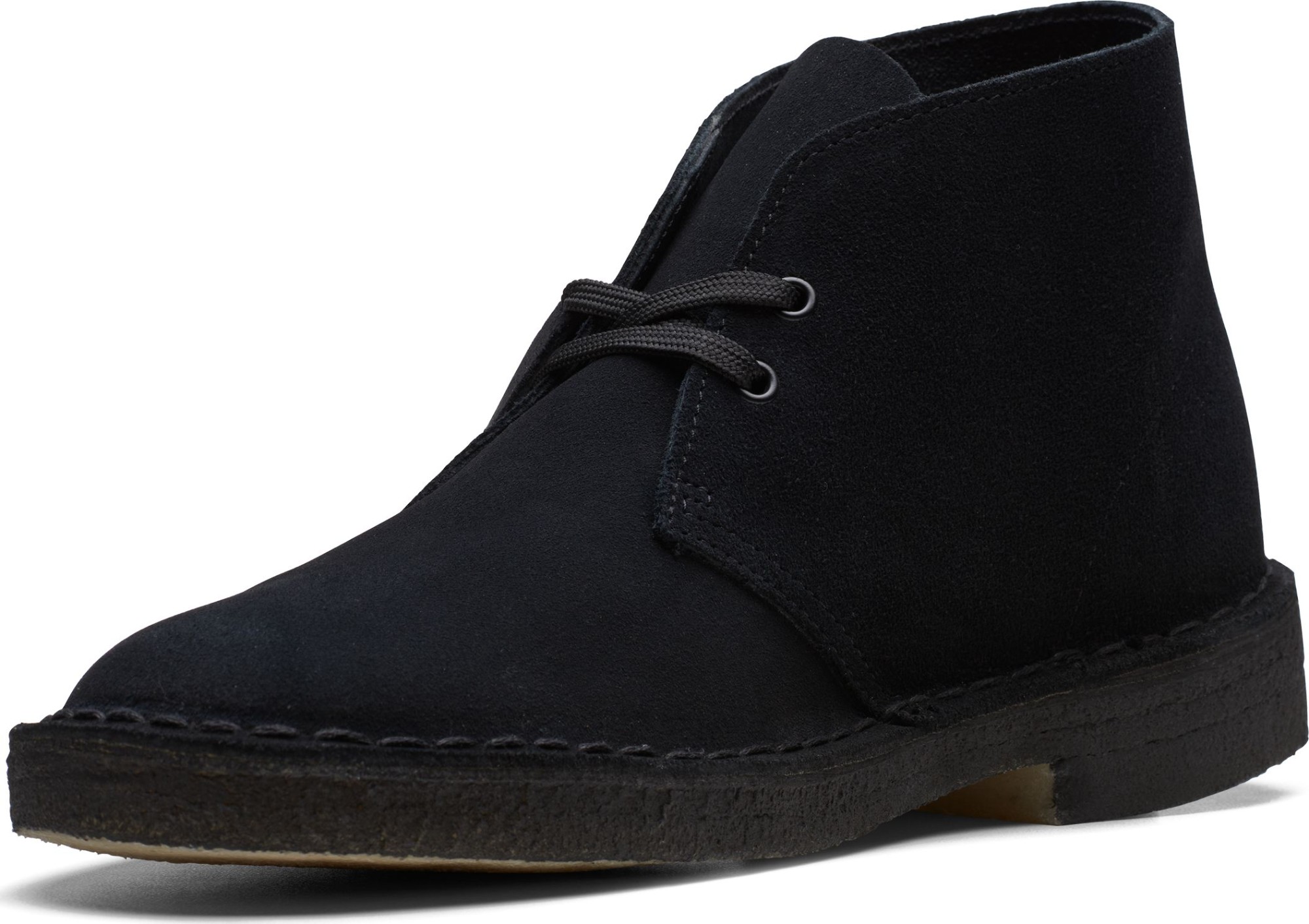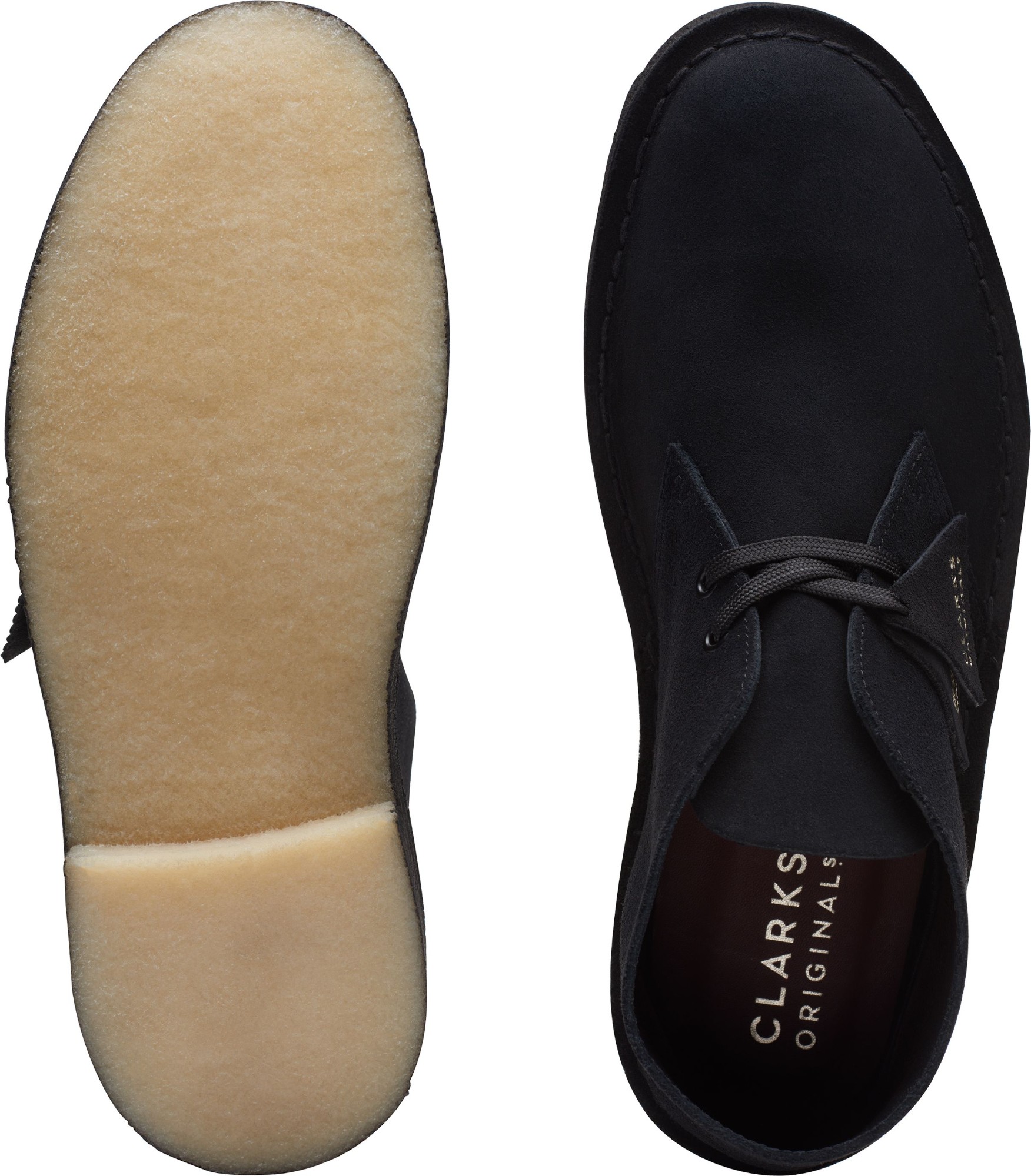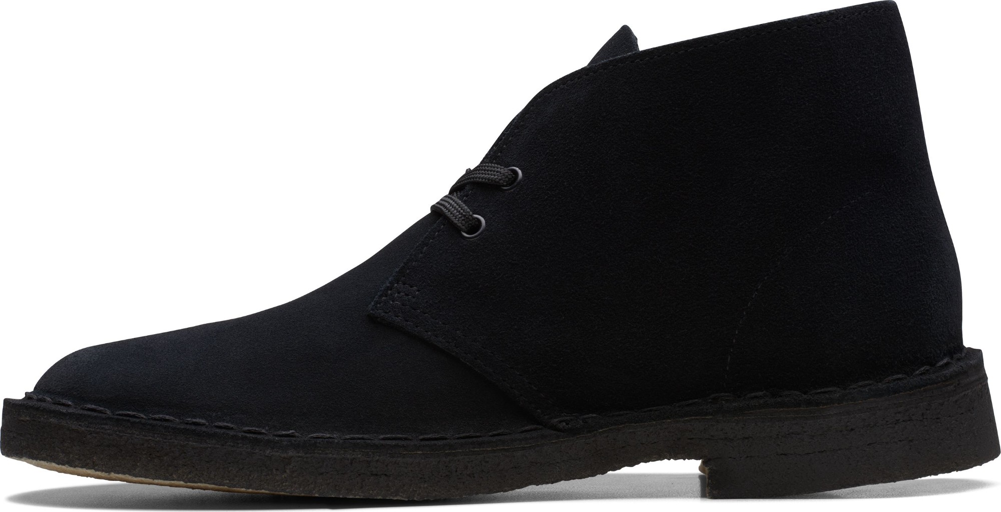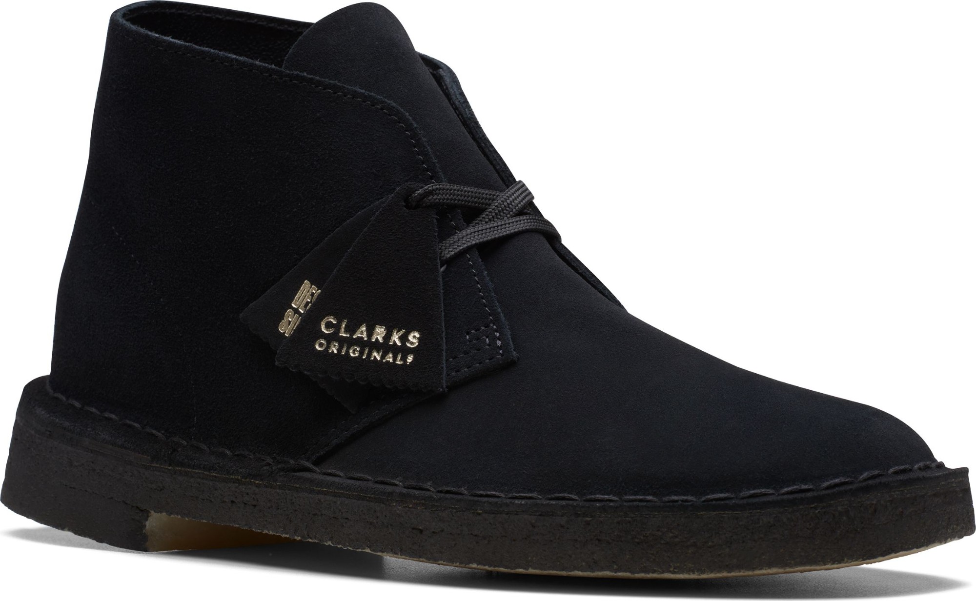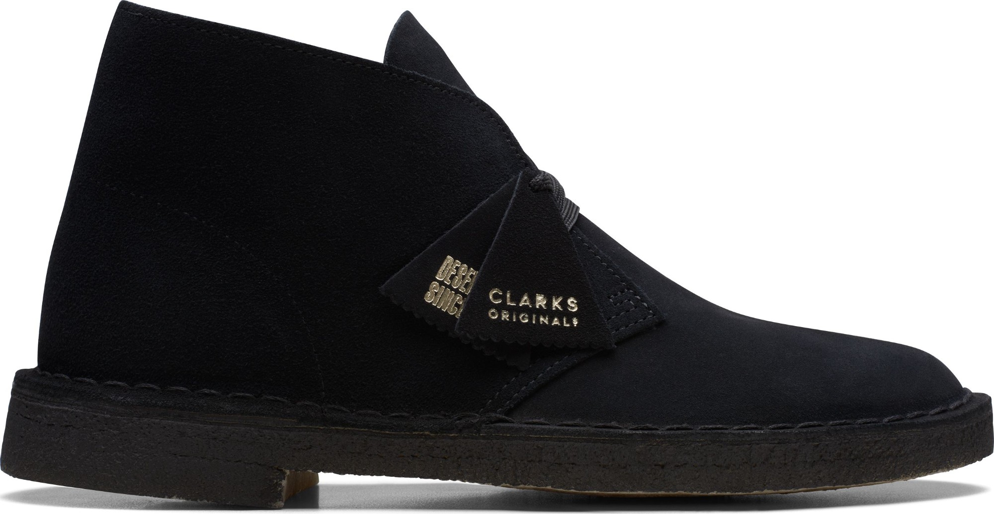 Cultural cachet and design DNA: no shoe is quite like the Clarks Originals Desert Boot. Nathan Clark’s 1950 design was inspired by a rough boot from Cairo’s Old Bazaar, and its minimal, progressive style sparked a worldwide footwear revolution – worn by beatniks, mods, Britpop bands, and Jamaican rude boys, from Paris to Kingston, Tokyo to London. Every design detail today remains true to that first pioneering pair – here, the boot’s crafted, clean lines are enhanced with premium black suede, finished with an unfussy lace fastening. The authentic, sustainably sourced crepe sole completes this distinctive silhouette. Instantly recognisable, forever iconic. A true original.