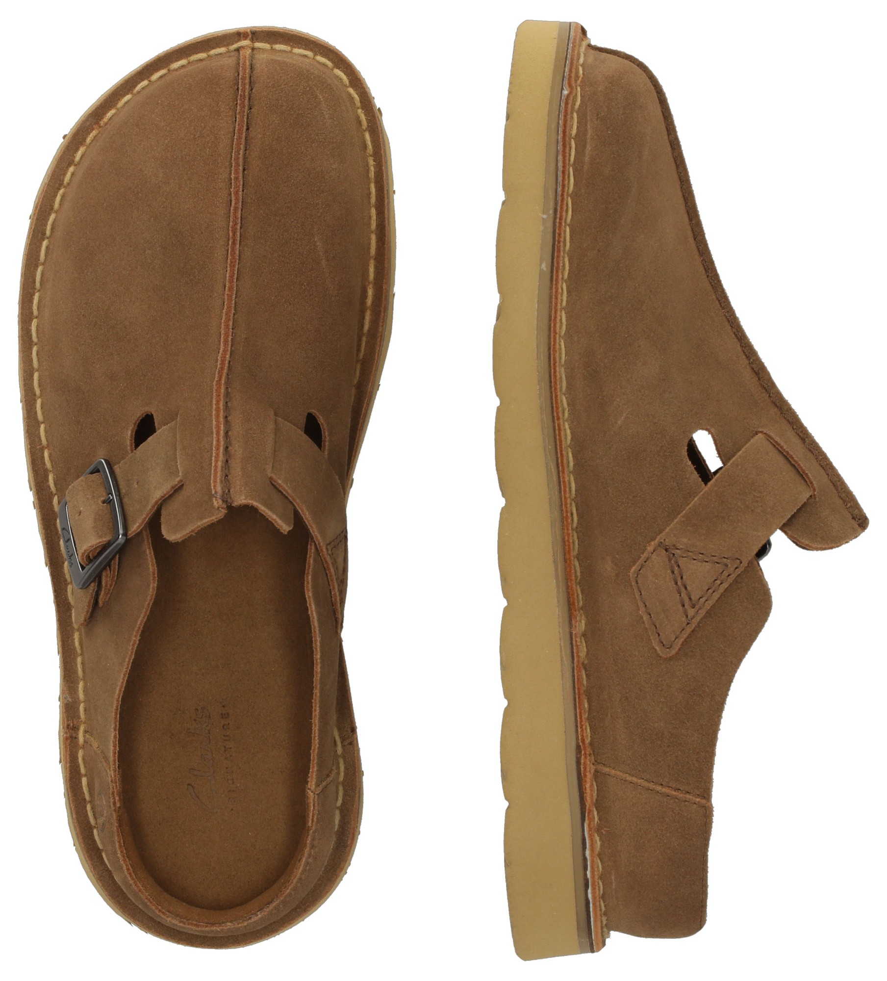 Regulējama sānu sprādzes aizdare ar Clarks logotipu nodrošina drošu un pielāgotu piegulšanu;