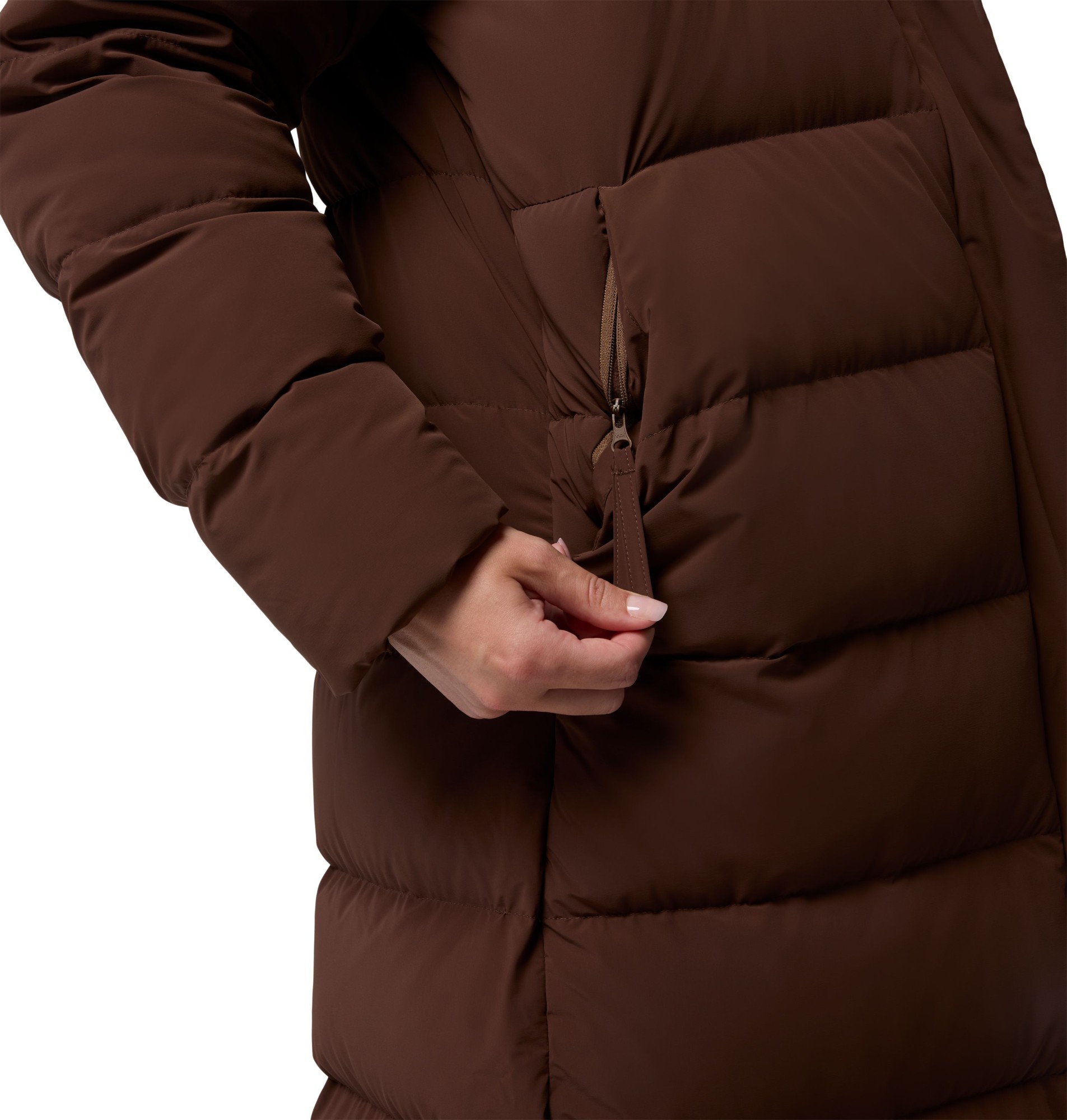 Amaze Puff™ Long Hooded sieviešu gara dūnu jaka ar kapuci