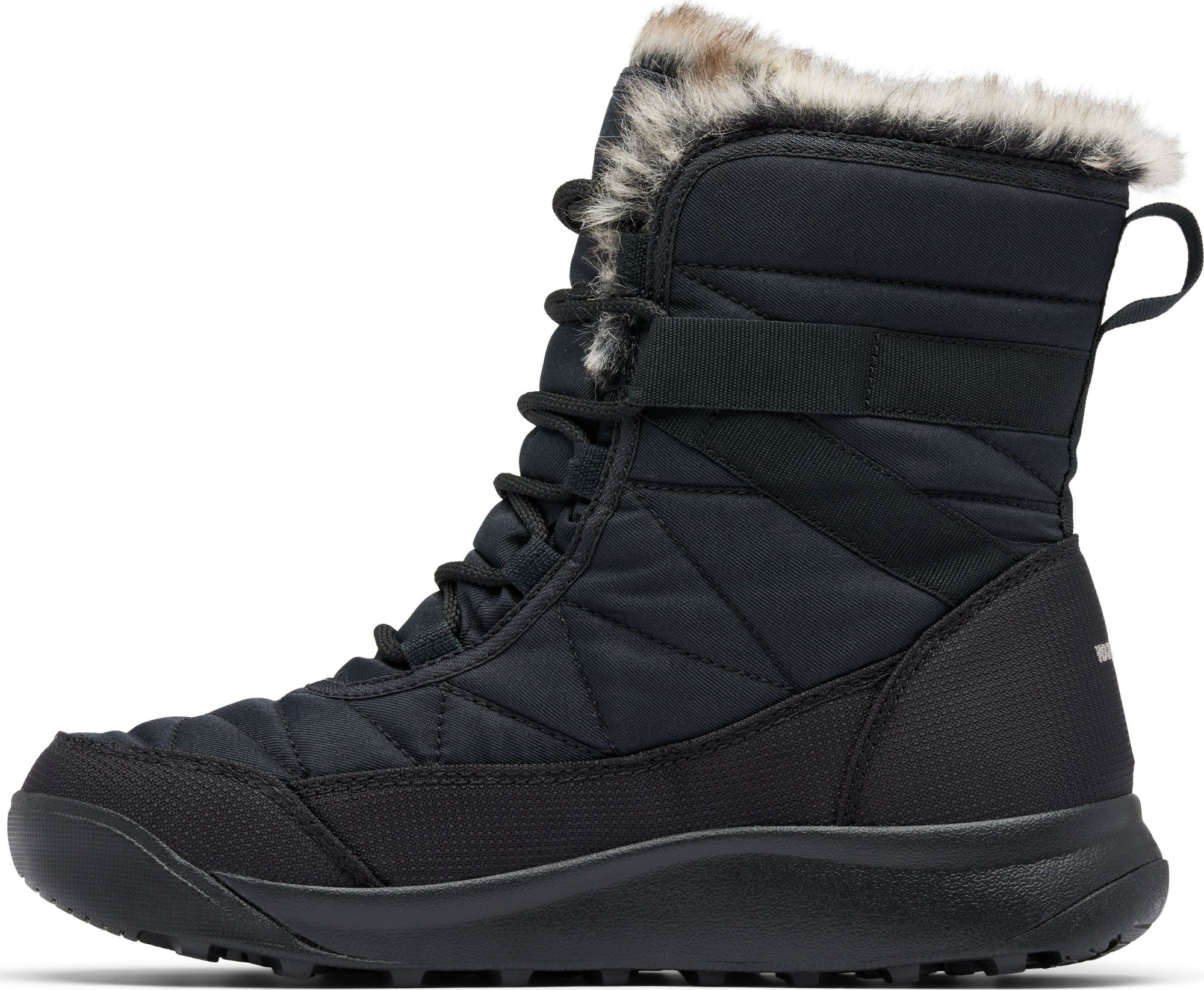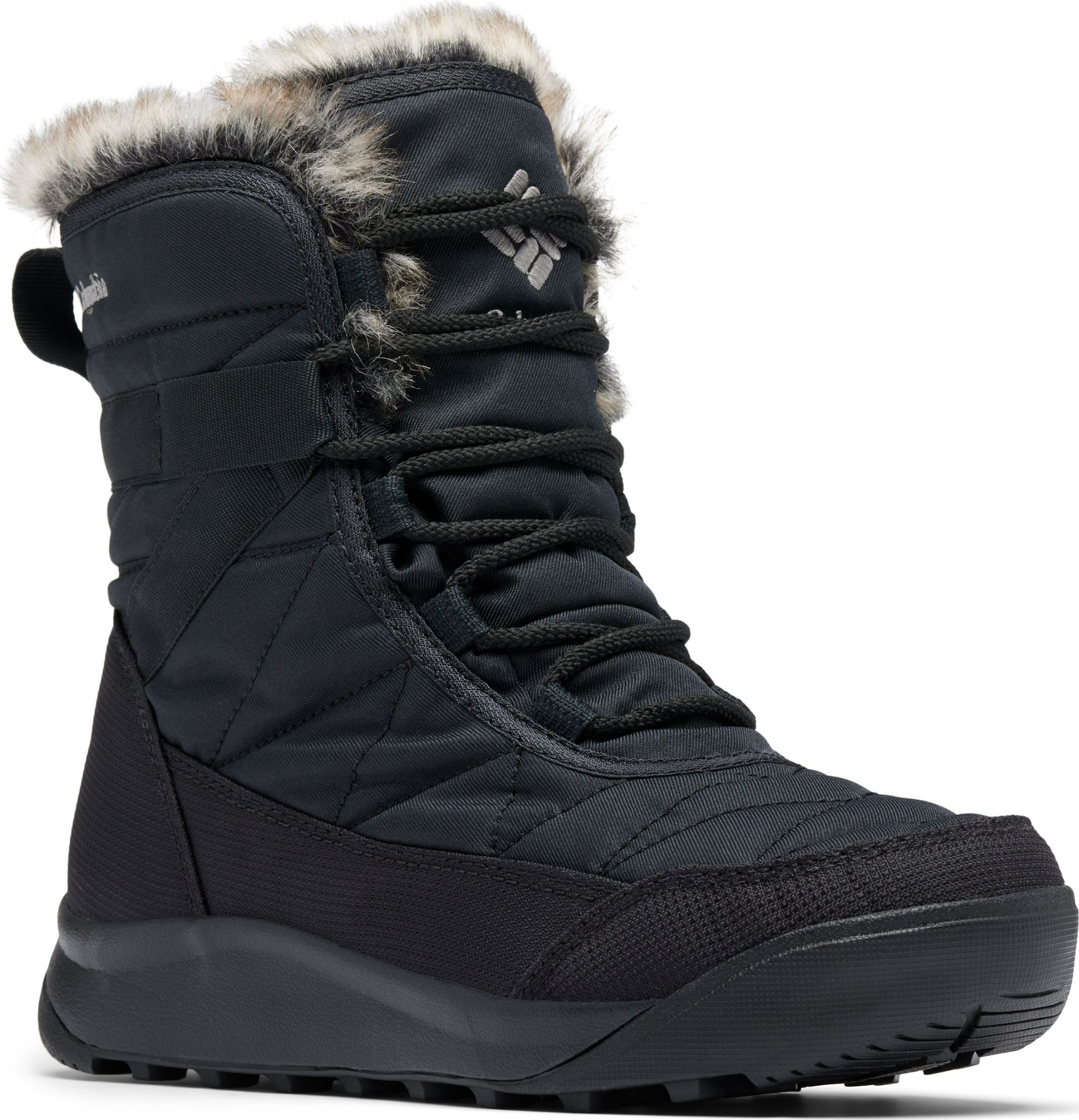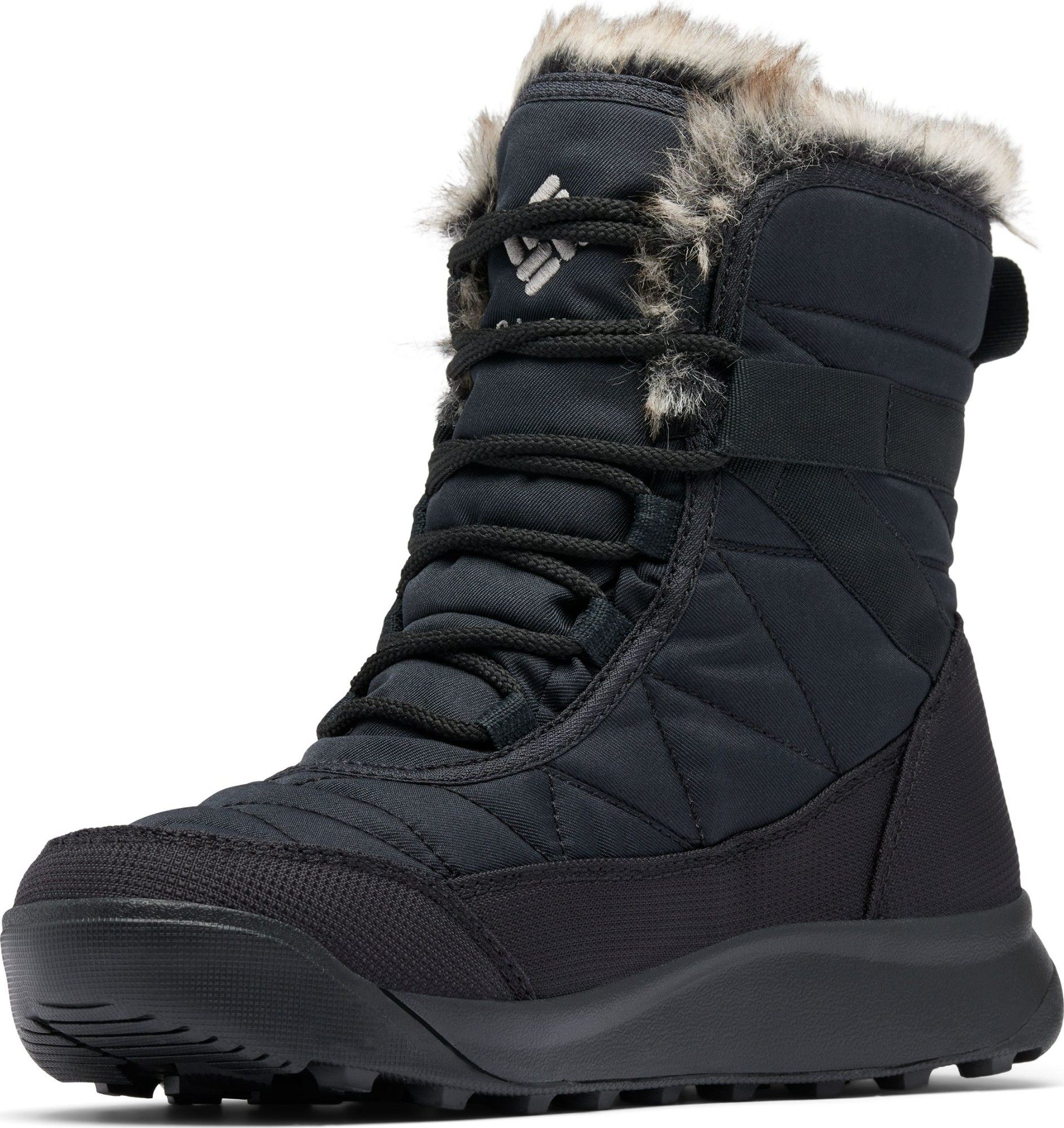 Quilted upper and faux fur interior for comfort and style;