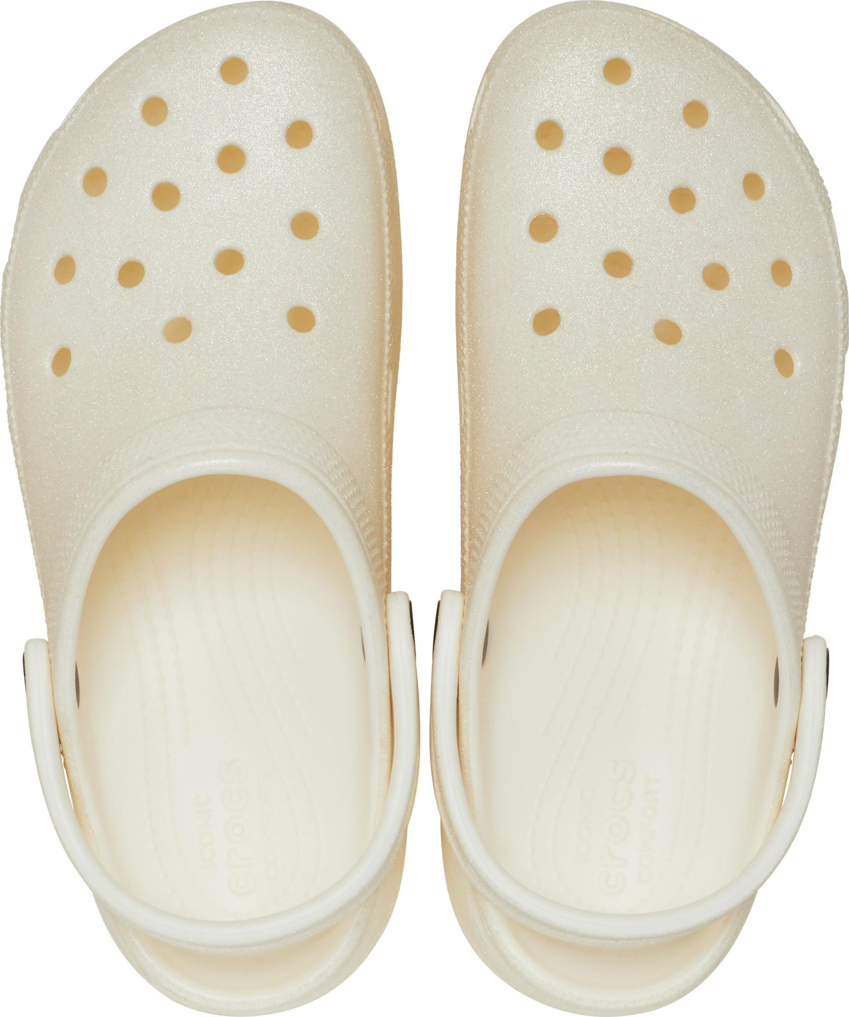 Klasisks ērtums, pilnveidots dizains un moderns stils ar spīdošām platformām „Classic Platform Glitter Clog”. Šie apavi izceļas ar ekskluzīvu, spīdošu apavu augšdaļu un paaugstinātu, profilētu zoli.