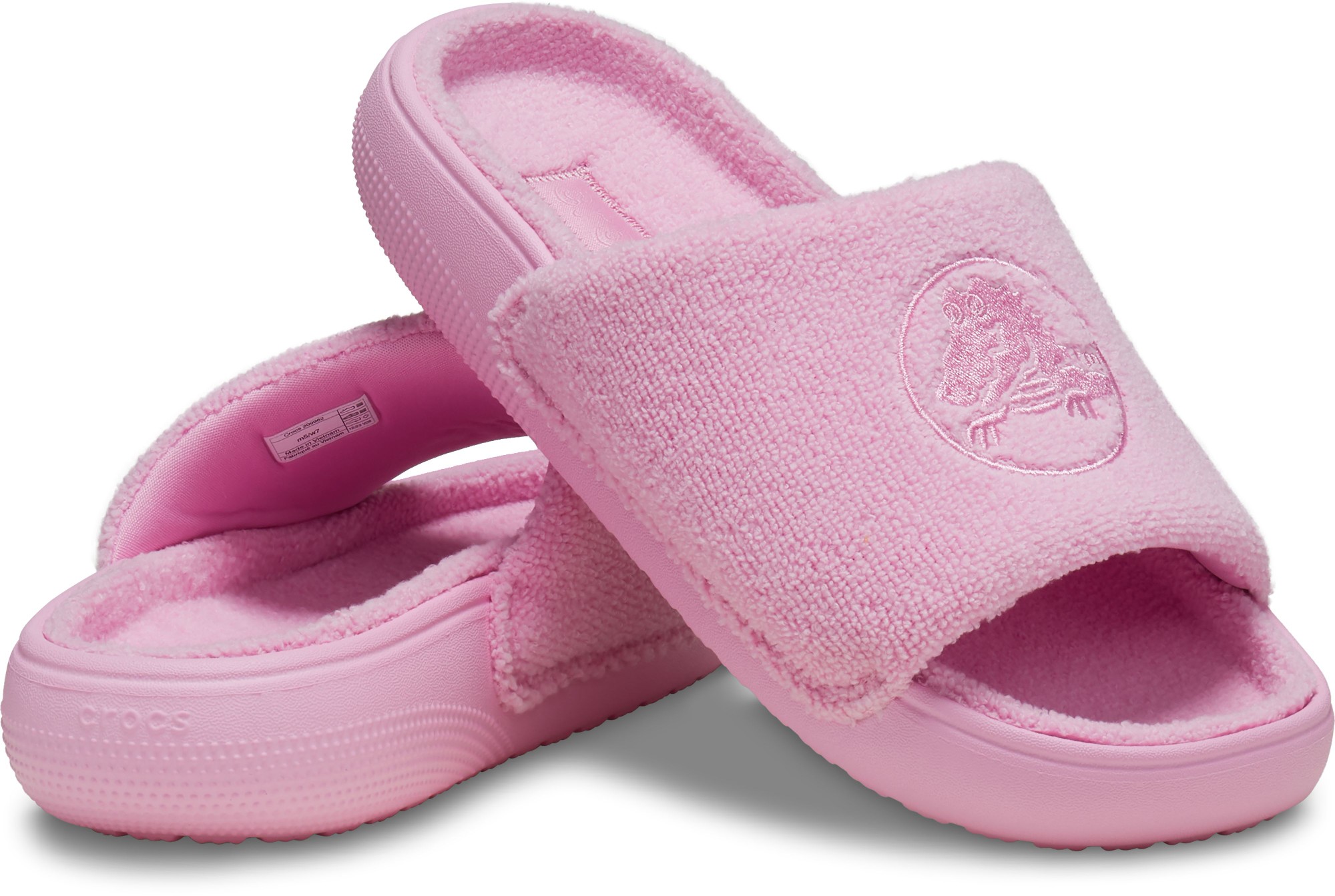 Jaunajām Classic Towel Slide iešļūcenēm ir frotē materiāla iekšzole un mīksts, frotē oderēts augšējais siksniņas slānis. Pateicoties ātri žūstošajam frotē audumam un Croslite™ putu konstrukcijai, šīs sandales ir lieliski piemērotas pludmales dienām un laiskai atpūtai pie baseina.