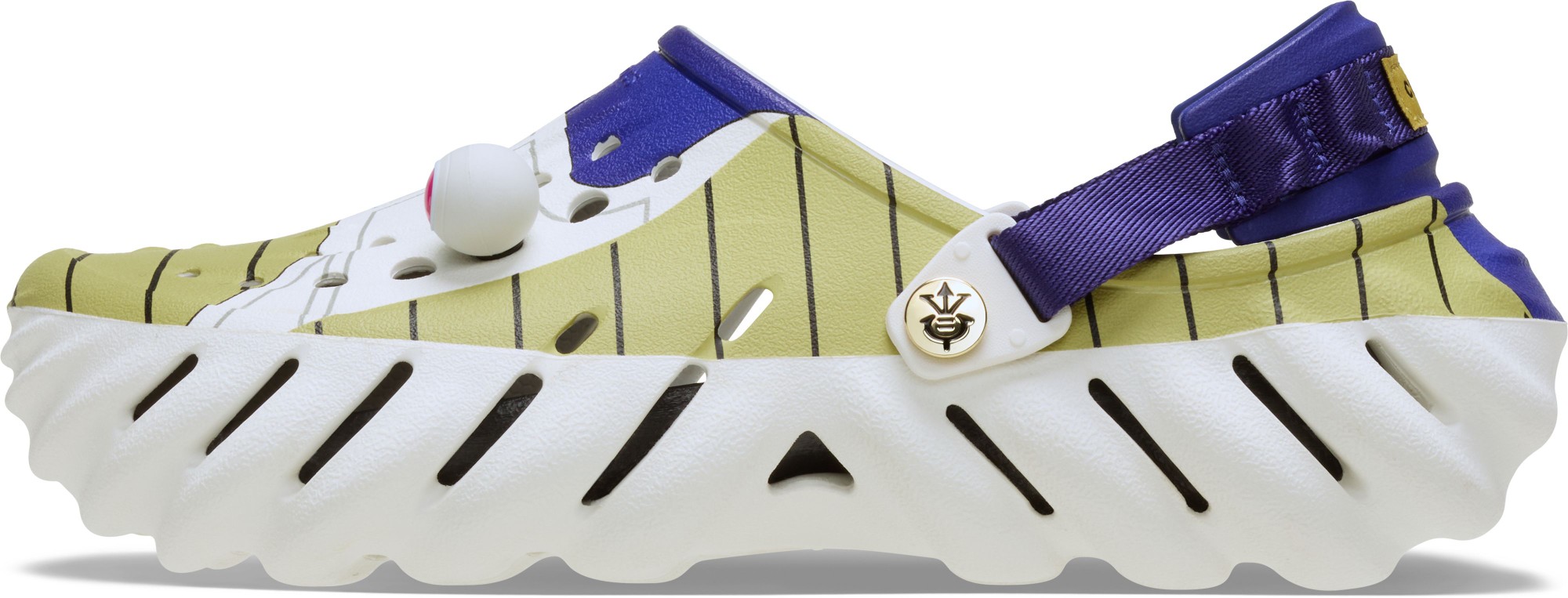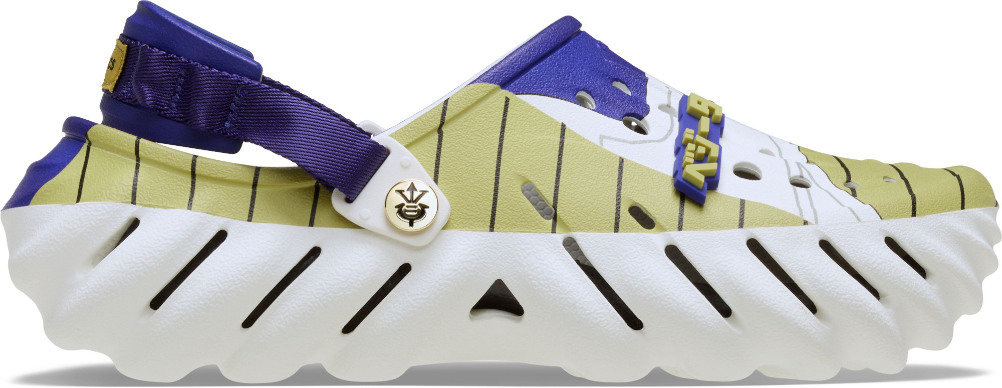 The Echo Collection is for those who want to transform their footwear without compromising their comfort. This fully molded Dragon Ball Z version is anything but conformist. With bold sculpting, an upper inspired by Vegeta, and themed Jibbitz™ charms, your style potential is unmatched.