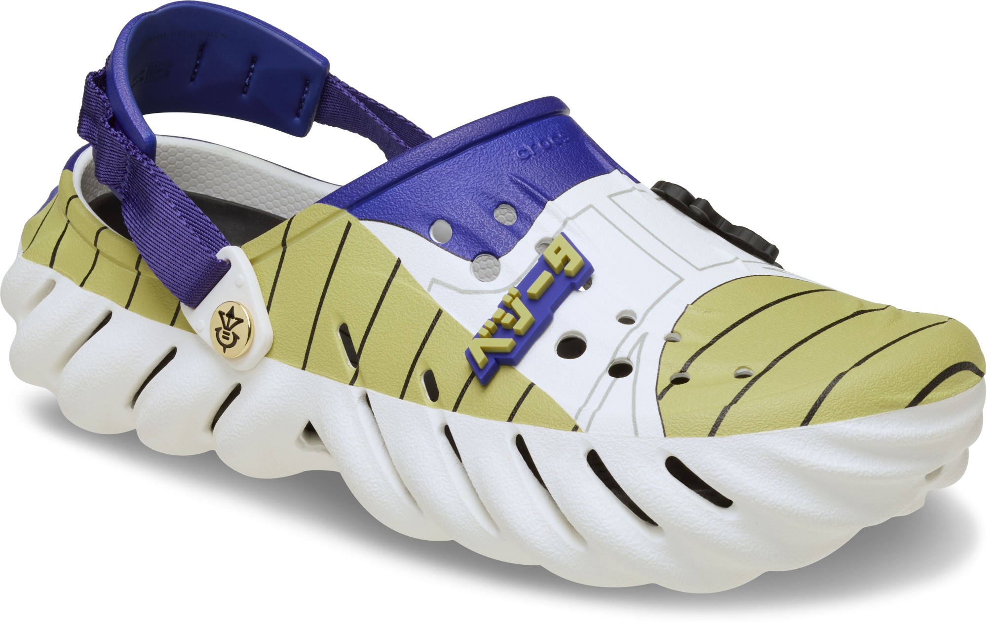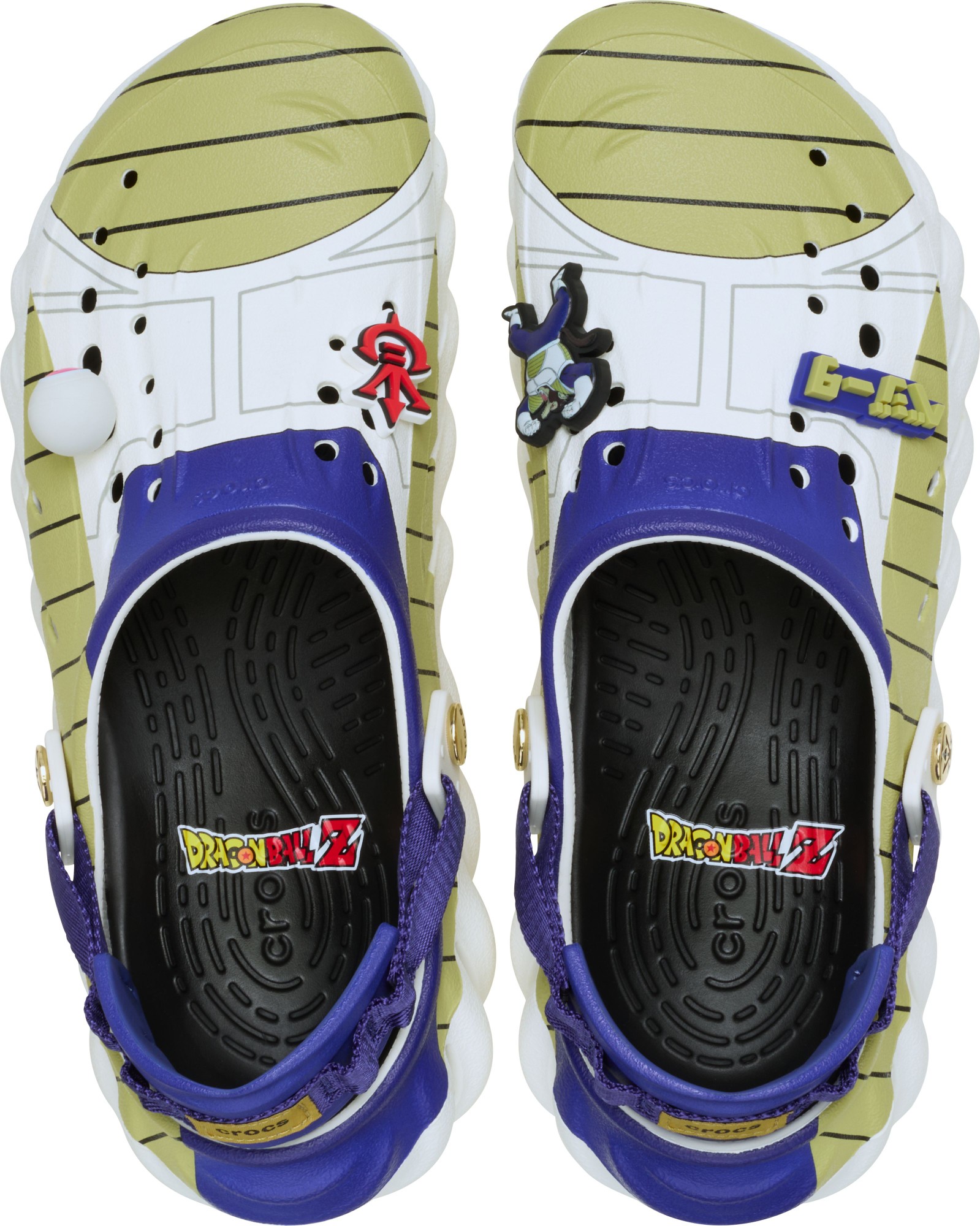 • Exclusive themed Jibbitz™ charms on the upper, including the Space Pod that brought Vegeta to Earth for the first time and Vegeta’s Great Ape form;