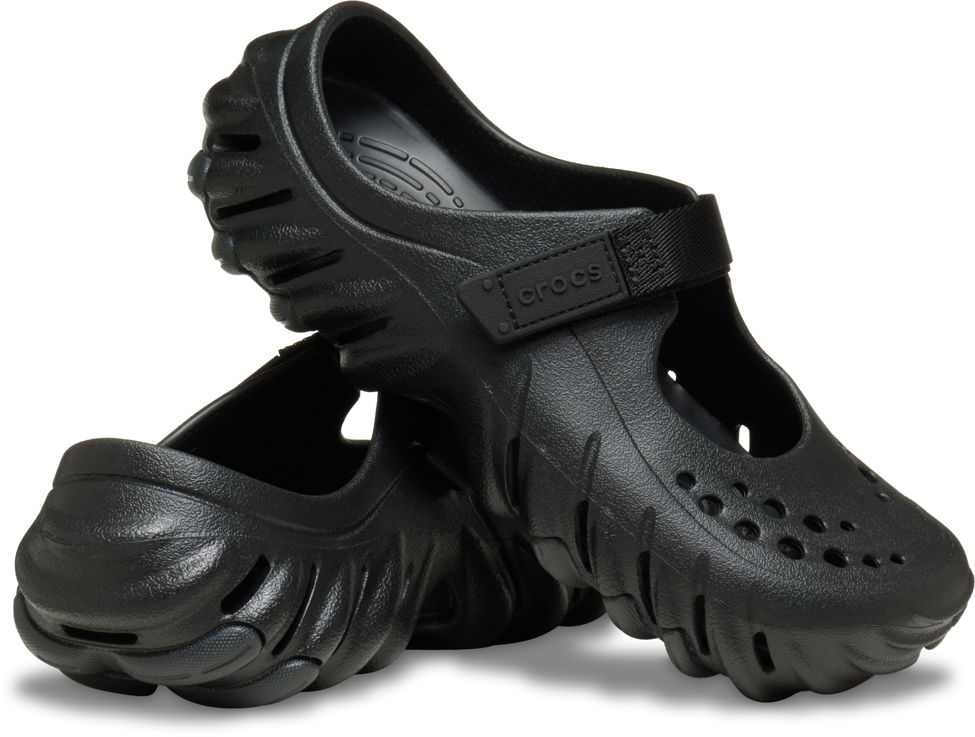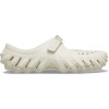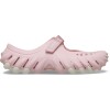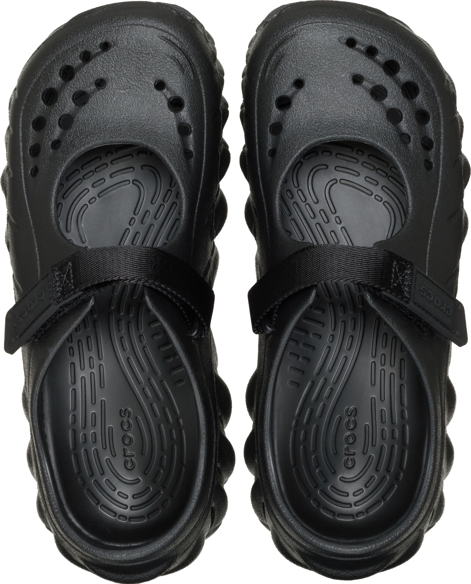 Enjoy the bold Echo attitude in a feminine and easy to wear silhouette. A refined Mary Jane inspired upper offers great style, while a midfoot hook-and-loop strap lets you dial in the fit. The LiteRide™ footbed provides Crocs premium comfort, the raised heel cupping brings more coverage and a secure feel, and the integrated rubber pods on the outsole offer enhanced traction. Plus, with seven Jibbitz™ holes on the upper, personalization stays front and center. Built on a refined, narrower Echo last, the Echo Mary Jane Clog offers feminine, street-ready style with everyday comfort.