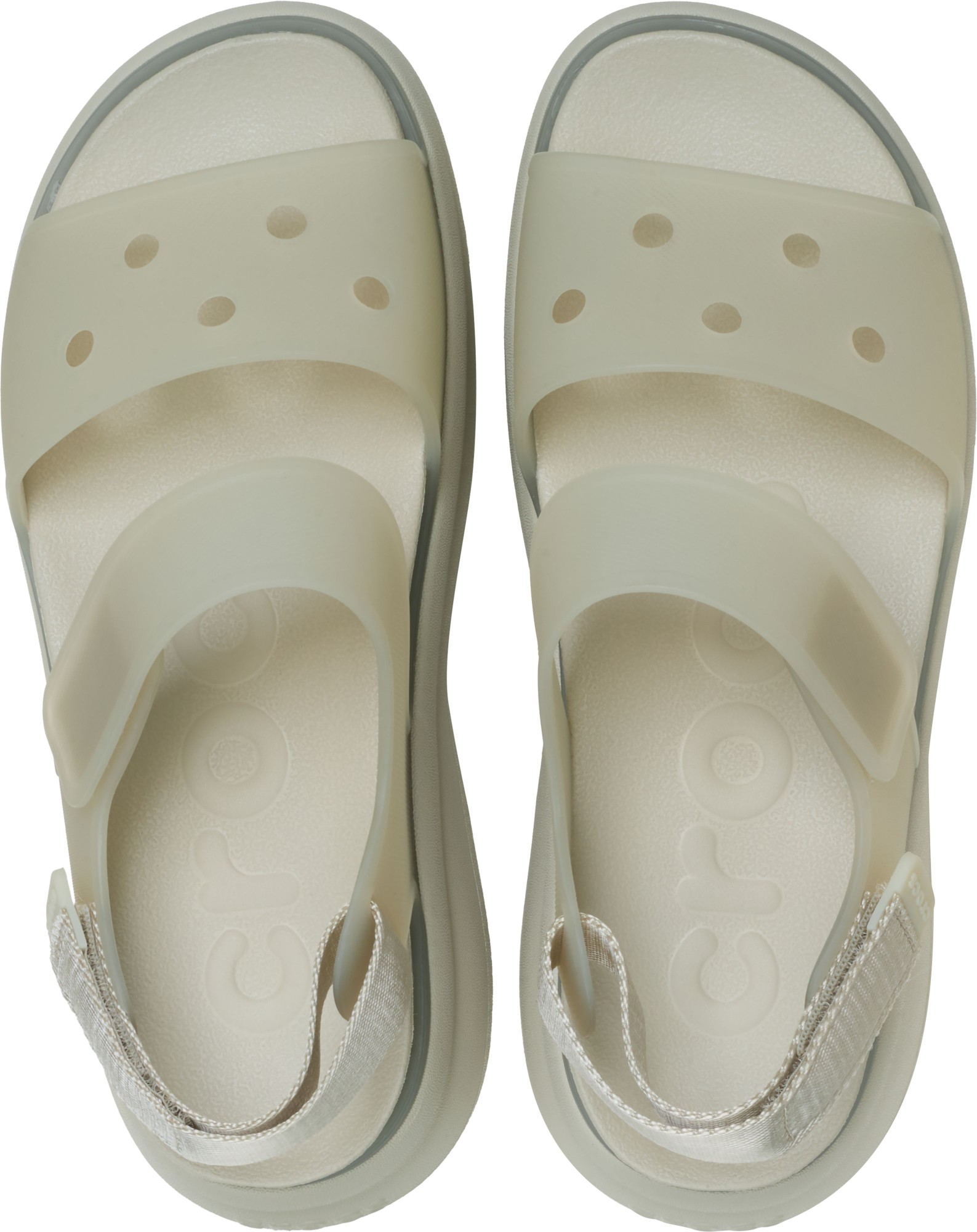 Moderns stils apvienojas ar svaigu un daudzpusīgu dizainu Soho Y-Strap sandalēs. Tu novērtēsi ērtu piegulumu, valkājamu platformas zoli un augstākās kvalitātes LiteRide™ iekšzoli, lai tās varētu valkāt visu dienu. Regulējamās siksniņas nodrošina lielisku piegulēšanu, bet unikālā zole no ikoniskā Croslite™ materiāla padara tās vieglas un izturīgas. Šī stilīgā versija izceļas ar jauno matēto “frosted” apdari, kas piešķir smalku caurspīdīgumu un krāsas niansi. Turklāt ir Jibbitz™ caurumi, lai tu varētu izpaust savu unikālo stilu. Svaigam stilam no rīta līdz vakaram izvēlies Soho Frosted Y-Strap.