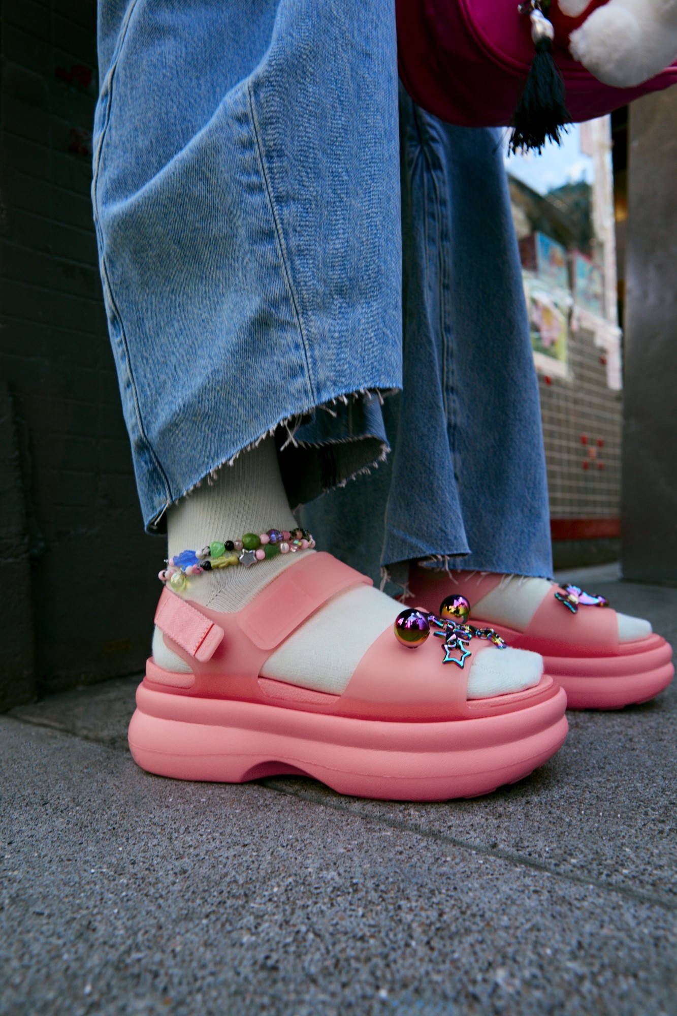 Customizable with Jibbitz™ charms on the front strap;