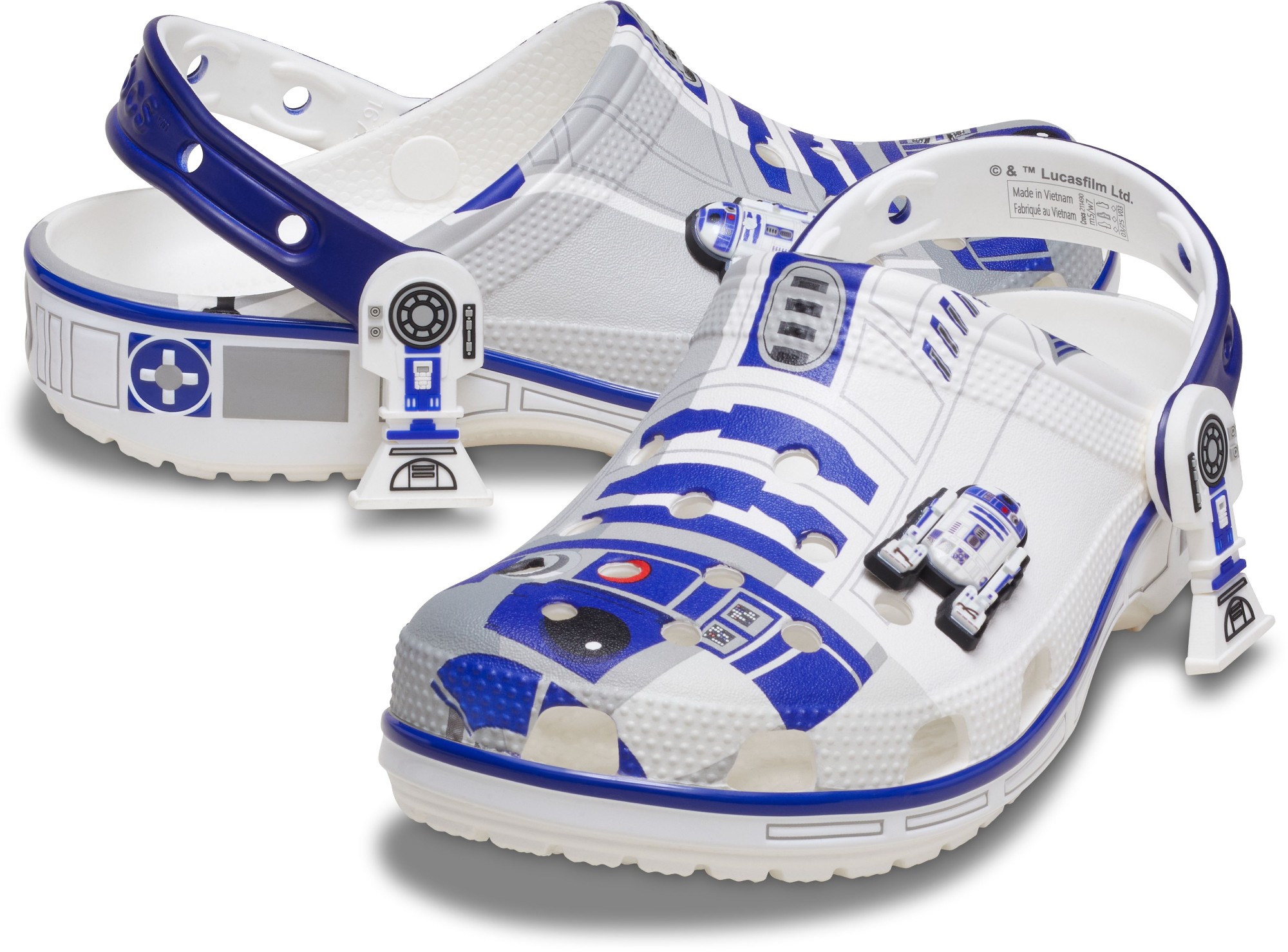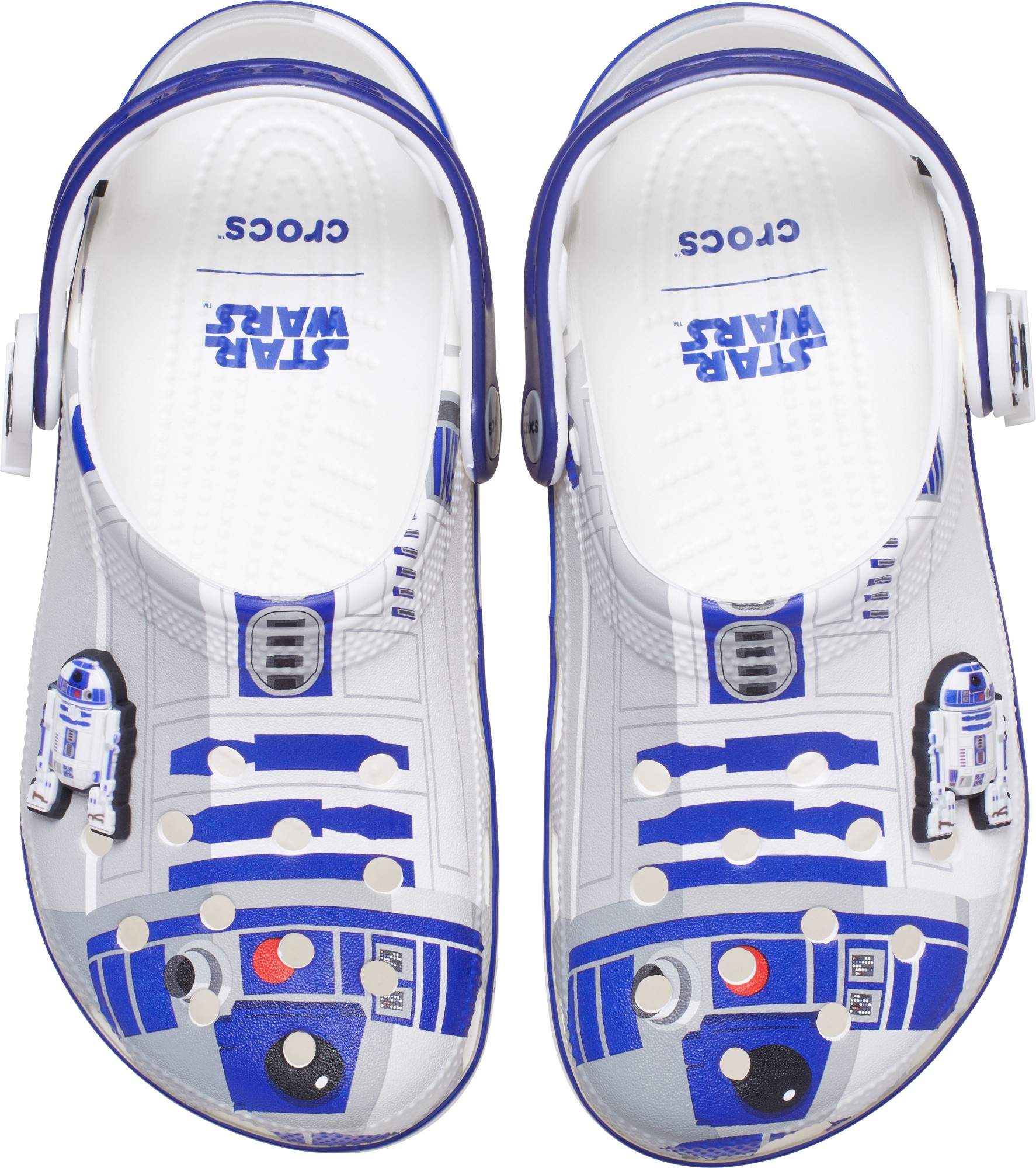 The heroic droid from the epic STAR WARS™ saga inspired this comfortable R2-D2 Classic Clog. This limited-edition design features printed droid details across the upper that embodies all the charm of R2-D2, with pivoting legs near each heel cup to complete this character-turned-clog design. This style is paired with two R2-D2 Jibbitz™ charms and plenty of space for more personalization to show off your STAR WARS™ fandom.