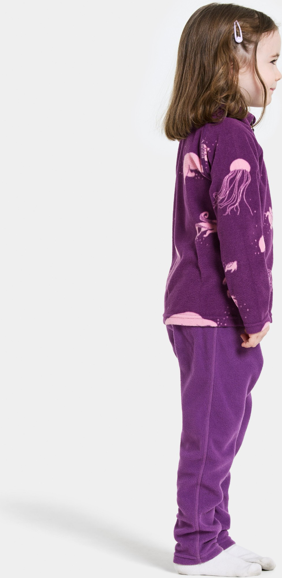 Monte is a soft and comfortable full-zip jumper for children, perfect for layering during outdoor activities. It features a seasonal pattern that adds a playful touch to every adventure. The jumper is made from a 4-way stretch material and has an ergonomic fit for optimal freedom of movement. The front zip is equipped with a chin-protecting collar, ensuring the zip never lies directly against the chin.