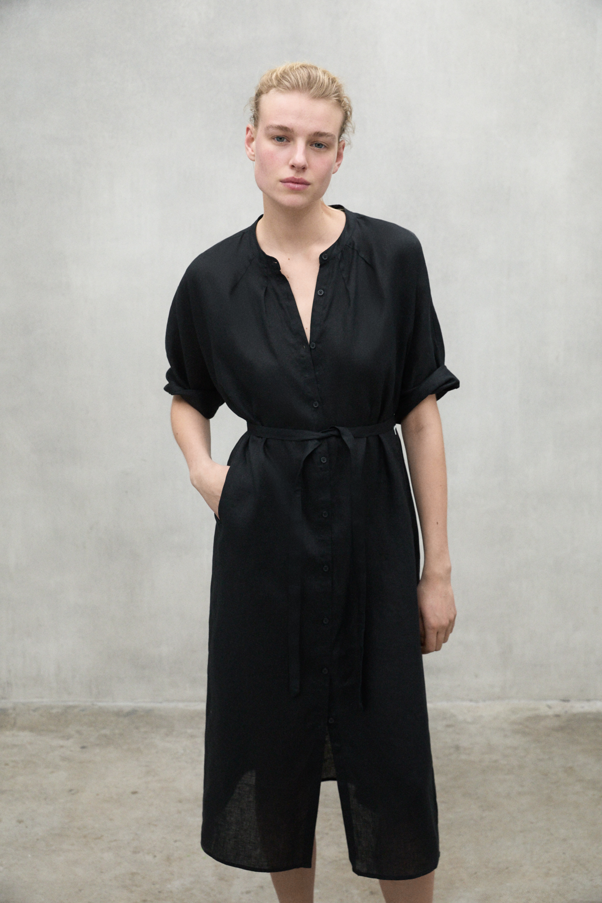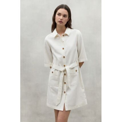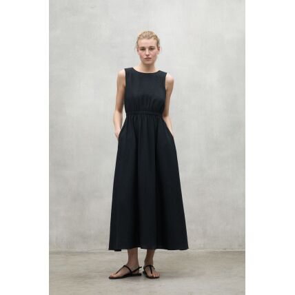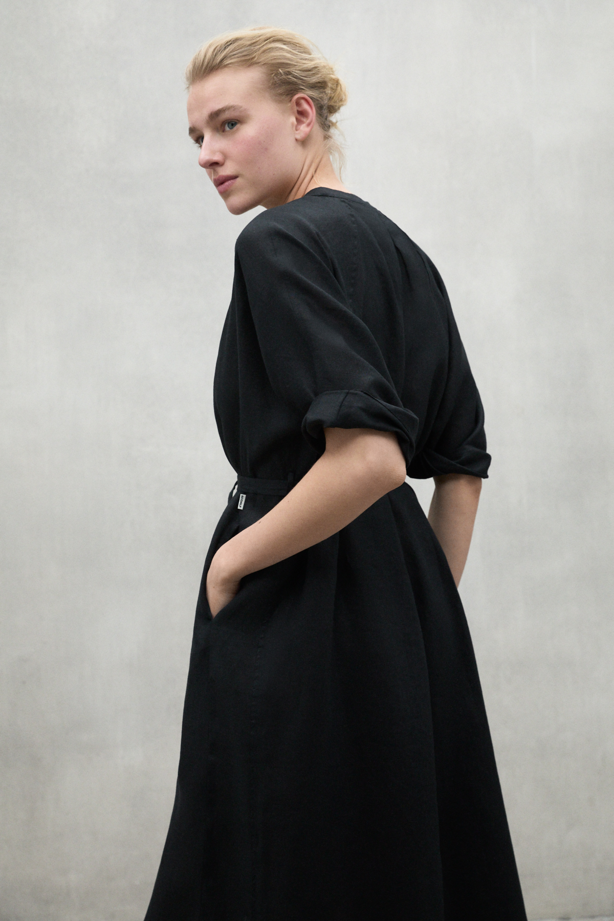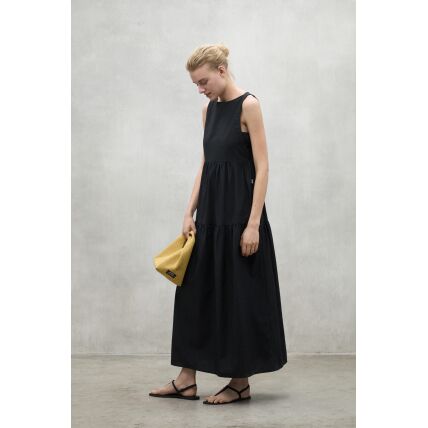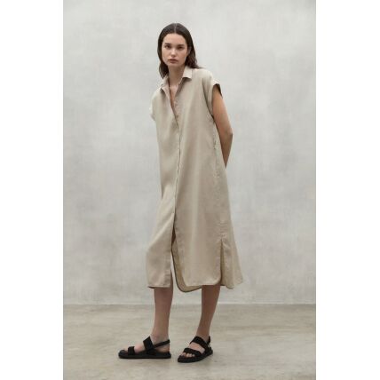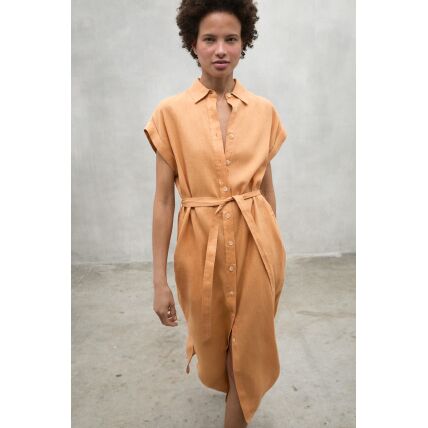 The long Lea dress is made of 20% recycled linen. The minimal impact that flax has on the environment makes it an outstanding choice. Flax requires much less water and pesticides than other crops and it is also biodegradable. It stands out for its details, such as the half kimono sleeve and the fabric belt. These give it a unique touch, making this dress a versatile and different option.