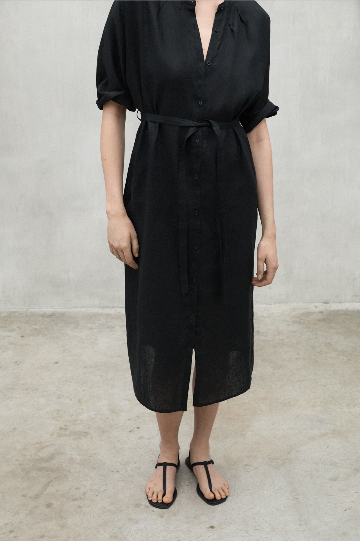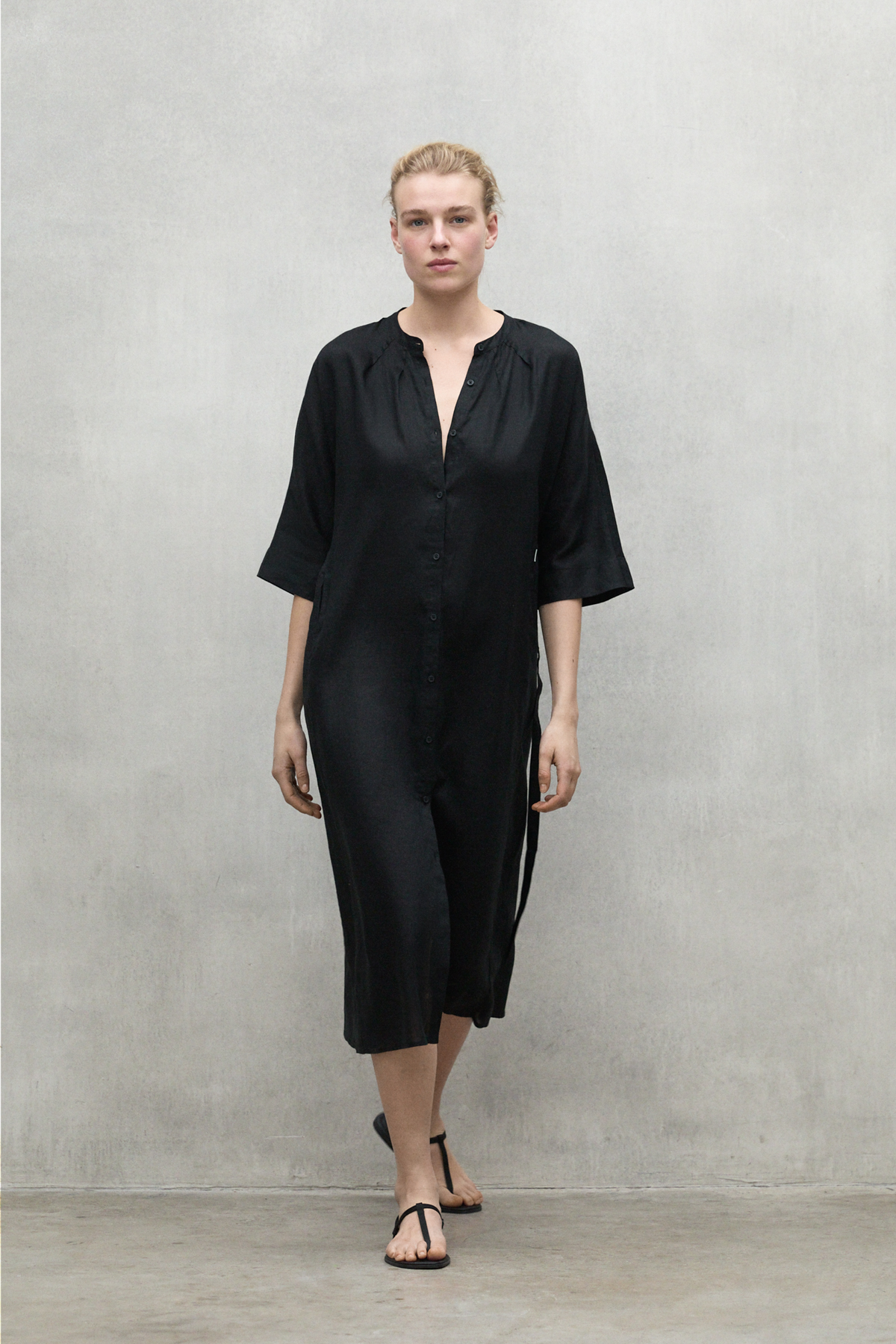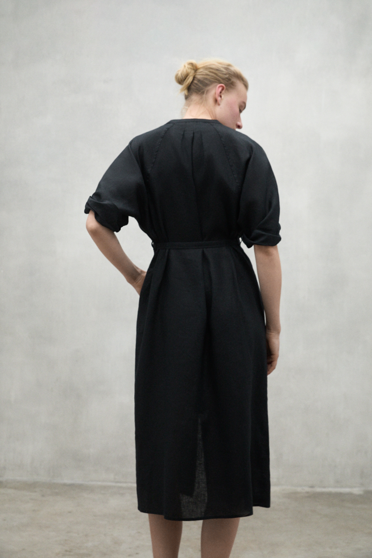 The long Lea dress is made of 20% recycled linen. The minimal impact that flax has on the environment makes it an outstanding choice. Flax requires much less water and pesticides than other crops and it is also biodegradable. It stands out for its details, such as the half kimono sleeve and the fabric belt. These give it a unique touch, making this dress a versatile and different option.