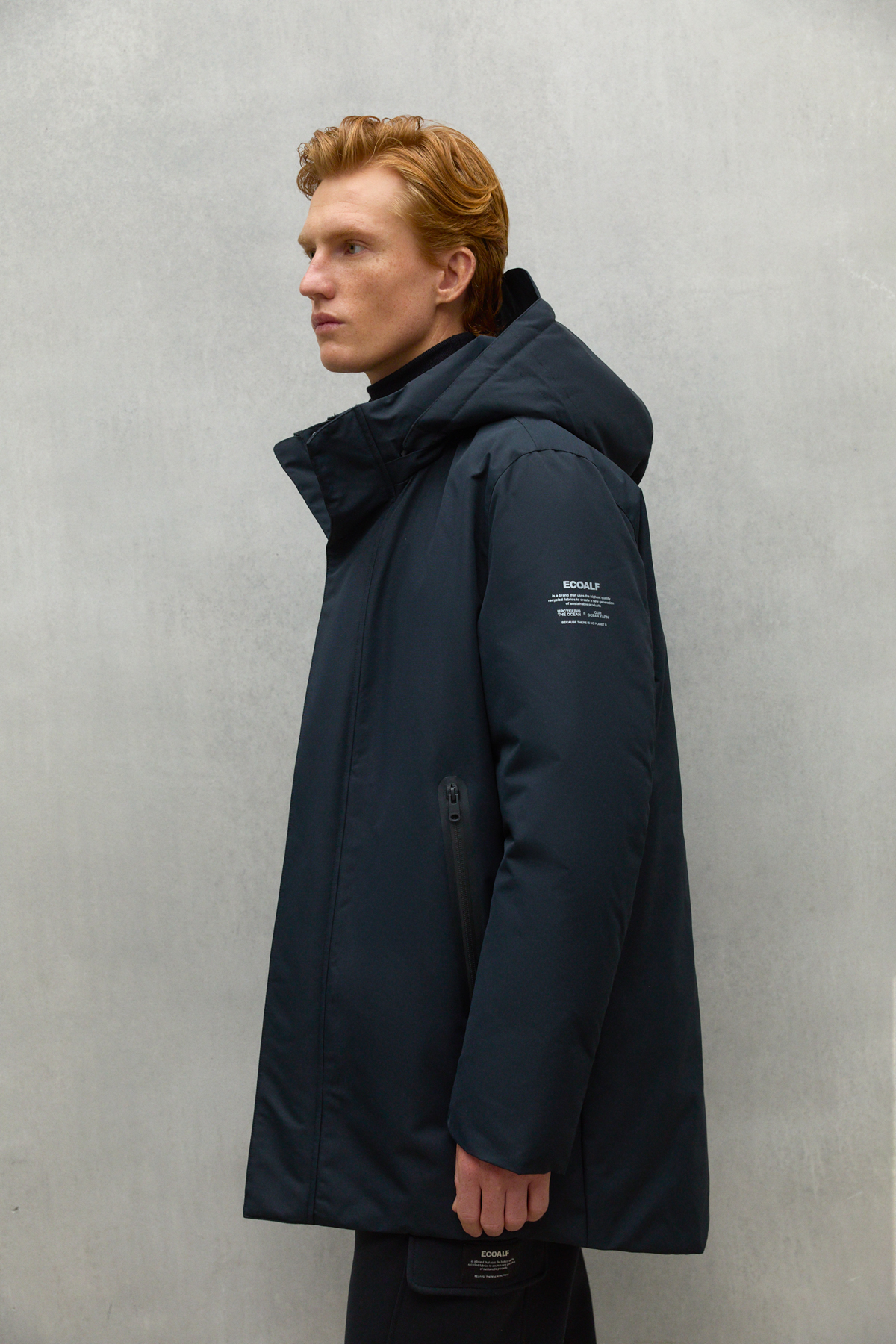 The Parko coat is made using post-consumer clothing and our Ocean Yarn, made with bottles recovered from the ocean thanks to the Ecoalf Foundation. The Upcycling the Oceans project brings together more than 4,200 fishermen from all around the Mediterranean Sea and has collected over 1,500 tonnes of waste since 2015. A warm, comfortable and durable garment, a wardrobe essential for combatting the cold while combining fashion with sustainability.