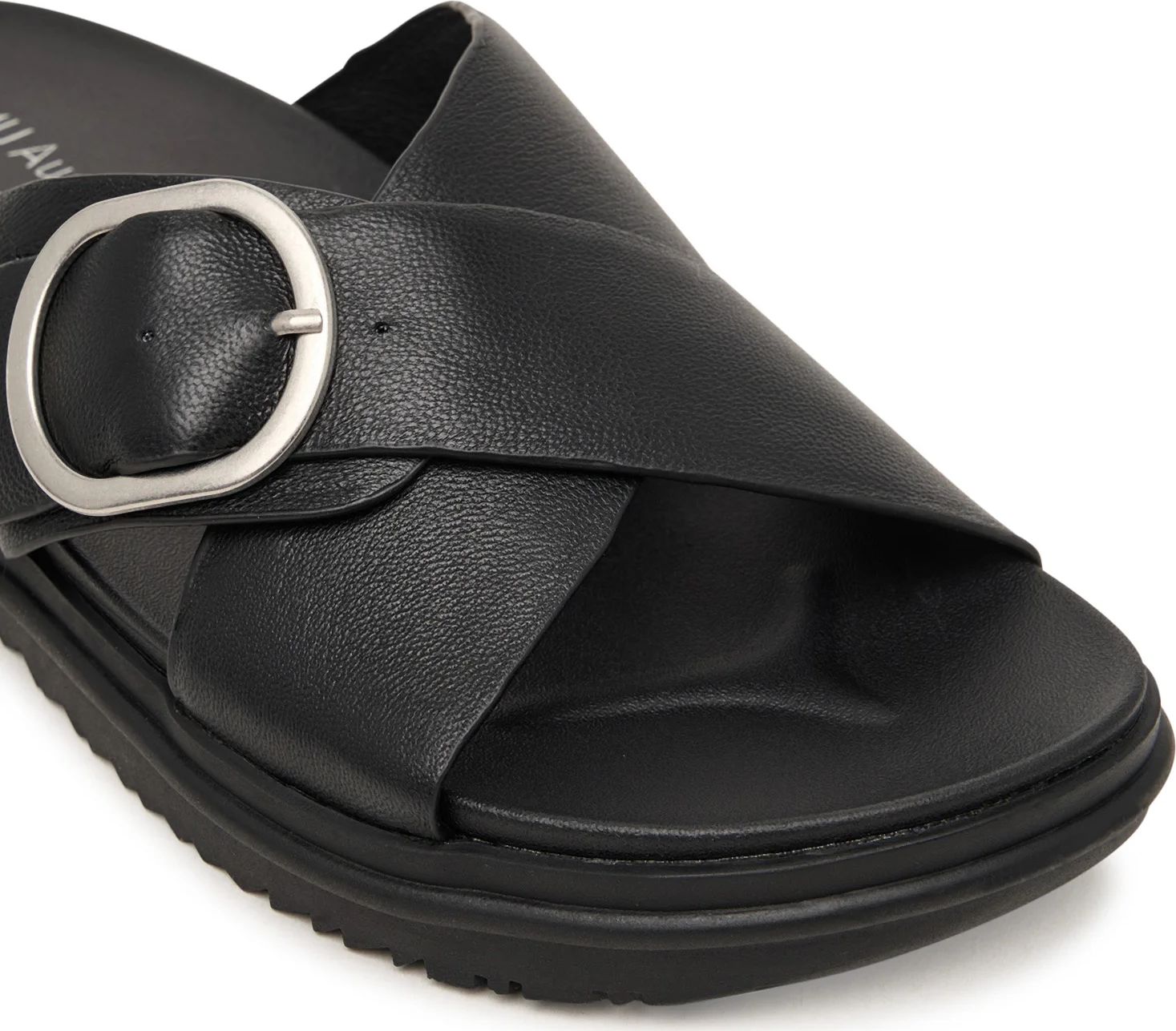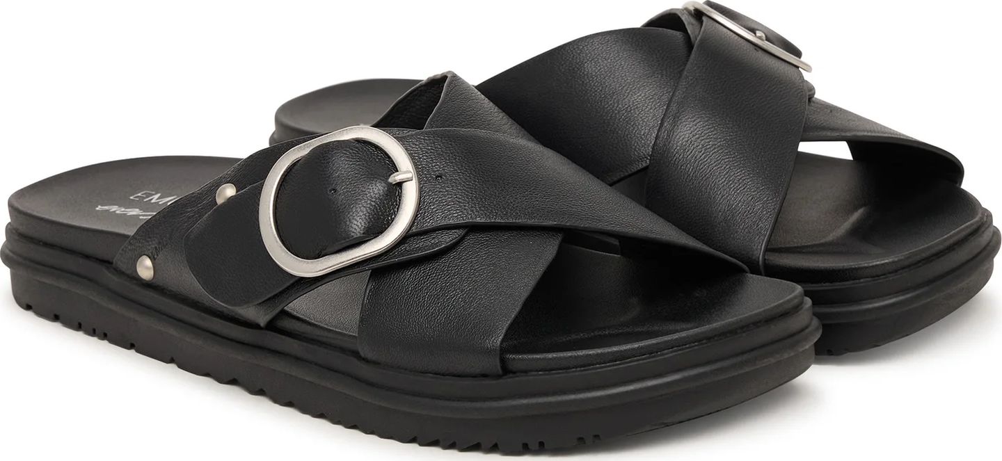 Iešļūcenes, ar kurām katrs solis kļūst viegls. Izgatavotas no mīkstas ādas ar pieskaņotu ādas oderi, tās veidotas ar krustenisko siksniņu dizainu un sānu sprādzi smalkam akcentam. Atvērtais, viegli uzvelkamais modelis saglabā vienkāršību, bet mīkstā iekšzole un izturīgā zole nodrošina komfortu visas dienas garumā. Atturīgas un daudzpusīgas – tās ir iešļūcenes, kuras izvēlēsieties atkal un atkal.