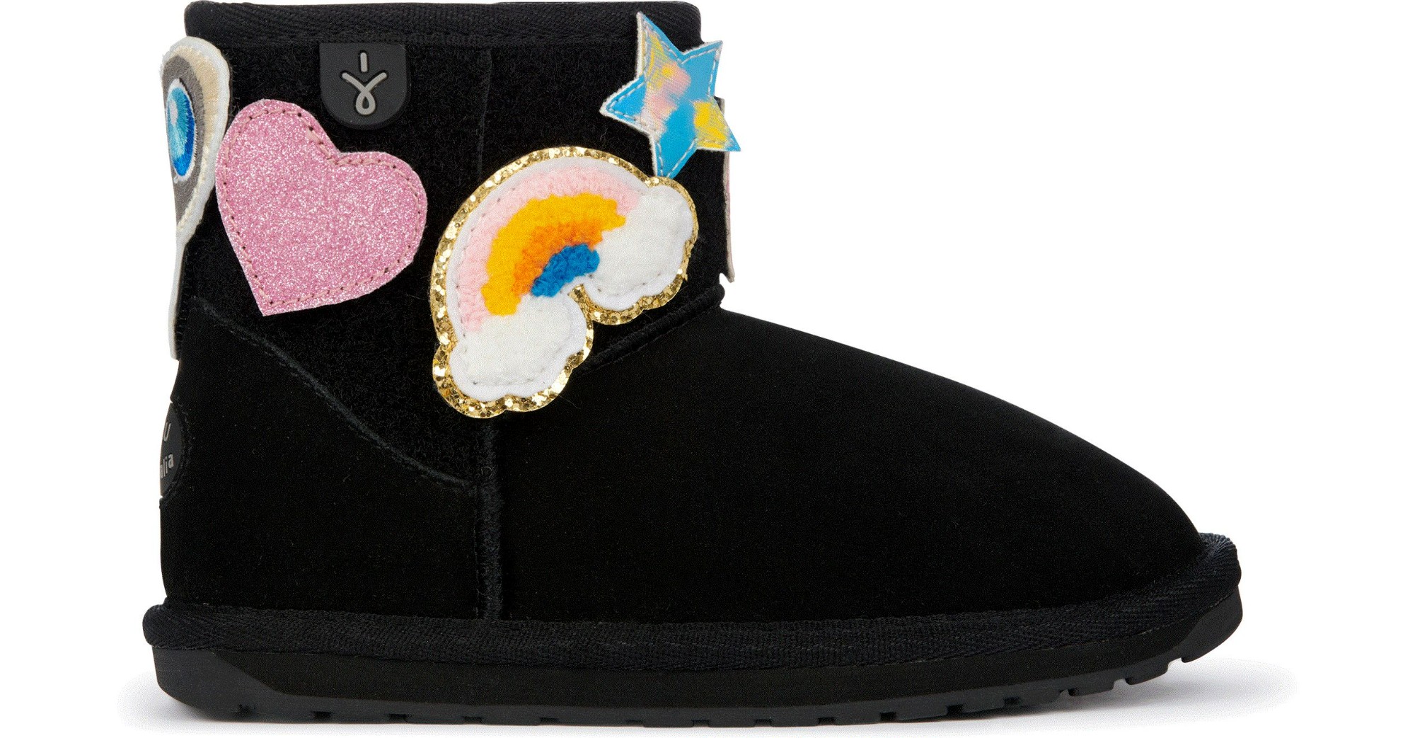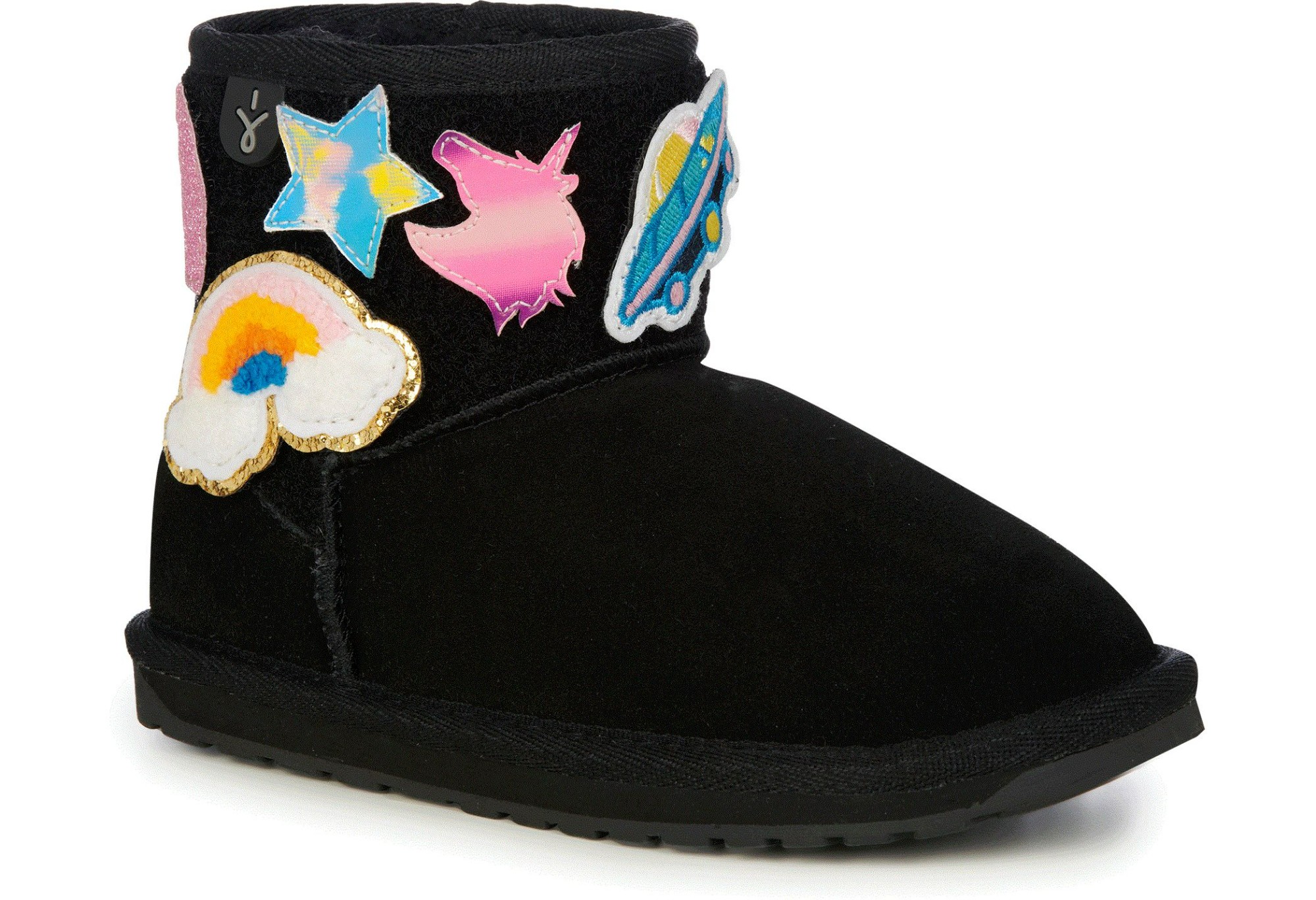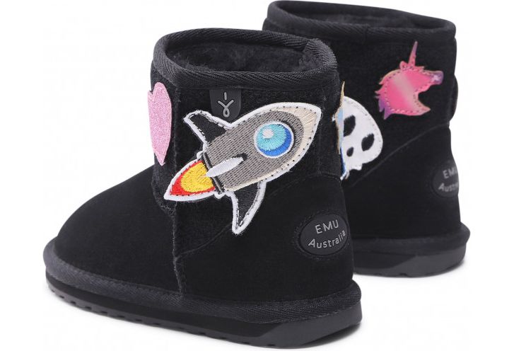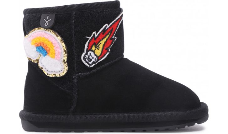 The Wallaby Mini Play is a classic pull-on design boot with fun customisable patches. Each pair comes with ten interchangeable patches that simply stick to the upper part of the boot for a fun look! Made from premium suede and lined with cosy Australian Merino wool, the natural fibres deliver a warm, soft and durable fit. The moulded heel cup, soft EVA midsole and flexible TPR outsole with wave design provide unmatched comfort and support.