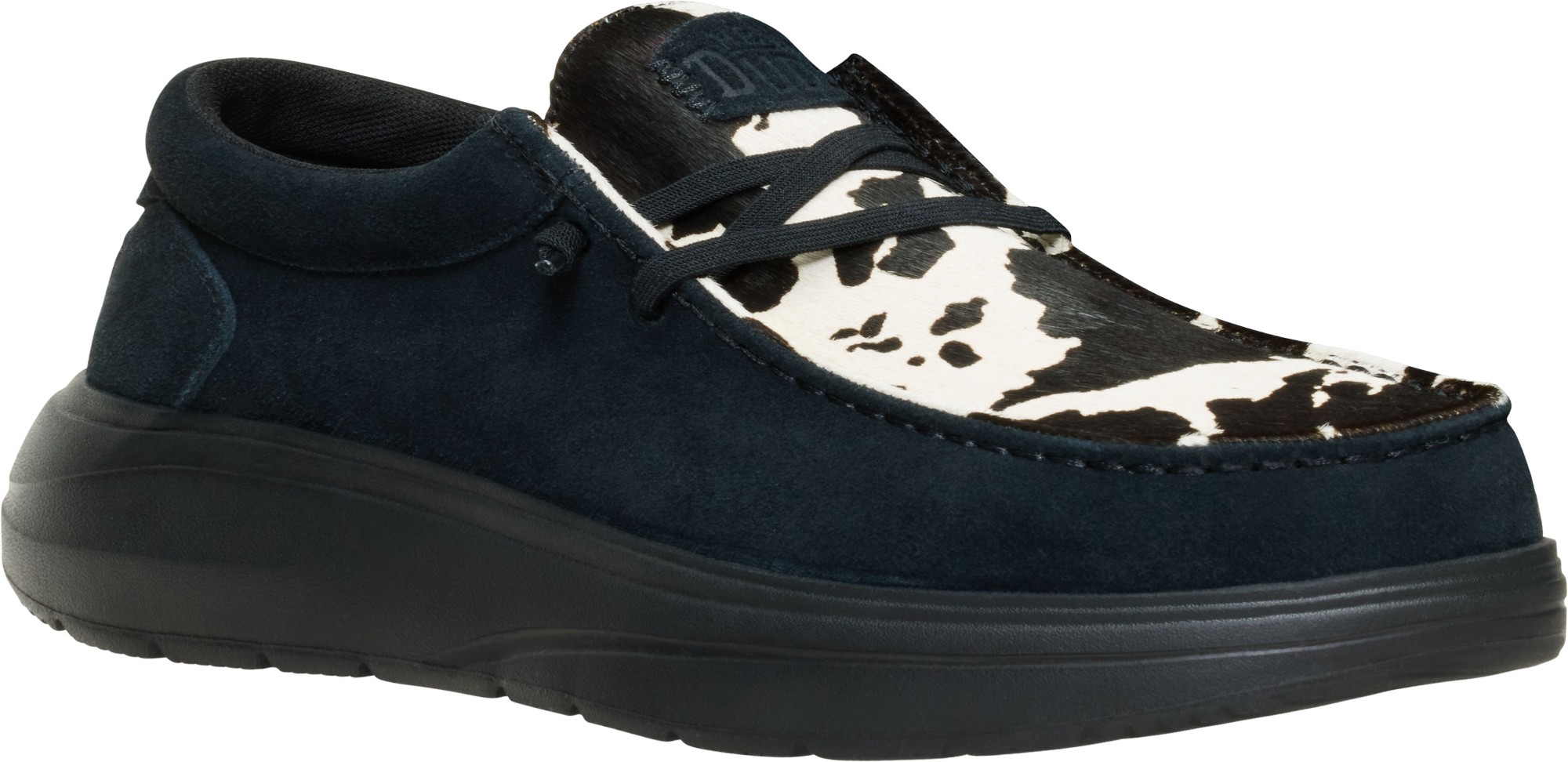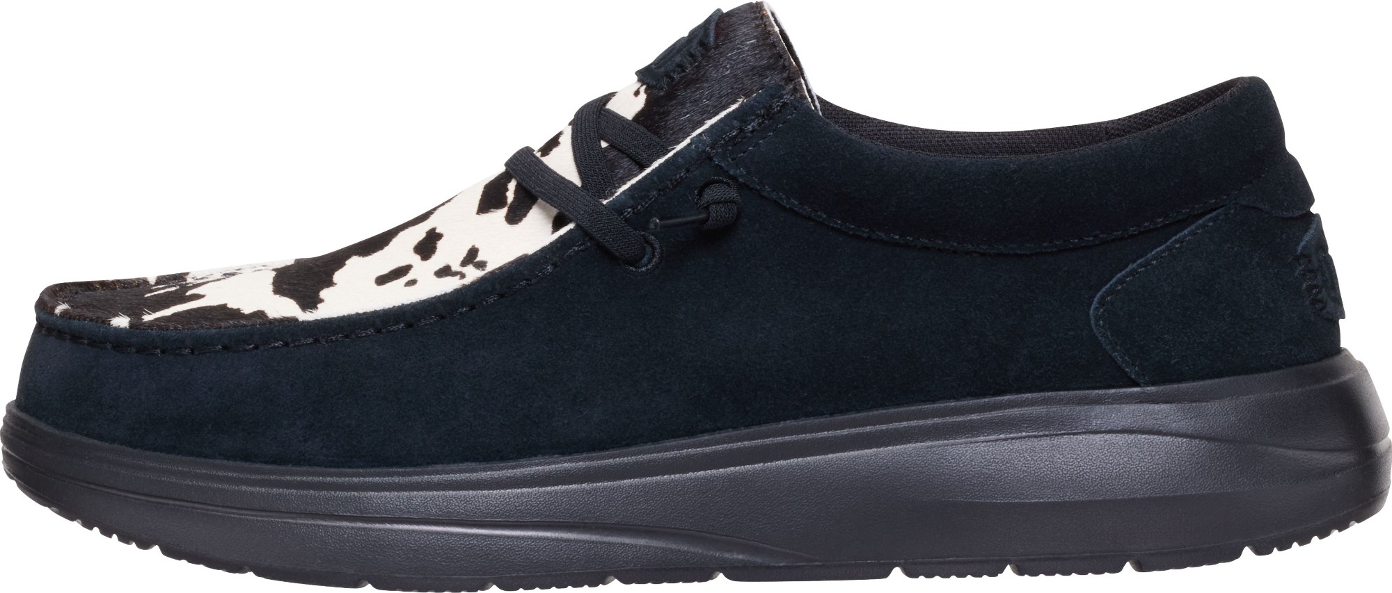Bold by nature. The Wally Comf Cow brings a black-and-white cow print collar to an all-black base for a look that’s anything but ordinary. With an easy-on design and lightweight construction, this slip-on is built for comfort without sacrificing personality. A soft foam insole keeps your stride smooth, whether you’re out making moves or keeping it chill. Style that stands out. Comfort that keeps up.