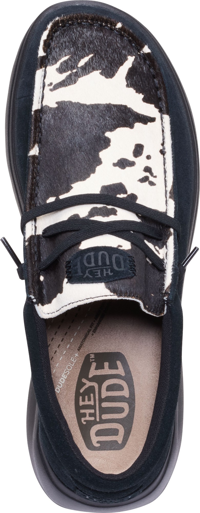 Drosmīgs pēc dabas. Wally Comf Cow piešķir melnbaltu govs raksta apkakli uz pilnīgi melna pamata – izskats, kas nav nekas parasts. Viegli uzvelkams, vieglas konstrukcijas modelis radīts komfortam, nezaudējot personību. Mīksta putu iekšzole nodrošina gludu soli gan ikdienas gaitās, gan atpūtā. Stils, kas izceļas. Komforts, kas tur līdzi.