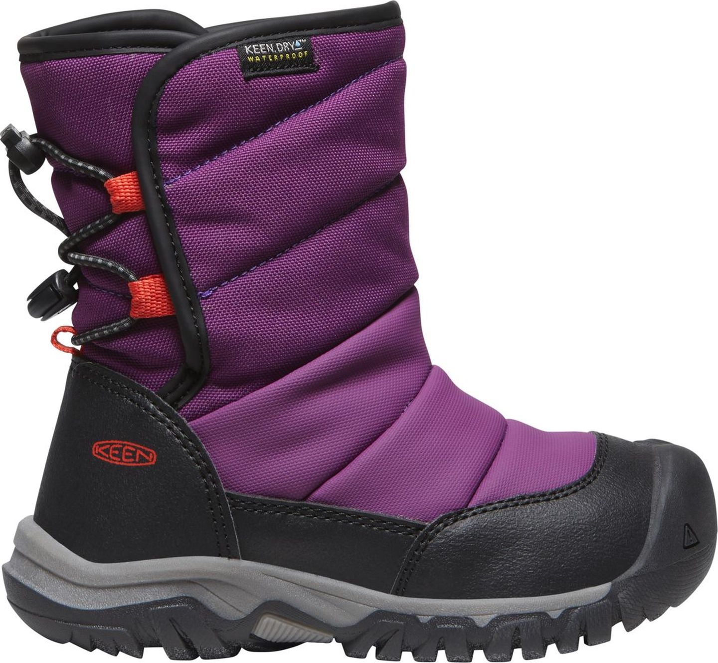 Šie KEEN bērnu sniega zābaki ir lieliski piemēroti ziemai, jo tie ir mīksti, ūdensnecaurlaidīgi un silti, un, pateicoties šņoru fiksēšanas sistēmai apavu aizmugurē, apavus būs viegli uzvilkt un novilkt.
