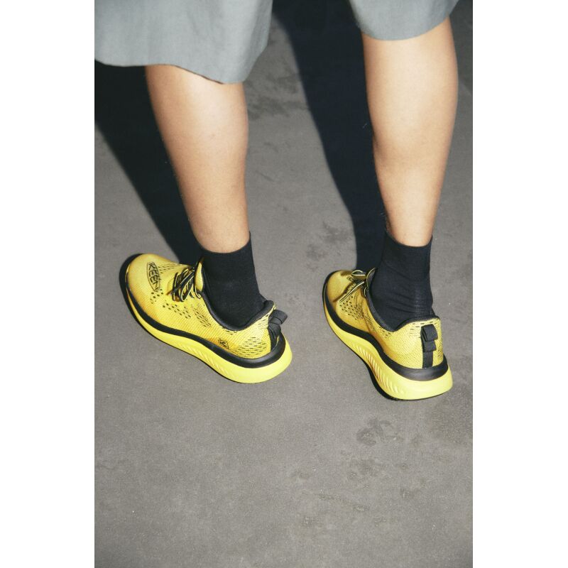 Veicot biomehāniskus laboratorijas pētījumus, KEEN eksperti ir noskaidrojuši, ka ķermenis un pēdas darbojas kā svārsts, liekot pēdai kustēties nepārtrauktā līknē (modelis unikāli atšķiras no skrējēja soļa, kas vairāk līdzinās atsperei), un, ka esošie apavi nespēj atvieglot šo pēdas kustību. Lai uzlabotu šo nepārtraukto līkni, zīmols KEEN ir izstrādājis patentēto KEEN.CURVE™ tehnoloģiju. Šī tehnoloģija apvieno nepārtrauktas līknes ģeometriju, zolītes tehnoloģiju un augstas enerģijas starpzoles, lai radītu nepārspējamu, uz priekšu virzošas kustības sajūtu, kas imitē sološanu. Turklāt plašais, 30 mm priekšstilba pacēlums, nodrošina īpaši vienmērīgu un vieglu pāreju no papēža uz pēdas, padarot katru soli vieglāku. Papildu 10 mm ieliktnis starp papēdi un pēdas priekšpēdas daļu vēl vairāk uzlabo virzību uz priekšu un palielina stabilitāti.