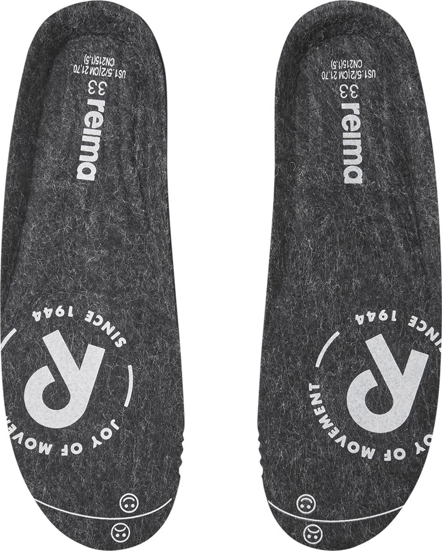 Removable felt insoles with Happy Fit print help to find the correct size;