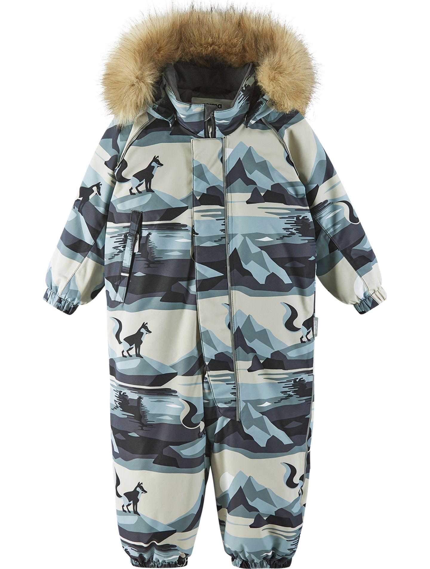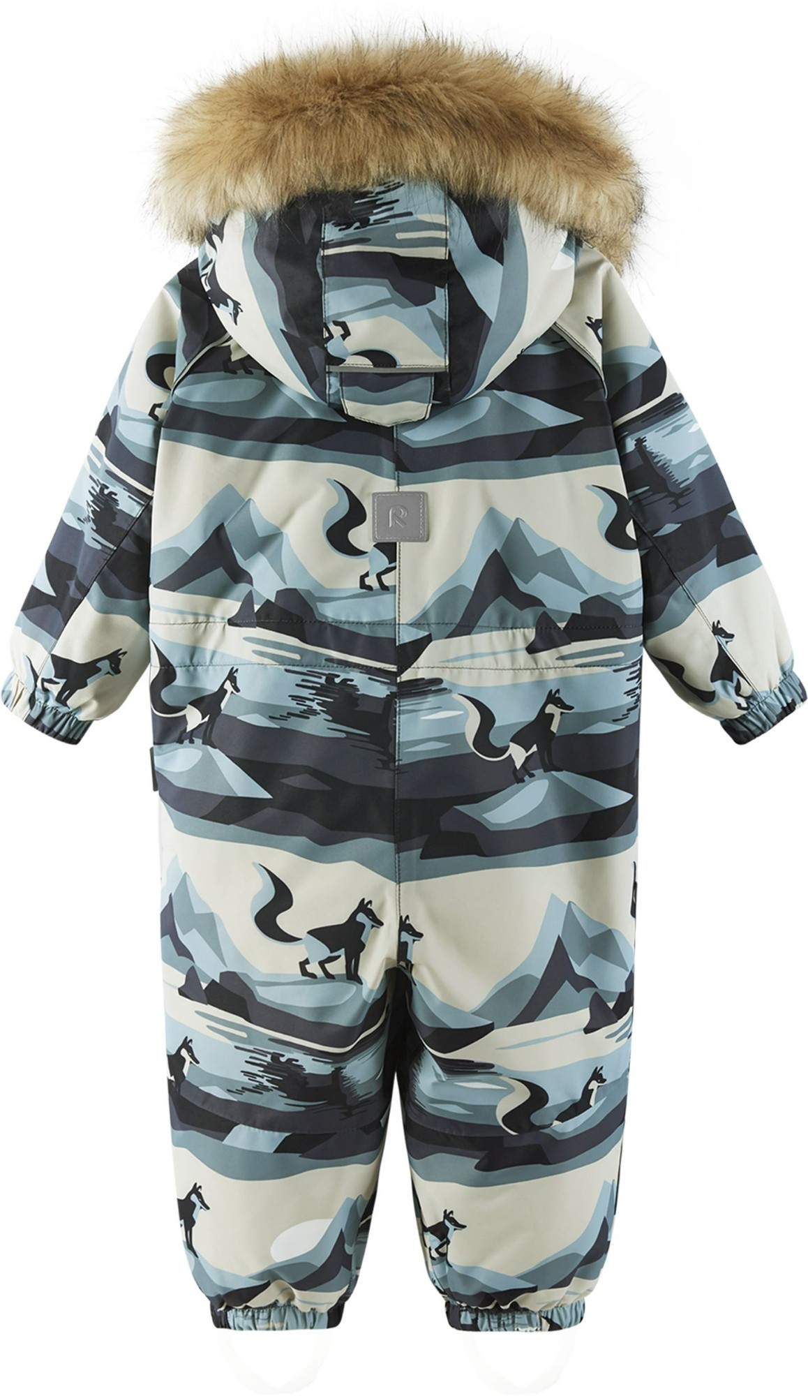 This Reimatec Lappi toddlers' winter overall is ideal for winter fun. Crafted from waterproof, bluesign® approved fabric (that's kind to the planet), BIONIC-FINISH®ECO technology makes them water and dirt repellent. The material is also breathable and windproof. All the seams have been sealed waterproof and the seat is insulated to keep bottoms warm and dry during cold-weather adventures. The smooth lining makes dressing easy. The detachable and adjustable hood with detachable faux fur trim is also safe when little ones are playing outdoors – connected with snap buttons, it comes off easily if it gets caught on something. Durable silicone foot loops keep the trousers hems in place, protecting little ankles from moisture and the cold. This tumble-dryer-friendly winter all-in-one is a great choice for crawling in the countryside or strolling in the city!