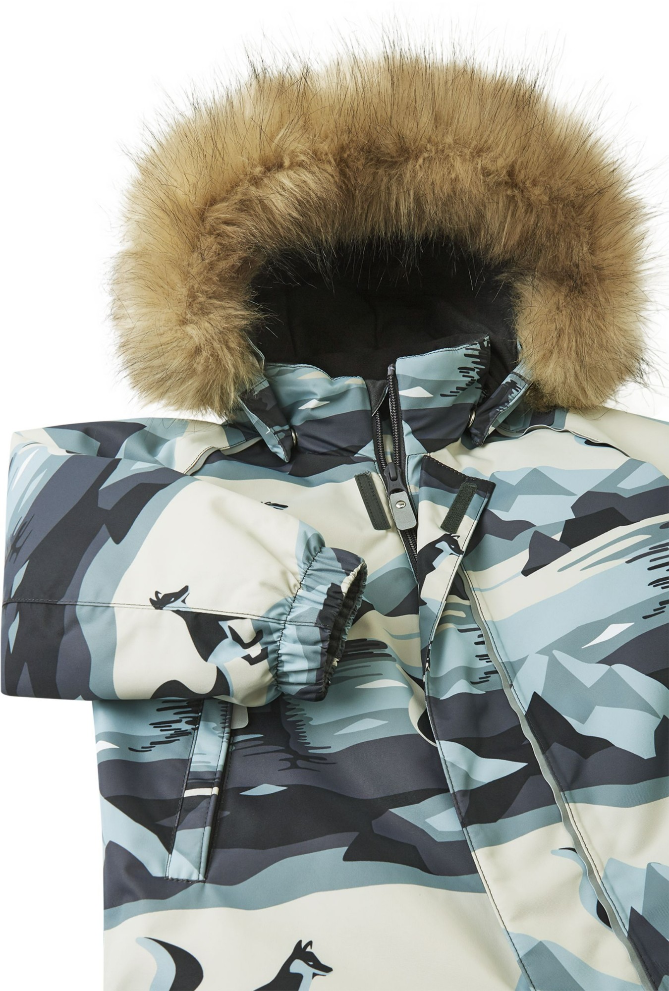 Šis Reimatec Lappi kombinezons ir ideāli piemērots ziemas prieku baudīšanai. Tas izgatavots no ūdensnecaurlaidīga, bluesign® sertificēta materiāla (tas ir draudzīgs planētai), un ar BIONIC-FINISH®ECO tehnoloģijas palīdzību atgrūž ūdeni un netīrumus. Šis materiāls ir arī gaisa caurlaidīgs un vēja necaurlaidīgs. Visas šuves ir hidroizolētas, un sēžas daļā ir siltinātājs, kas nodrošina siltumu un sausumu aukstā laikā. Gludā odere atvieglo kombinezona uzvilkšanu. Noņemamā un regulējamā kapuce ar neņemamo kažokādas apmali ir droša, mazuļiem rotaļājoties laukā – tā piestiprināta ar spiedpogām un viegli atdalās, ja gadās aiz kaut kā aizķerties. Izturīgās silikona pēdu saites notur vietā bikšu apmales, aizsargājot potītes pret mitrumu un aukstumu. Kombinezonu var žāvēt veļas žāvētājā, un tā ir lieliska izvēle gan pilsētai, gan laukiem!