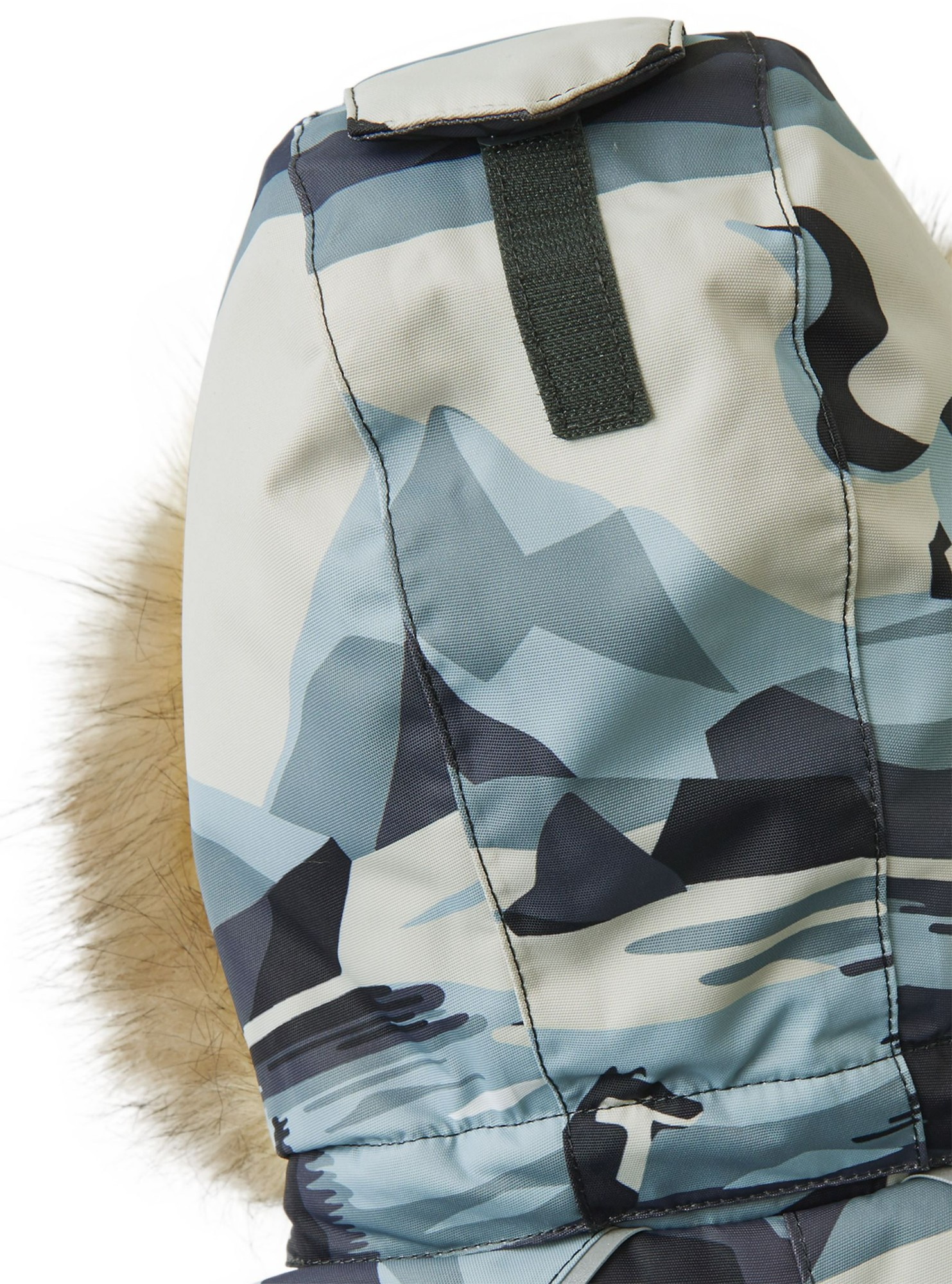 Test winner in 2021: fully waterproof toddler's snowsuit with a detachable faux fur trim on hood. With insulated seat.