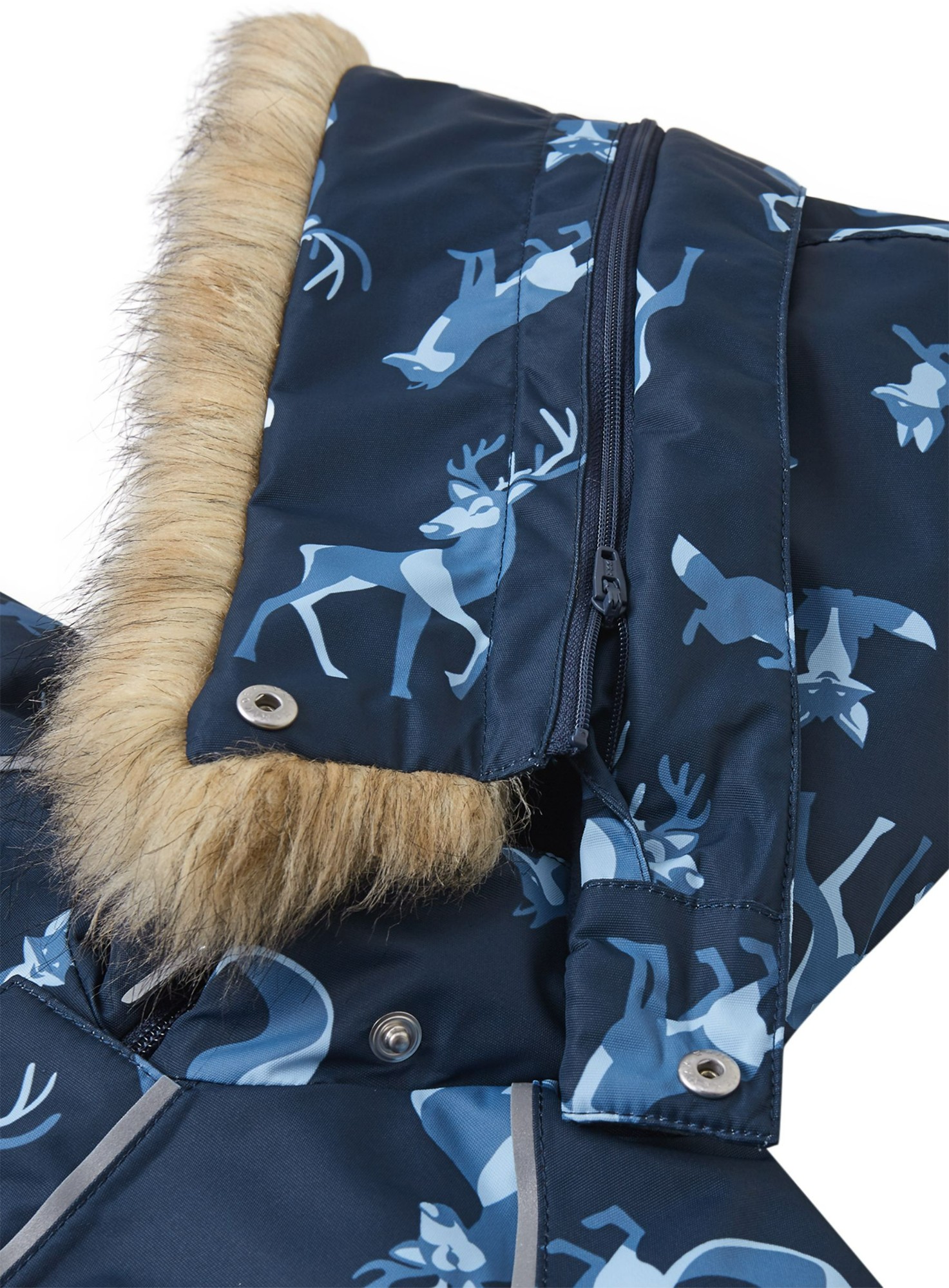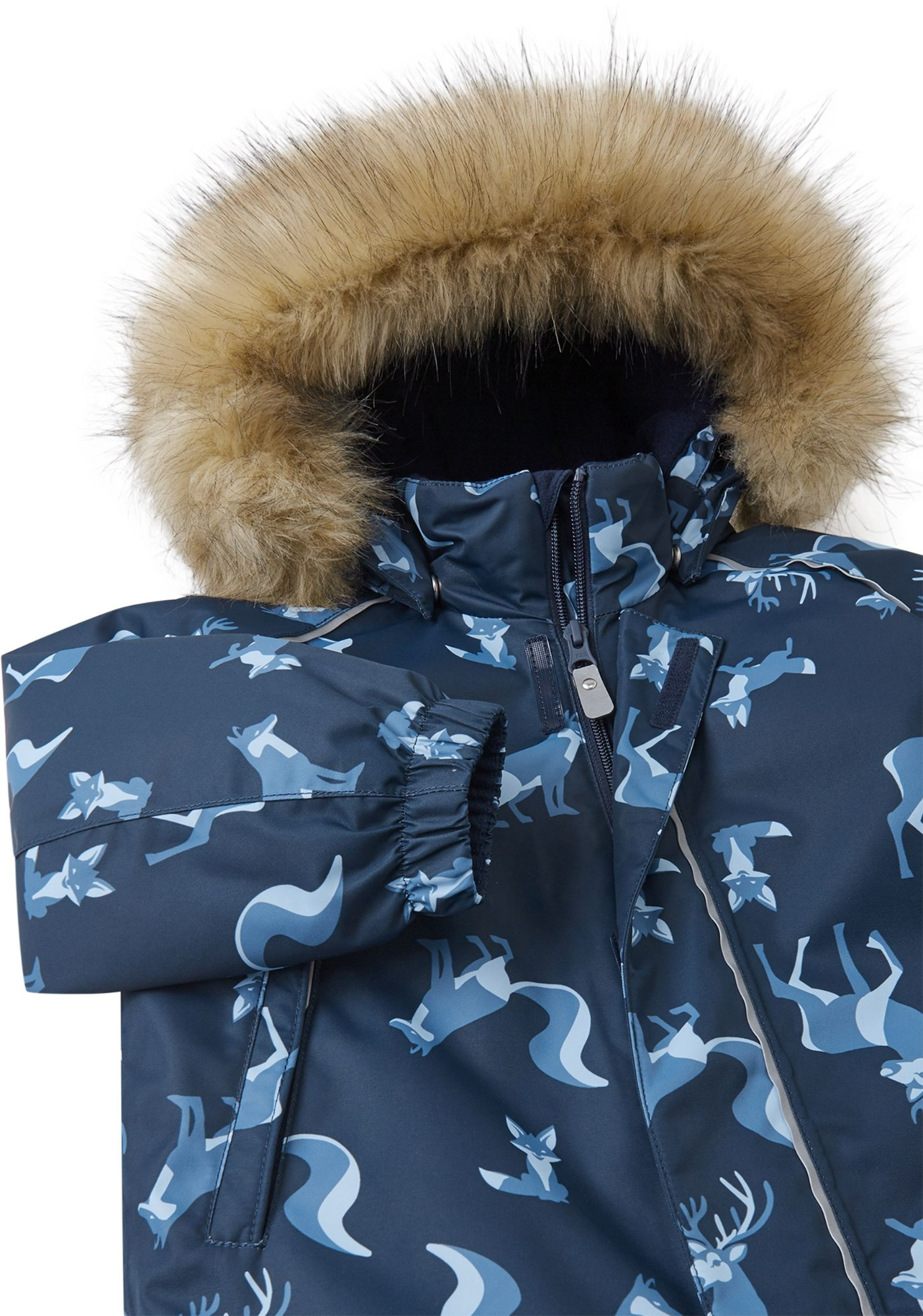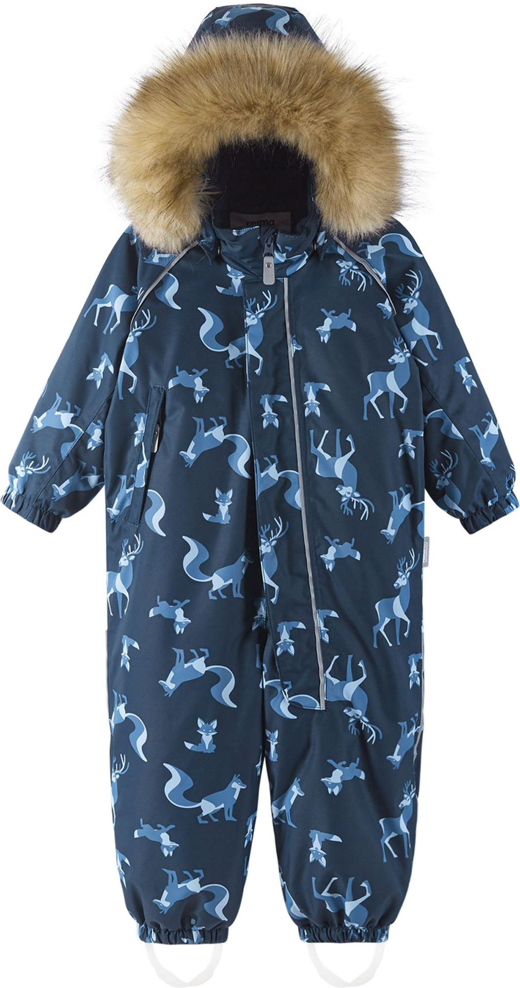 Šis Reimatec Lappi kombinezons ir ideāli piemērots ziemas prieku baudīšanai. Tas izgatavots no ūdensnecaurlaidīga, bluesign® sertificēta materiāla (tas ir draudzīgs planētai), un ar BIONIC-FINISH®ECO tehnoloģijas palīdzību atgrūž ūdeni un netīrumus. Šis materiāls ir arī gaisa caurlaidīgs un vēja necaurlaidīgs. Visas šuves ir hidroizolētas, un sēžas daļā ir siltinātājs, kas nodrošina siltumu un sausumu aukstā laikā. Gludā odere atvieglo kombinezona uzvilkšanu. Noņemamā un regulējamā kapuce ar neņemamo kažokādas apmali ir droša, mazuļiem rotaļājoties laukā – tā piestiprināta ar spiedpogām un viegli atdalās, ja gadās aiz kaut kā aizķerties. Izturīgās silikona pēdu saites notur vietā bikšu apmales, aizsargājot potītes pret mitrumu un aukstumu. Kombinezonu var žāvēt veļas žāvētājā, un tā ir lieliska izvēle gan pilsētai, gan laukiem!