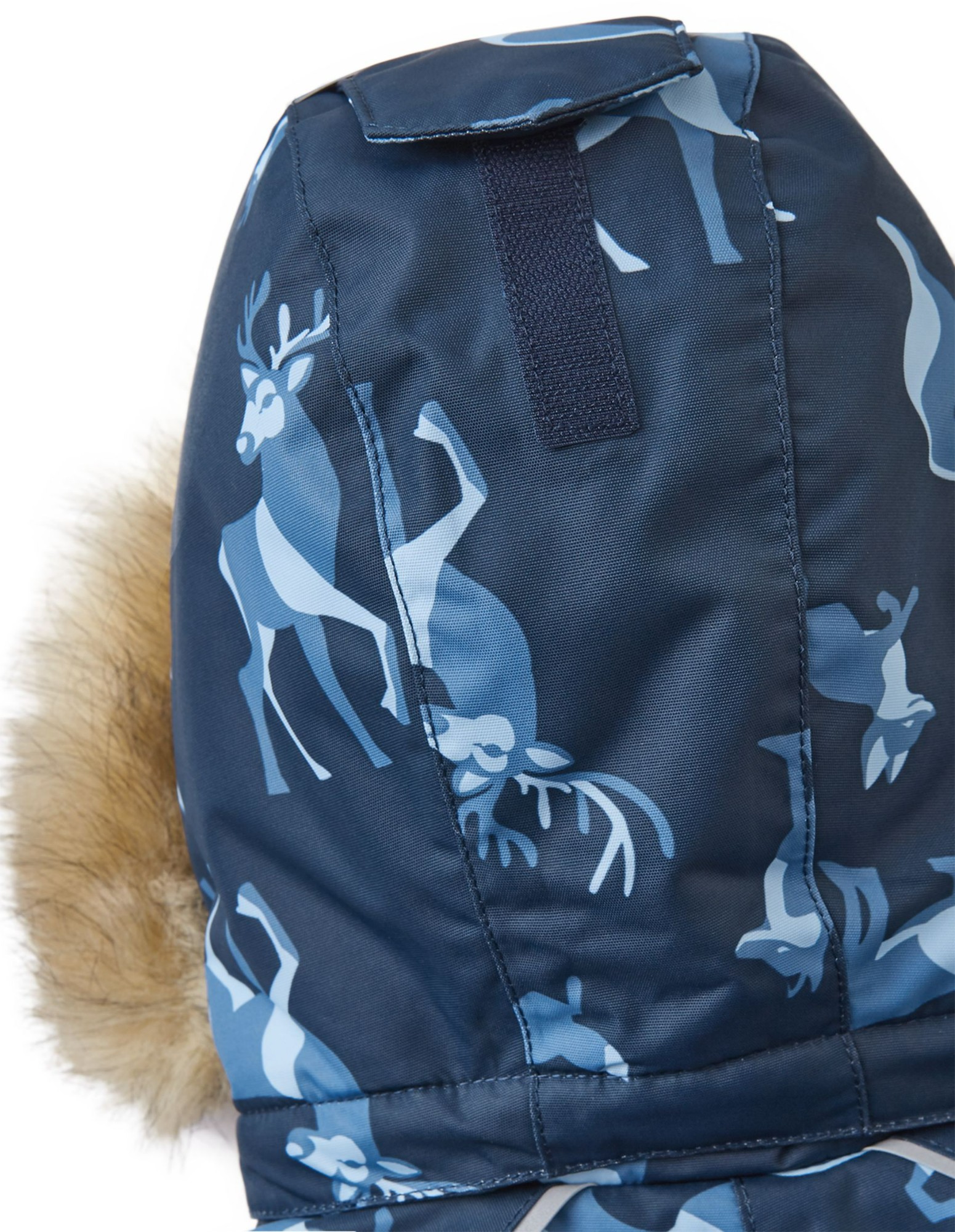 This Reimatec Lappi toddlers' winter overall is ideal for winter fun. Crafted from waterproof, bluesign® approved fabric (that's kind to the planet), BIONIC-FINISH®ECO technology makes them water and dirt repellent. The material is also breathable and windproof. All the seams have been sealed waterproof and the seat is insulated to keep bottoms warm and dry during cold-weather adventures. The smooth lining makes dressing easy. The detachable and adjustable hood with detachable faux fur trim is also safe when little ones are playing outdoors – connected with snap buttons, it comes off easily if it gets caught on something. Durable silicone foot loops keep the trousers hems in place, protecting little ankles from moisture and the cold. This tumble-dryer-friendly winter all-in-one is a great choice for crawling in the countryside or strolling in the city!