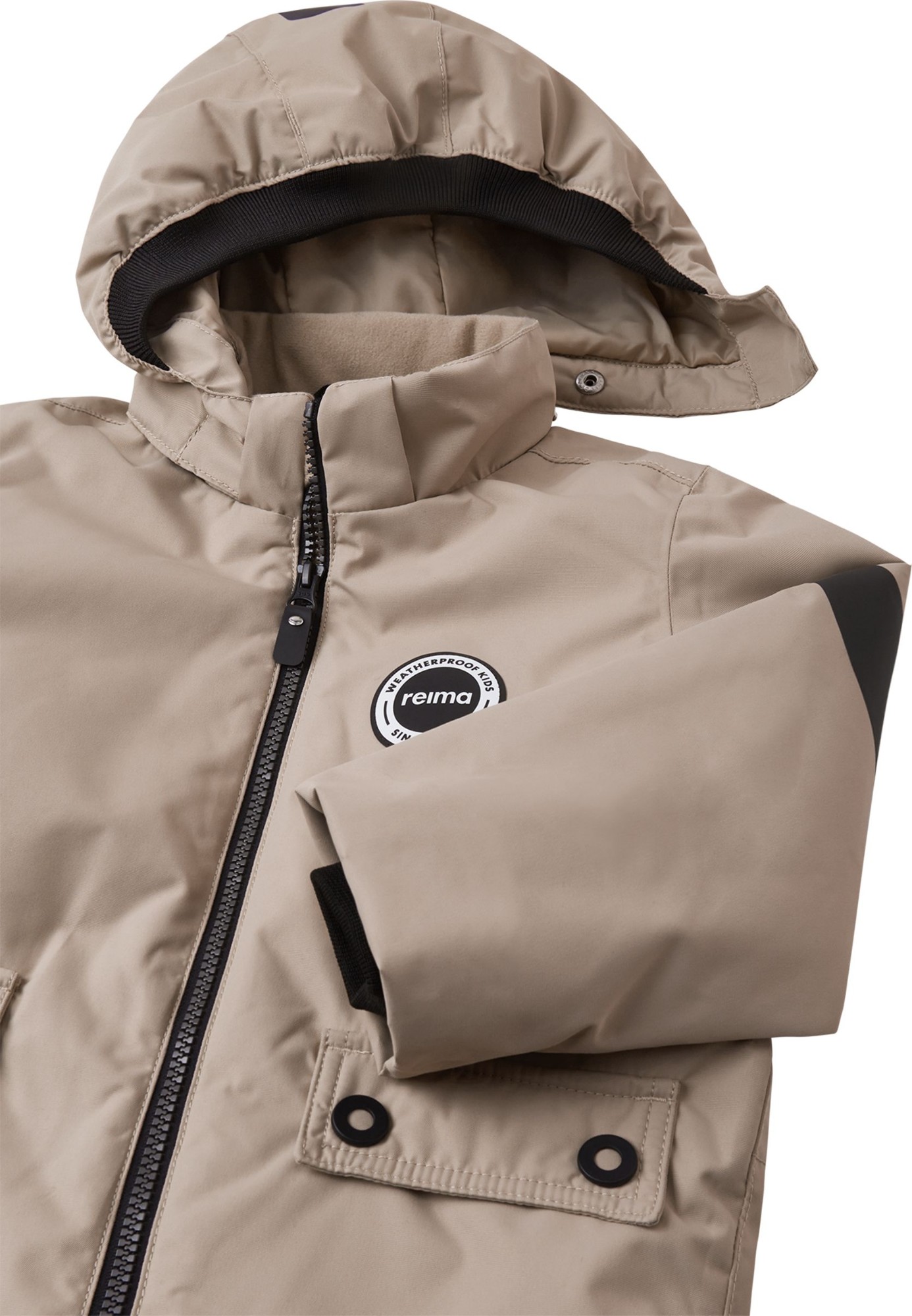 Šis mazuļu ziemas sniega tērps iedvesmu smēlies no Reima 70. gadu stila kolekcijas. Šuves ir hermetizētas, un materiāls ir netīrumus un ūdeni atgrūdošs. Gludā odere ļauj to viegli uzvilkt. Noņemamā kapuce ir droša, proti, piestiprināta ar piespraužamām pogām, tādēļ viegli atdalās, ja kaut kur aizķeras. Vidukli iekšpusē var noregulēt, un pēdu lences tur bikšu galus savās vietās. Divas atloku kabatas un lieli atstarojošie elementi piešķir īpašu retro izskatu!