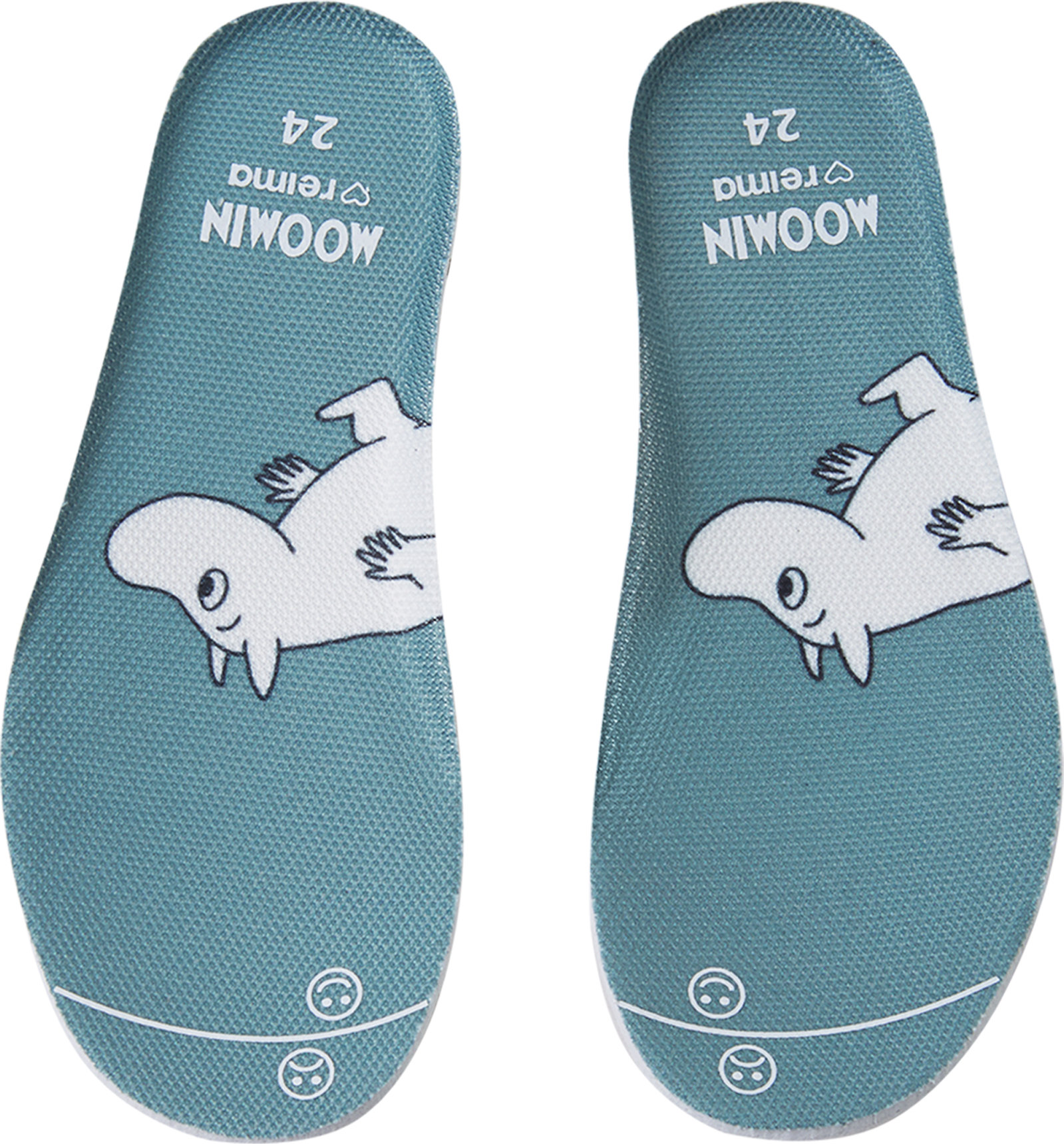 Izņemamas, formētas EVA iekšzoles ar trikotāžas oderi un Happy Fit apdruku palīdz atrast īsto izmēru;