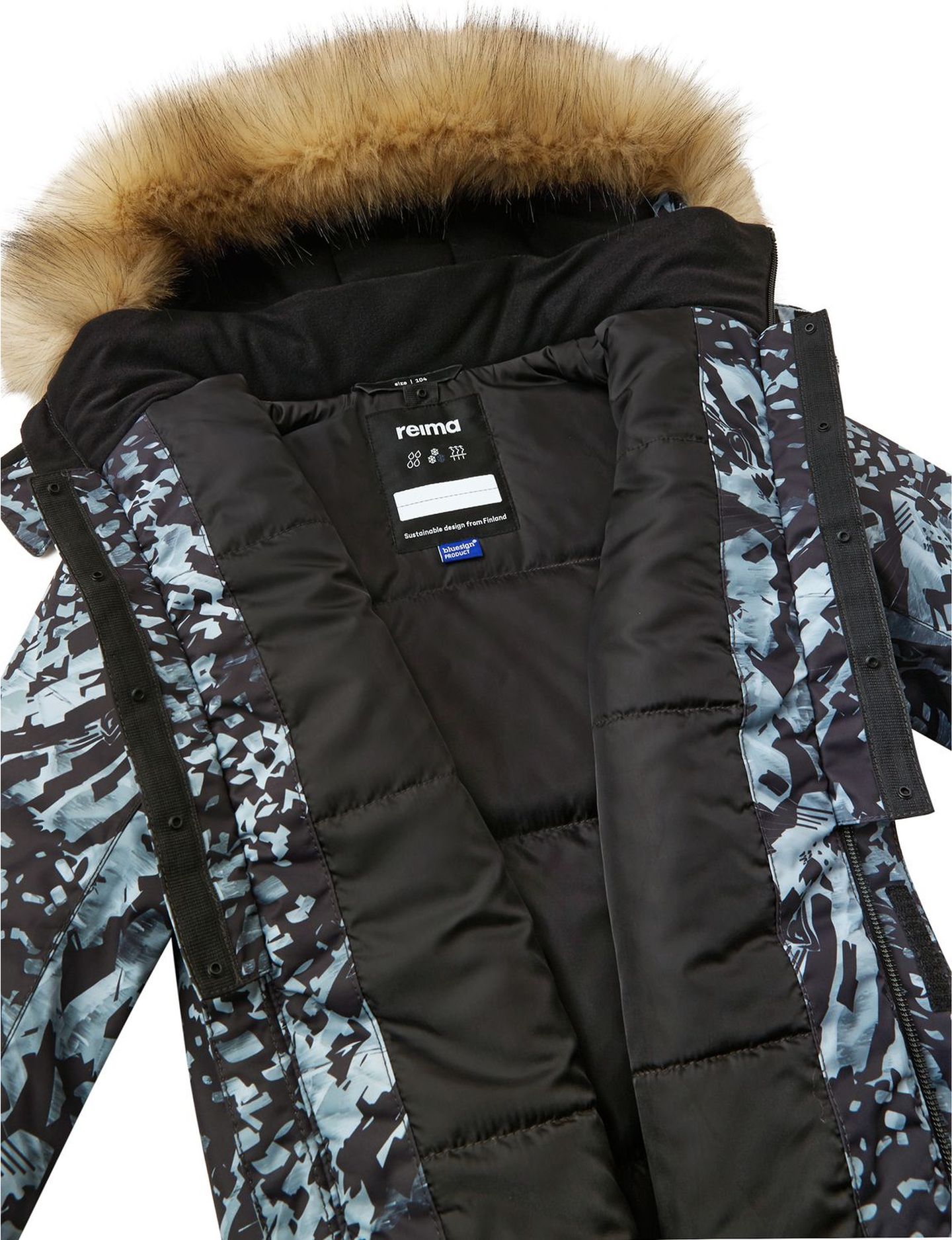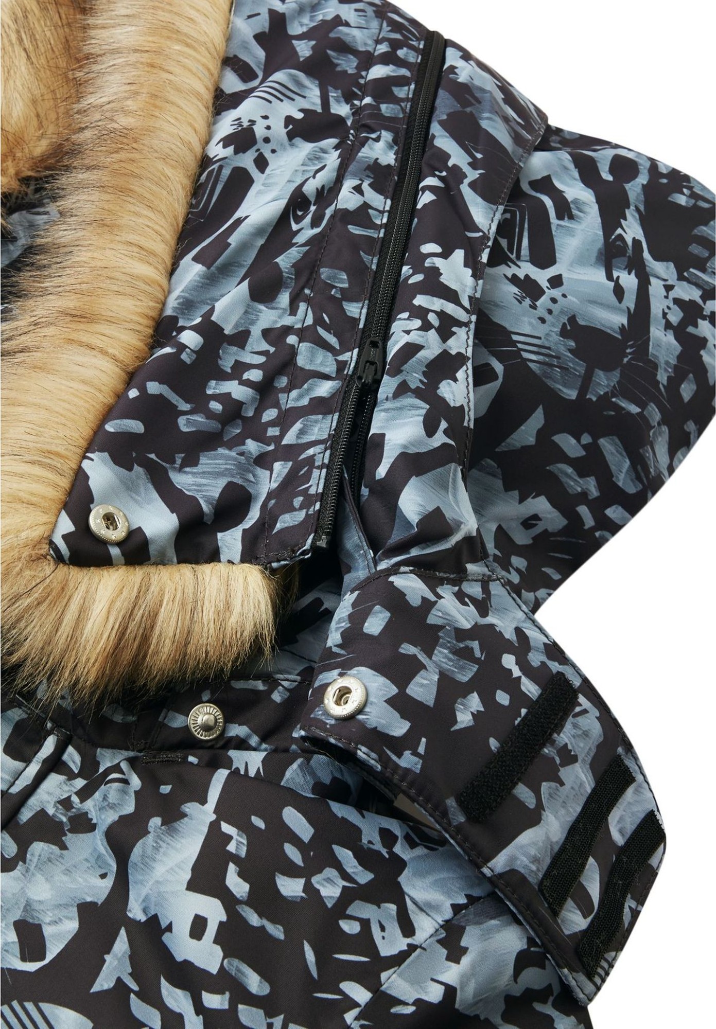 Care: wash separately inside out. Remove faux fur trim before washing. Close zippers and velcro. Do not use bleach or fabric softener. Remove immediately after washing to avoid color change. Tumble dry or use drying cabinet (max. 40 °C).
