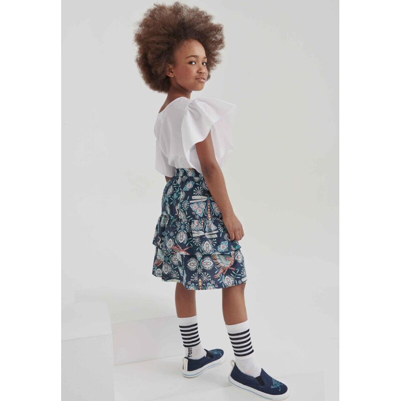 Premium kids' ruffle skirt of smooth, airy cotton.