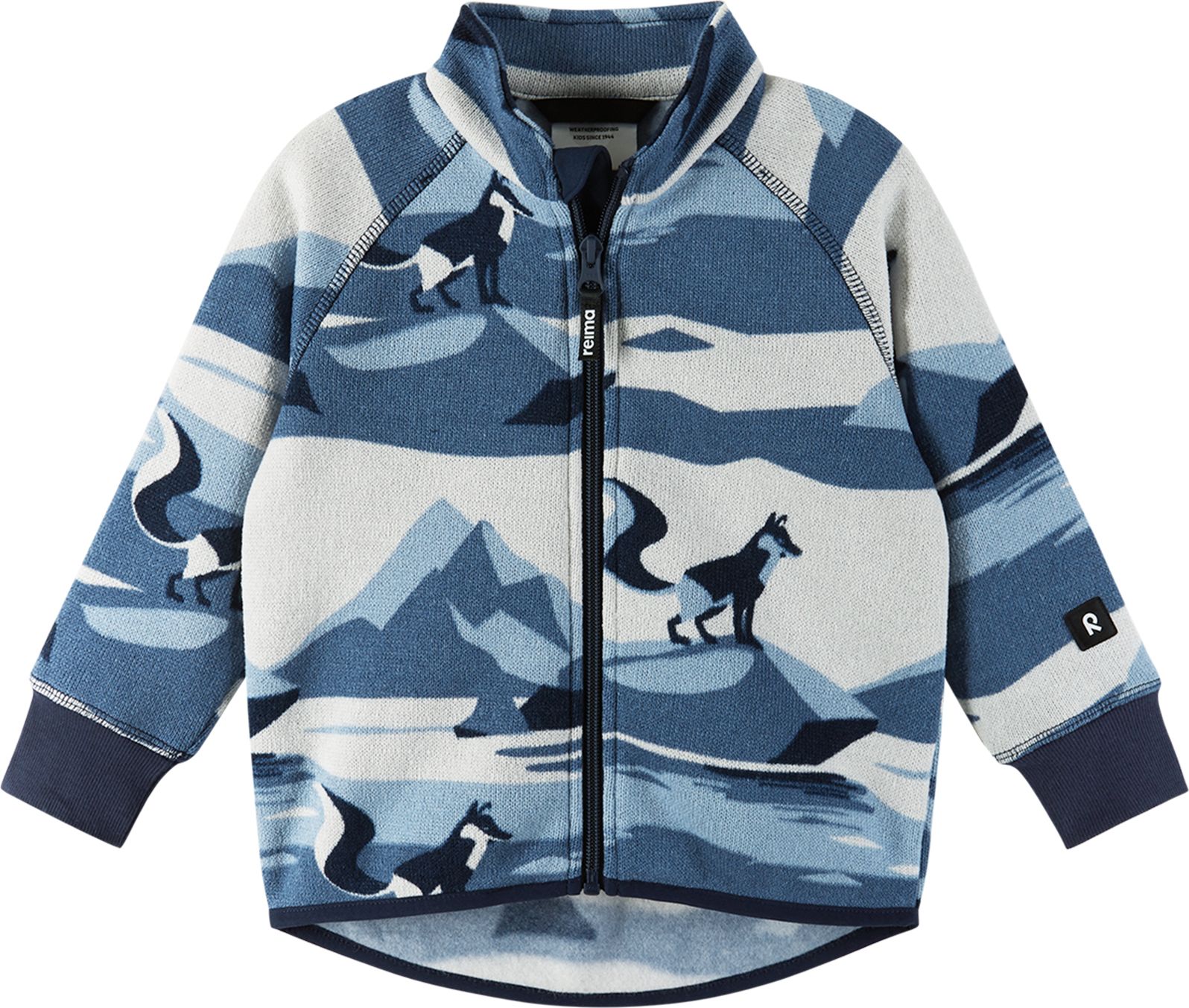 This soft mélange toddlers' fleece jacket is perfect for wearing alone in early autumn or as a mid-layer in winter. The Reima full-zip sweater looks like a knitted jumper and feels soft and comfortable against the skin yet it has all the benefits of fleece. The material dries quickly and is warm as well as breathable.
