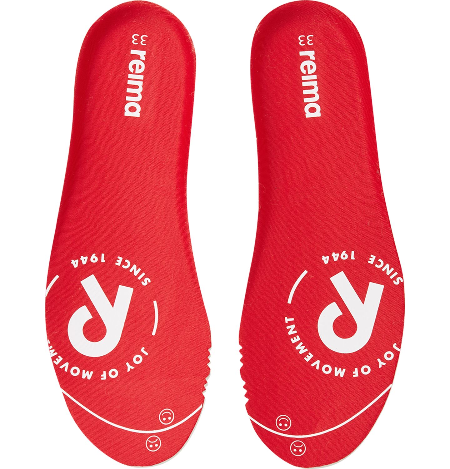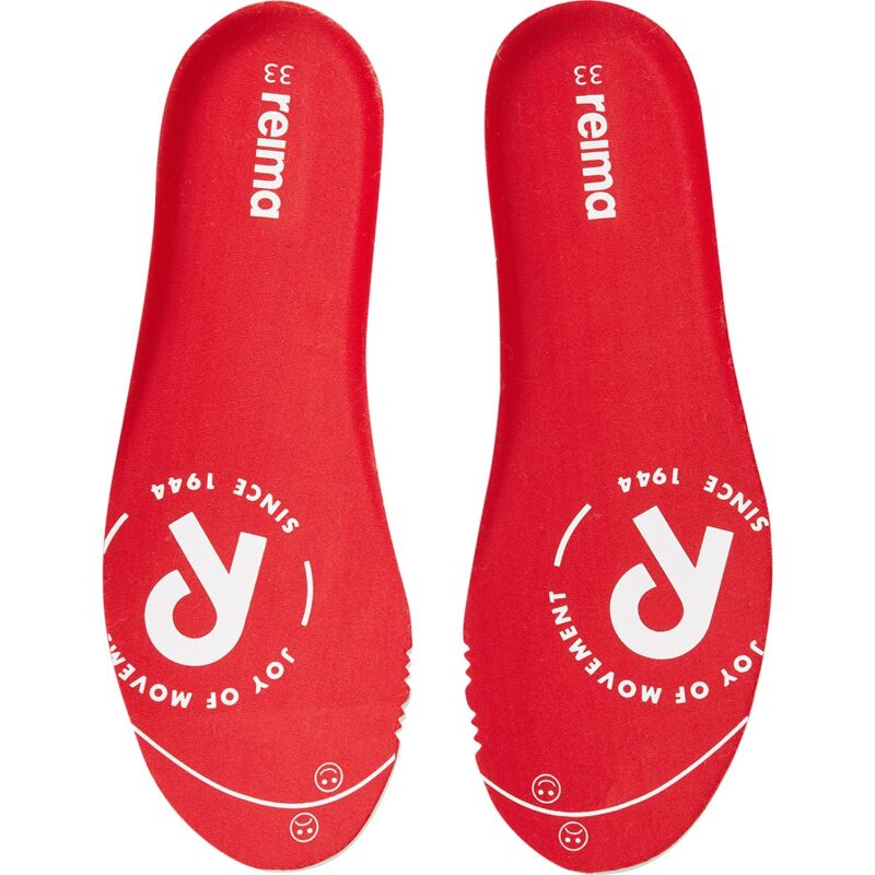 Removable, molded EVA insoles with jersey lining and Happy Fit print help to find the correct size