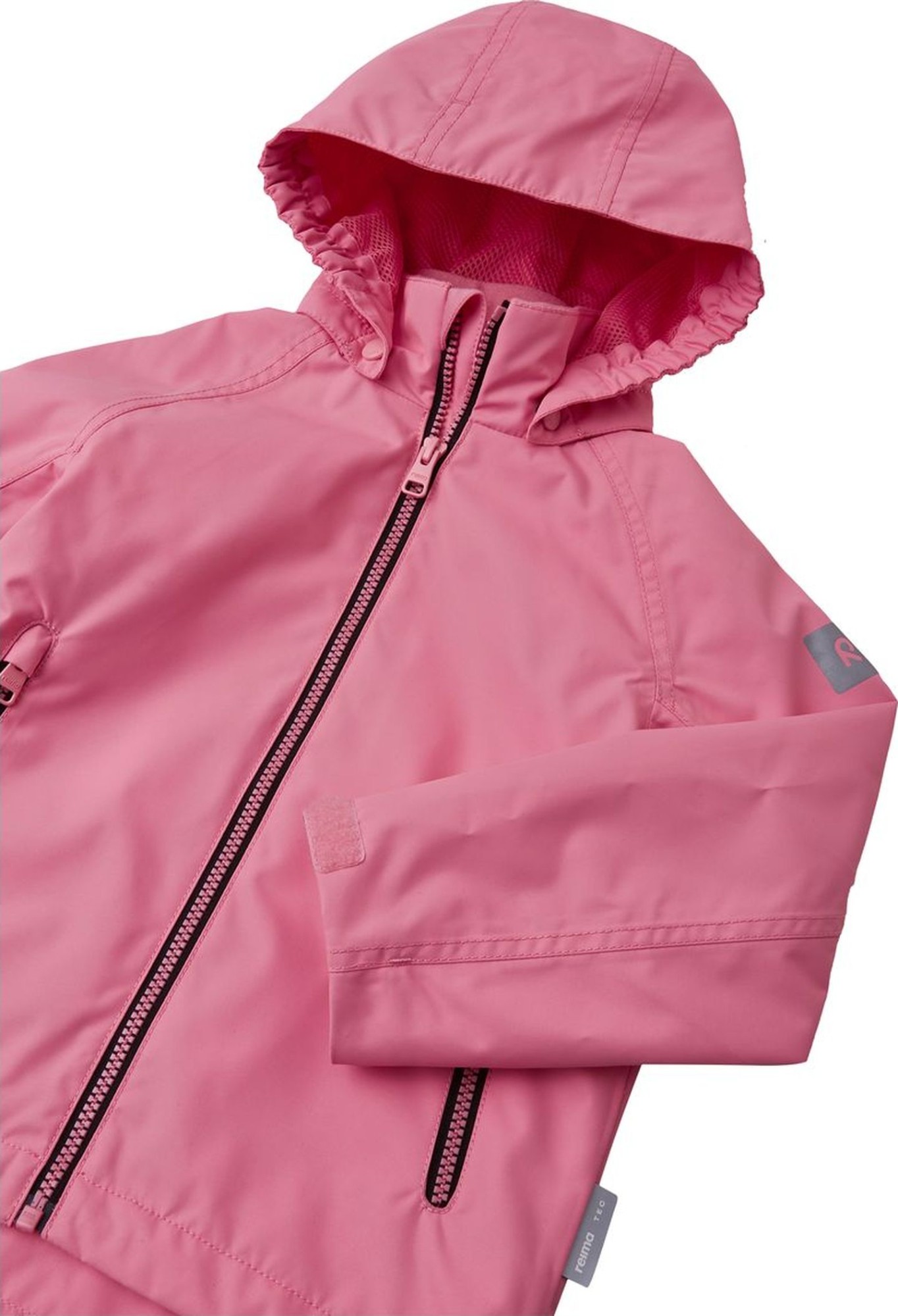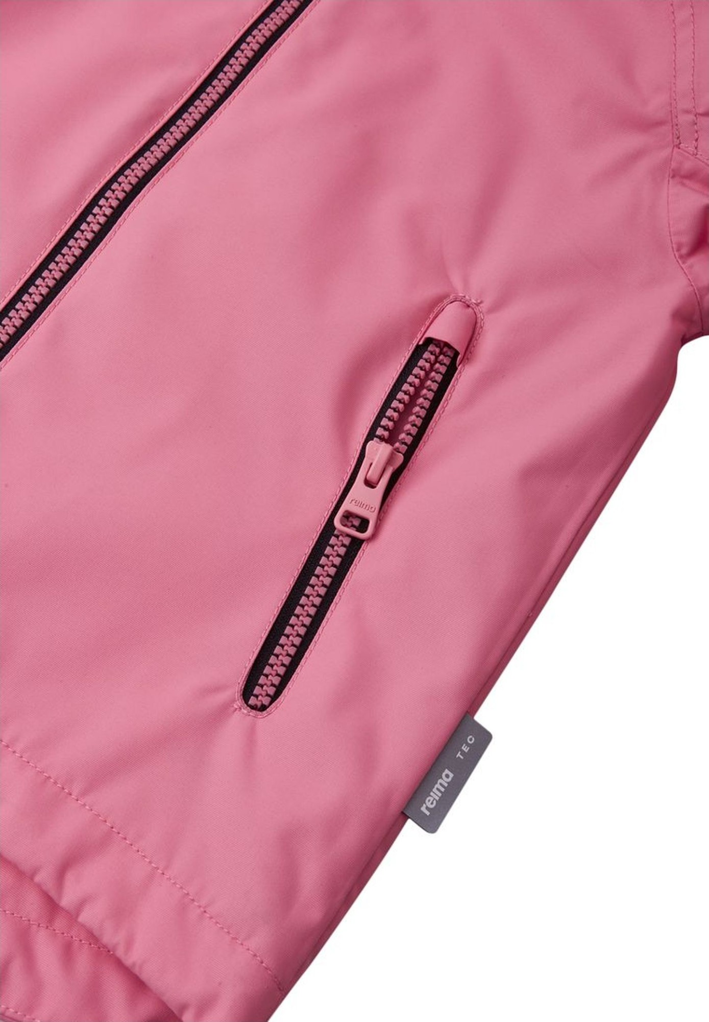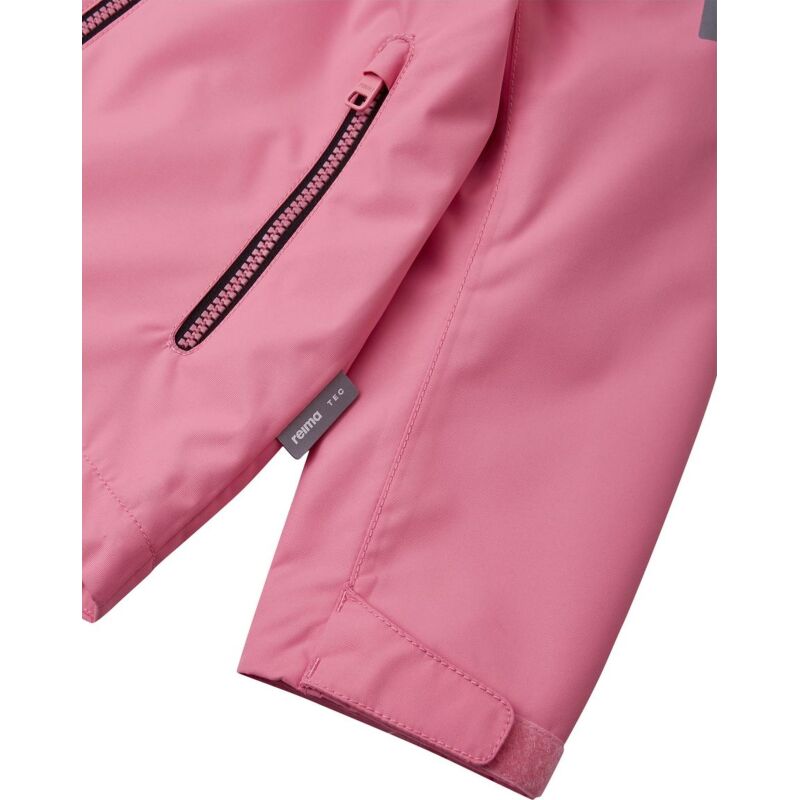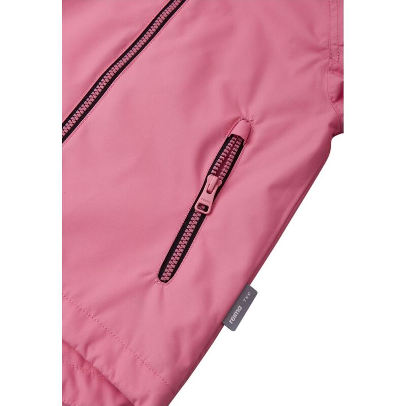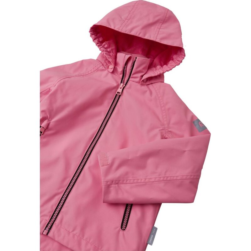 Iespēja augt: Visi „Reima” izstrādājumi ir aptuveni par vienu izmēru lielāki nekā tradicionālie ASV izmēri, tādēļ, pasūtot pašreizējo sava bērna izmēru, līdzīgi tāpat pasūtīsiet lielāka izmēra izstrādājumu. Pateicoties ūdens izturīgajam materiālam un noslēgtām šuvēm, šī „Reimatec” pavasara un rudens jaka ir ideāli piemērota lietainām dienām. Audums ir arī vēja necaurlaidīgs un gaisu caurlaidīgs. Noņemamā kapuce ir viegli noņemama, ja aiz kaut kā aizķeras, bet mājas atslēgas var glabāt drošā vietā – kabatās ar rāvējslēdzēja aizdari. Regulējamie piedurkņu gali un apakšmala nodrošina šai bērnu jakai lielisku piegulšanu.