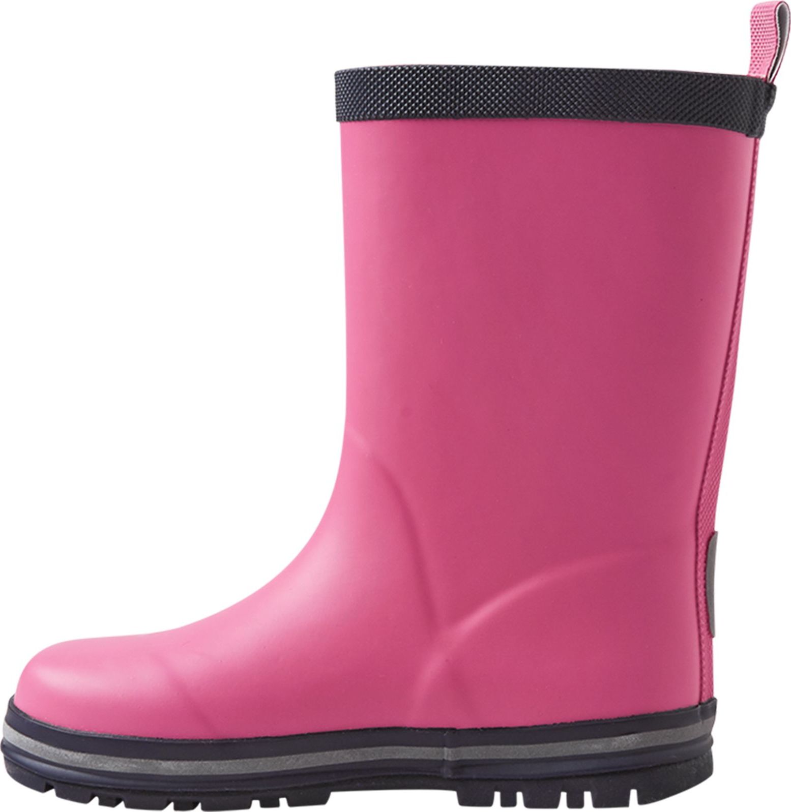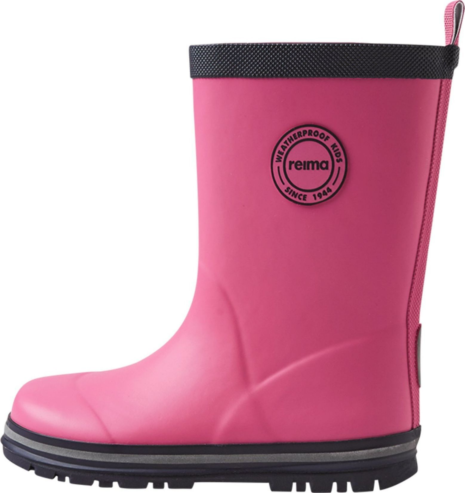 Our classic kids' wellies with reflecting piping around the sole. These Reima rubber boots are made from a material that includes 40% natural rubber, and the outsole is crafted from a vulcanized PVC-free rubber. The children's rain boots are lined with cotton for comfort and include removable insoles with the Happy Fit print to help you find the correct size.