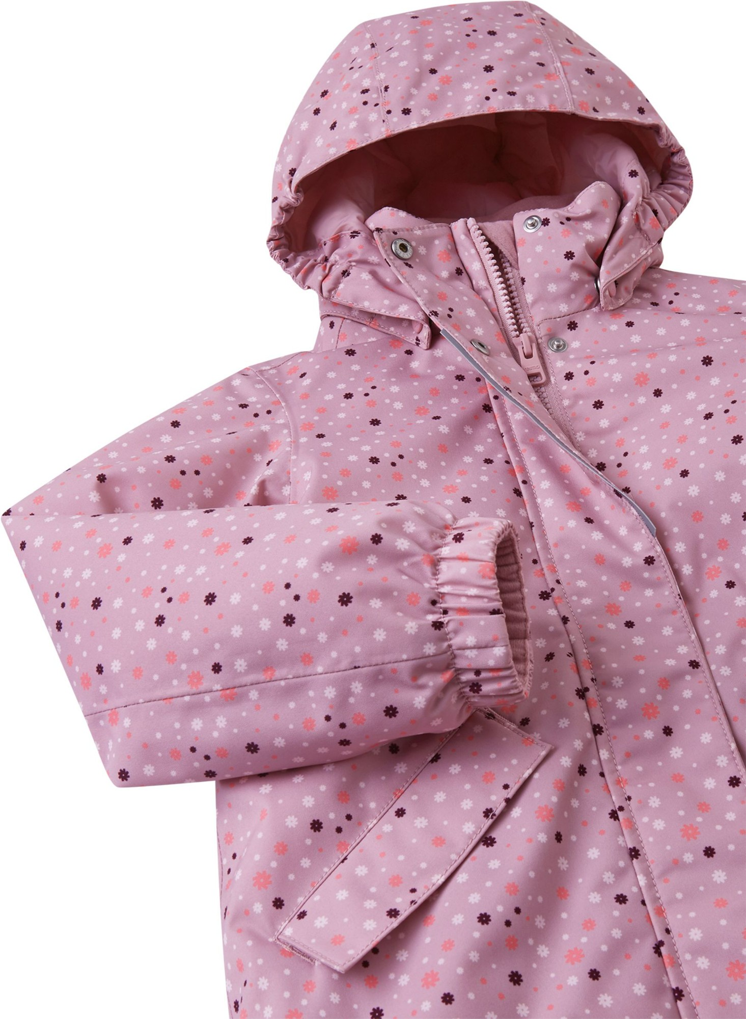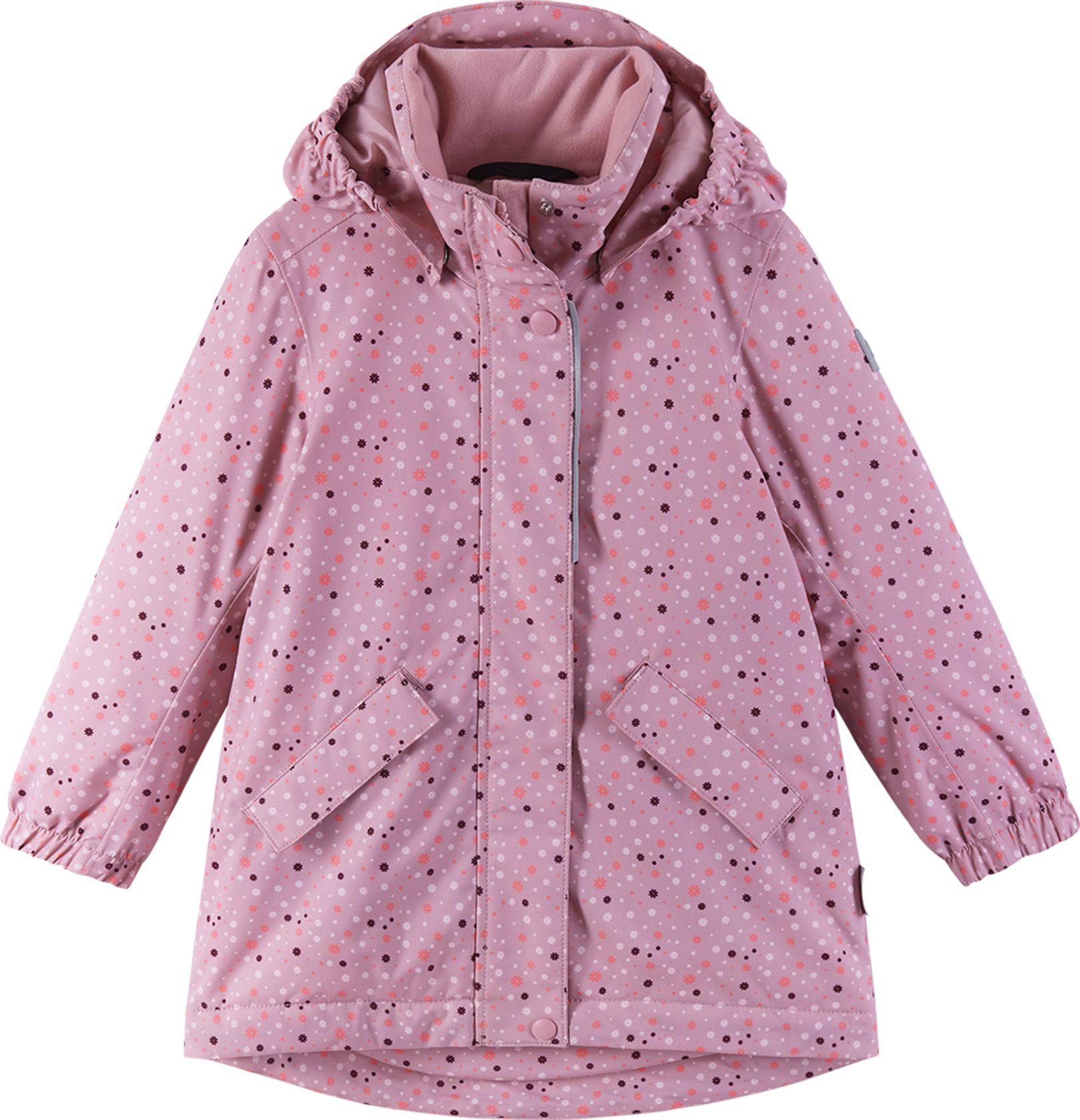 Kids' waterproof winter jacket Taipale is your child's true ally against the elements. The fully taped seams and waterproof material will keep your young adventurer dry, while warm insulation and breathable fabric ensure cozy comfort. The longer style, water and dirt repellent finish, and durable fabric make playtime carefree and fun. Practical features include a smooth lining, safe detachable hood, elastic cuffs, adjustable waist and hem, and two flap pockets for treasures. Ready for any adventure, ReimaTec Taipale jacket is the go-to choice for active kids braving the outdoors.